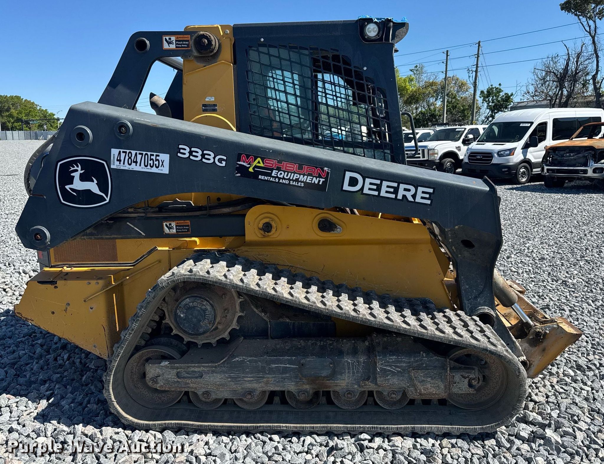 Purple Wave is selling a used Tracked Skid Steer Loader in Florida. This item is a 2020 John Deere 333G tracked skid steer loader with the following: Hours: 2,458 on meter, Serial: 385592, Unit #: 47847055