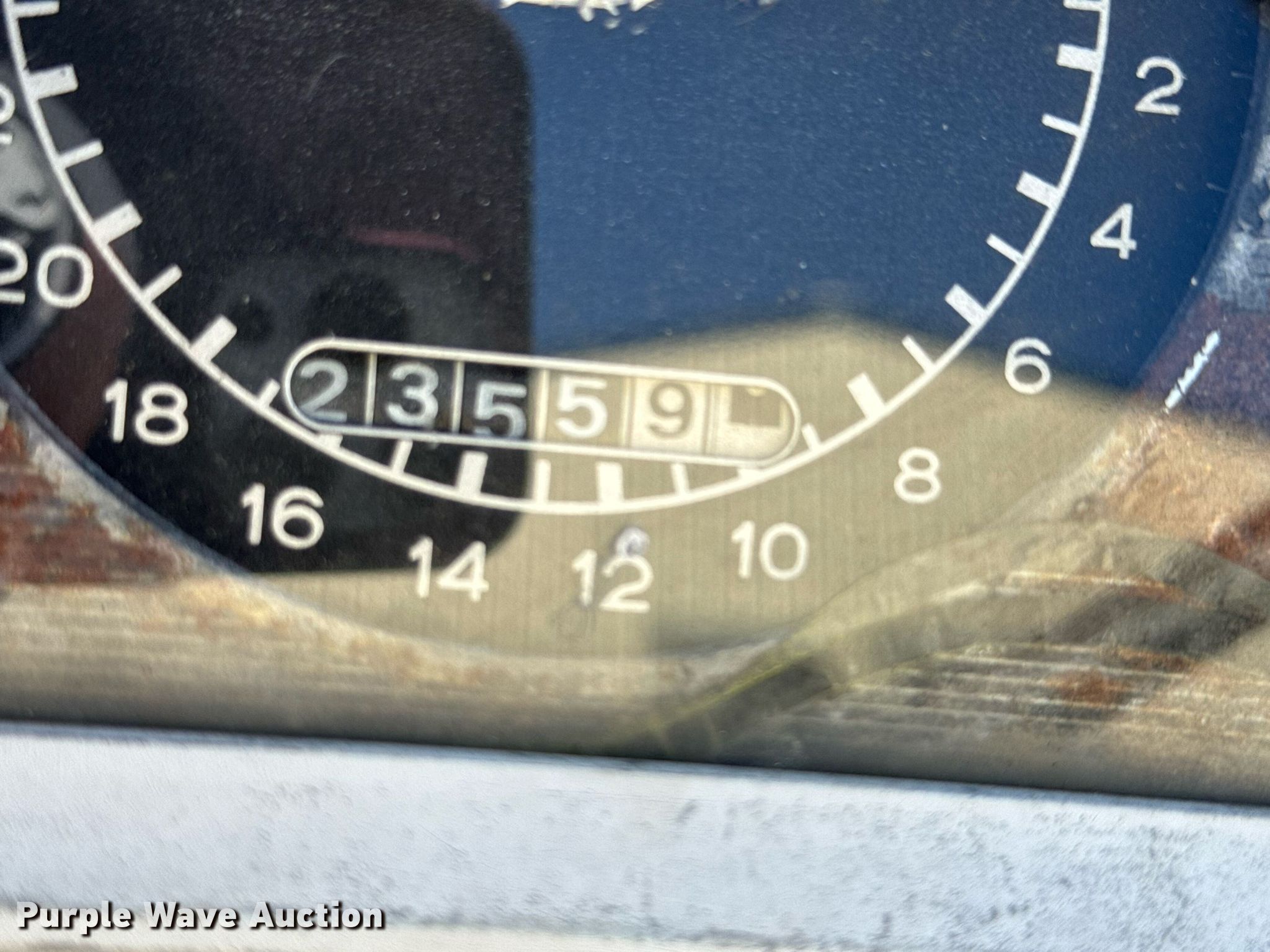 Ford B1023C tractor. Hours: 2,355 on meter, Serial: C380360. Engine Cylinders: 3, Fuel type: Gas. Transmission Manual, 8F - 2R. Features PTO: 540, Three point Top link. Tires Front: 5.50-16, Rear: 12.4-20. Notes Flat tires, Tire issues, damaged, Non-operational unit. Ketchum Public Works Authority. Ketchum, OK 74349