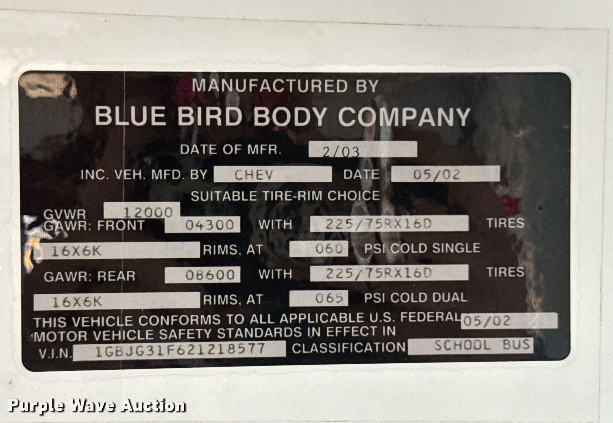 Purple Wave is selling a used Bus in Kansas. This item is a 2002 Chevrolet Express school bus with the following: Miles: 186,781 on odometer, VIN: 1GBJG31F621218577
