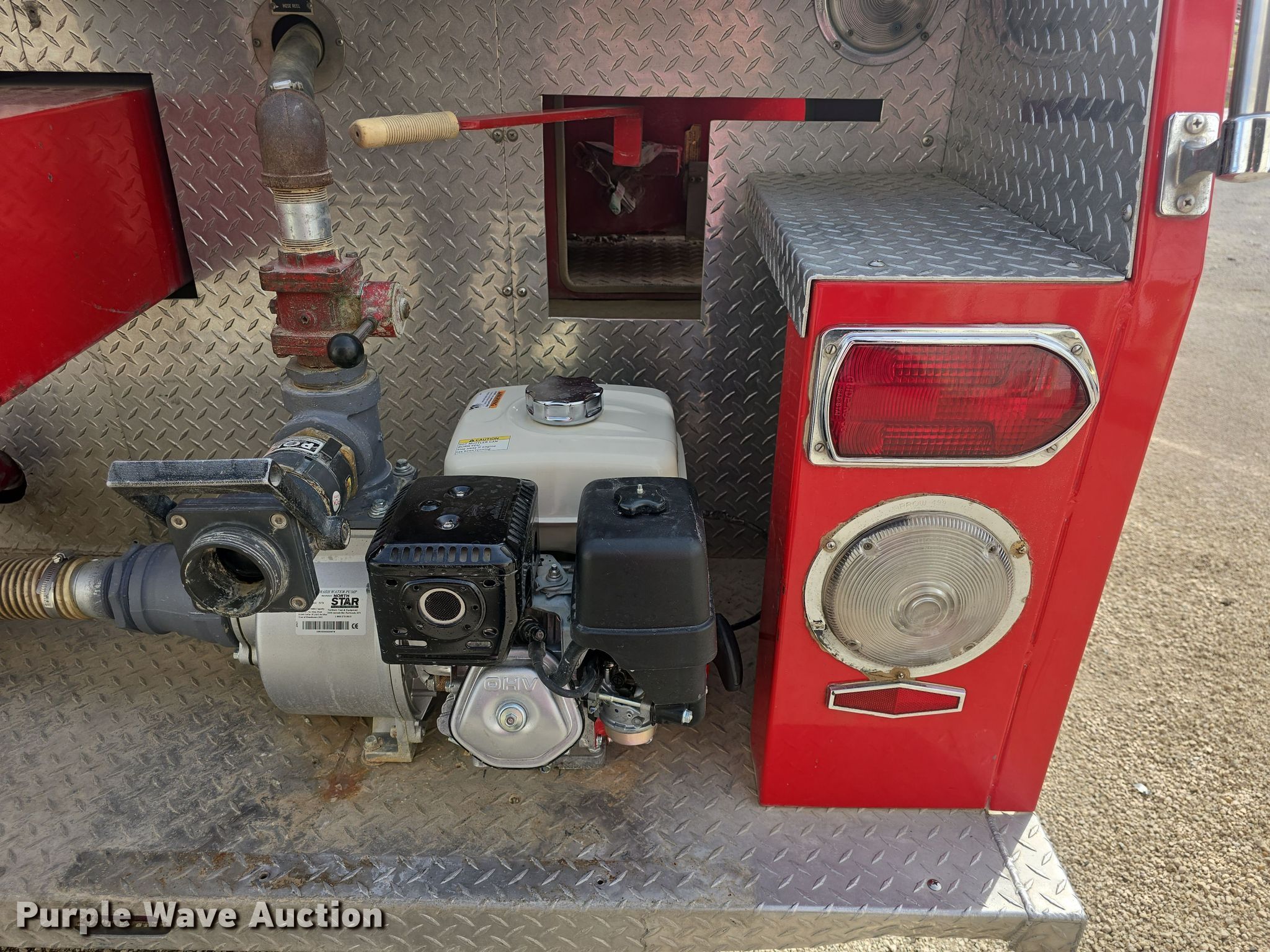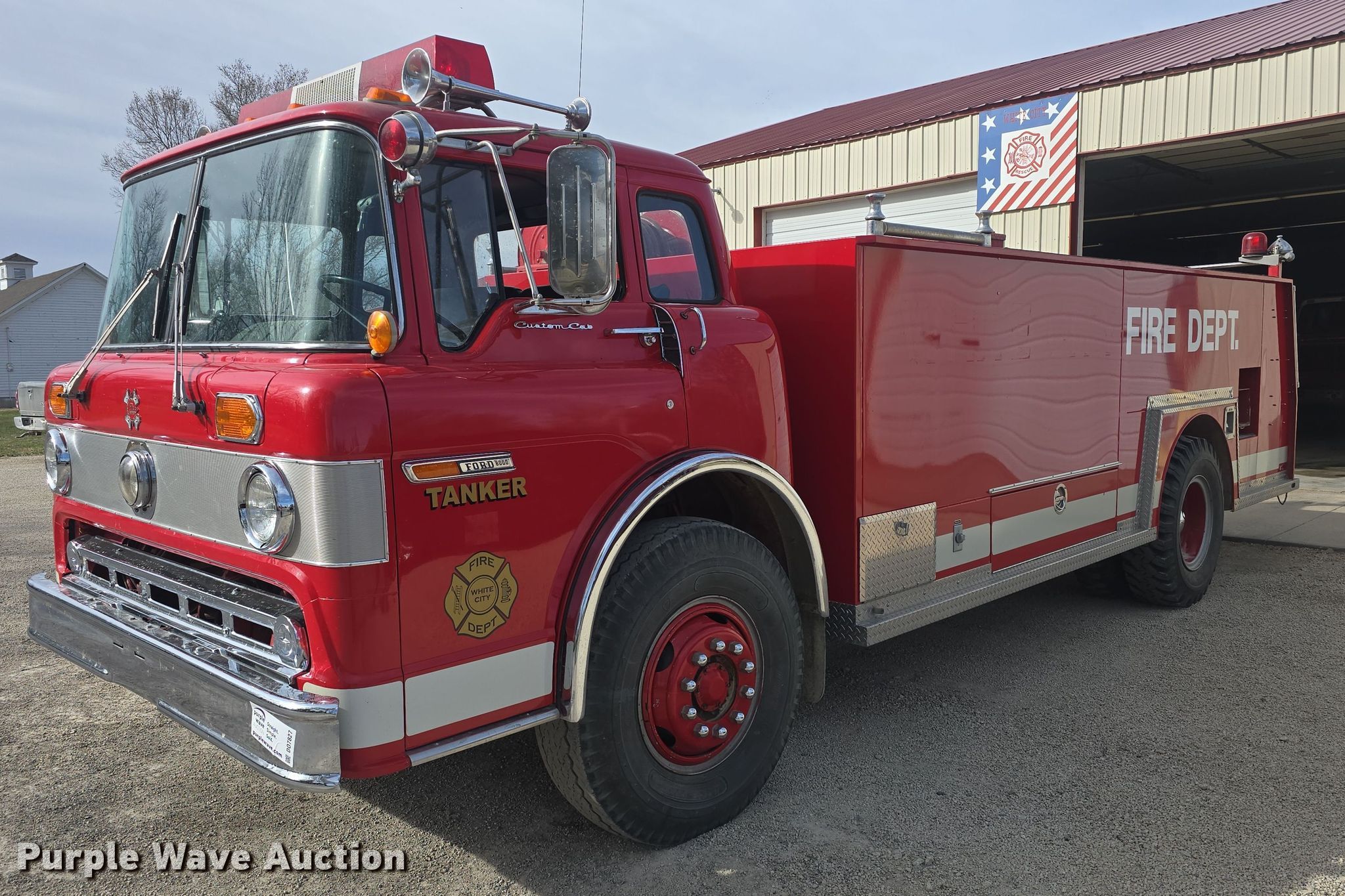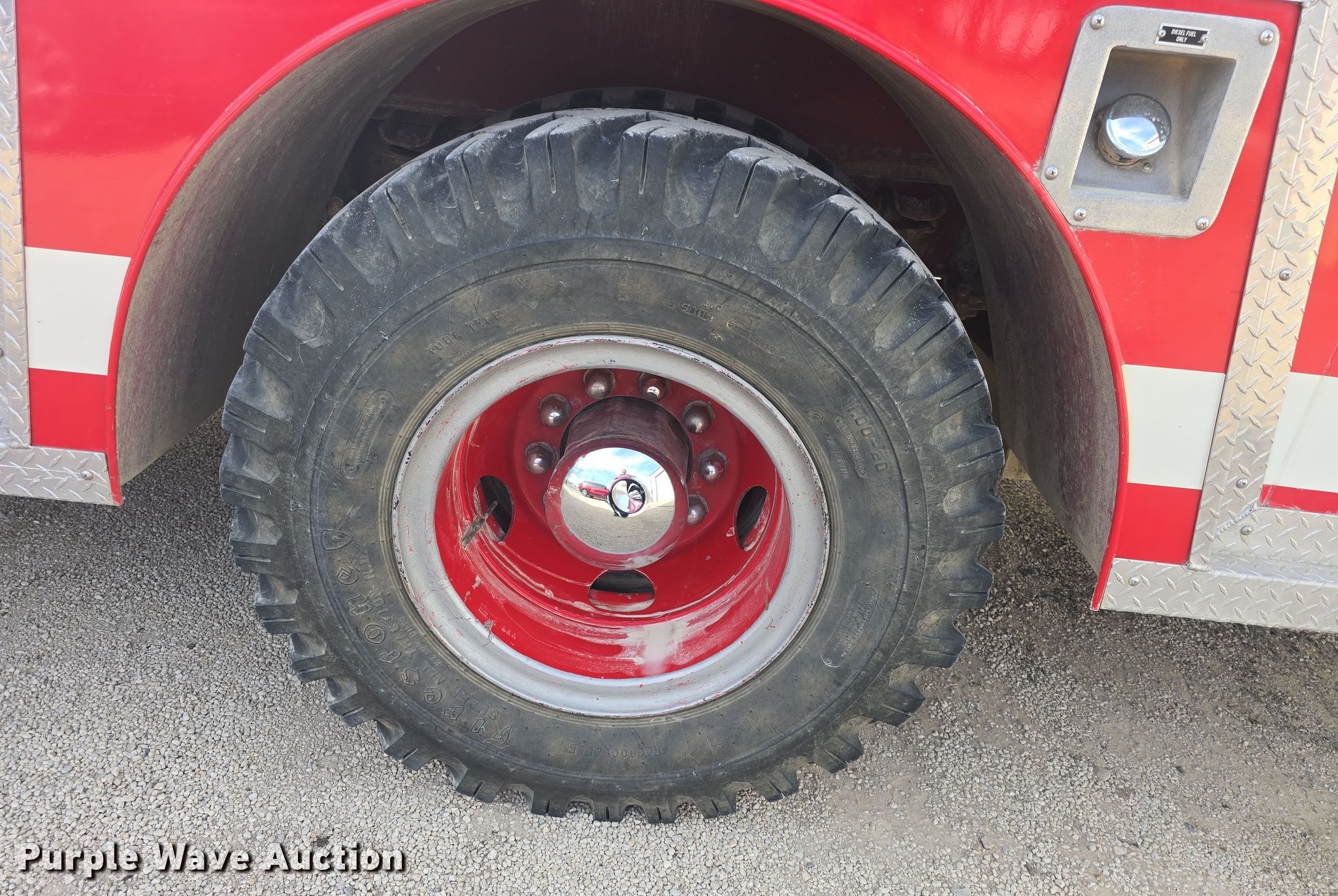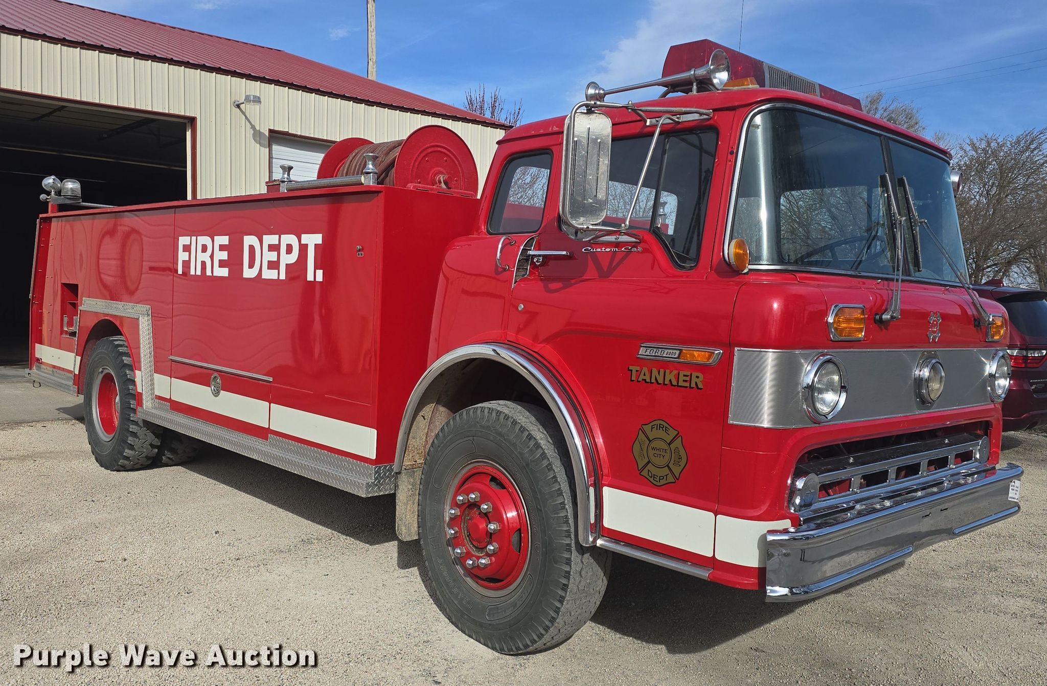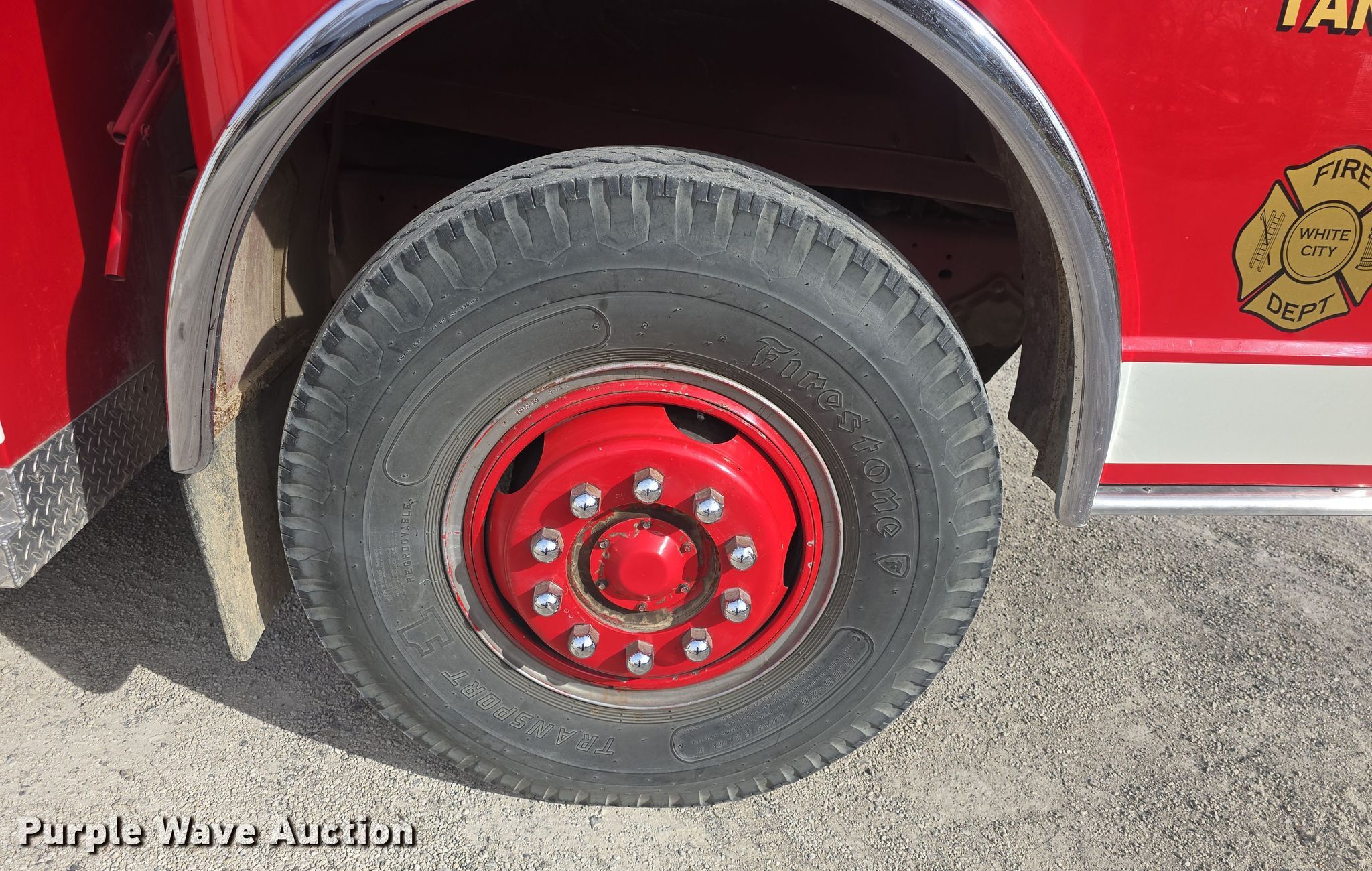 1985 Ford C8000 pumper fire truck. Miles: 14,170 on odometer, VIN: 1FDYD80U6FVA07549. Engine Displacement: 10.4L, Cylinders: 8, Fuel type: Diesel. Transmission Automatic. Chassis Axles: Single, Suspension: Spring, Brakes: Air, GVWR: 35,000 lbs, Wheelbase: 176". Interior Heat, Auxiliary controls. Features Fire truck body Tank Capacity: 1,700 gallons, Pump 385 gpm, PA/ siren controls, Hose reel Length: 100', (3) dump valves Diameter: 10", Water pump North Star, Engine Honda 270GX, Fuel type: Gas.. Tires Size: 11.00-20, Brand: Firestone. Kansas title. Title distribution may be delayed up to 14 days from verification of funds. White City Fire Department. White City, KS 66872