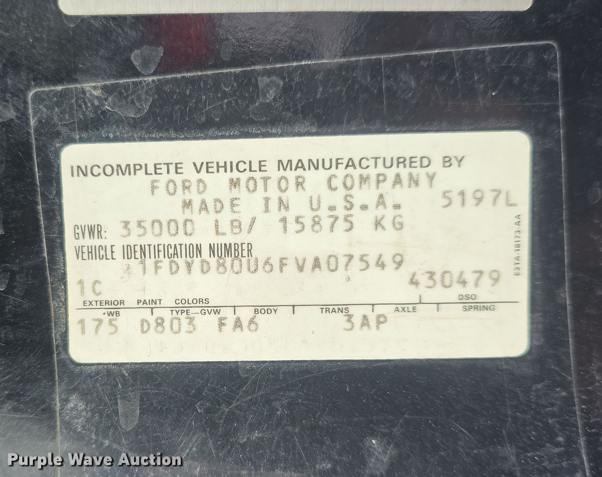 - VIN: 1FDYD80U6FVA07549