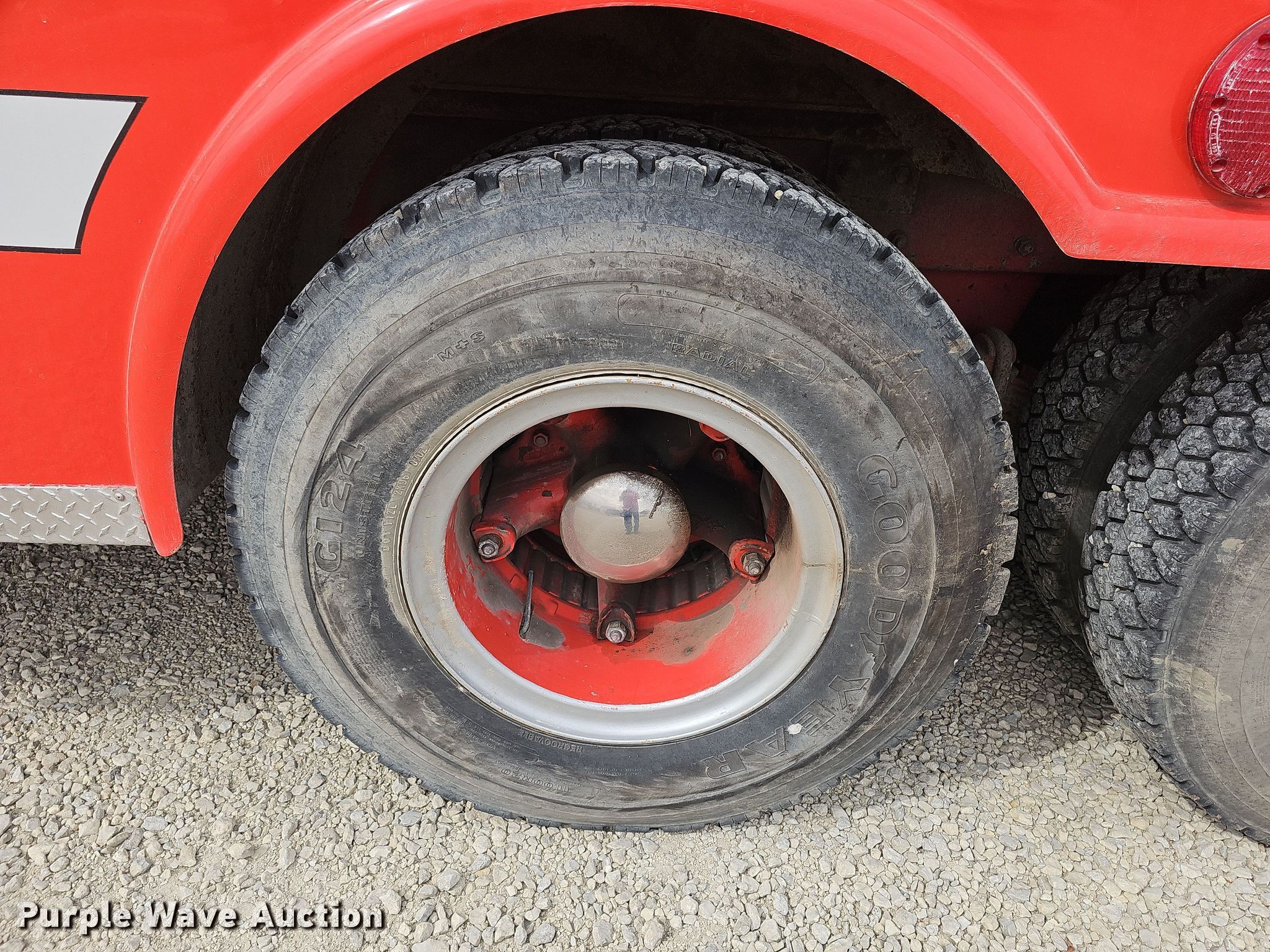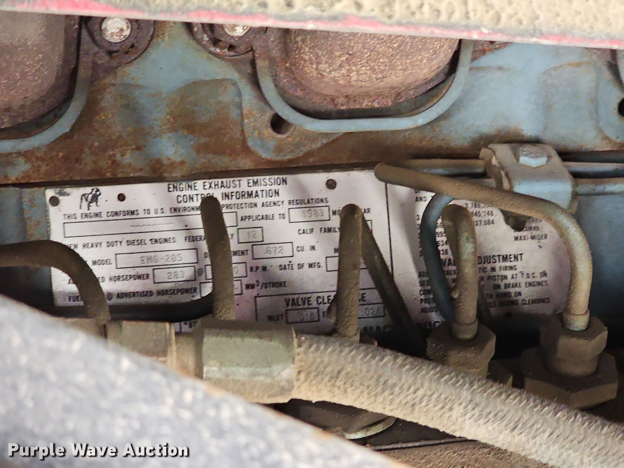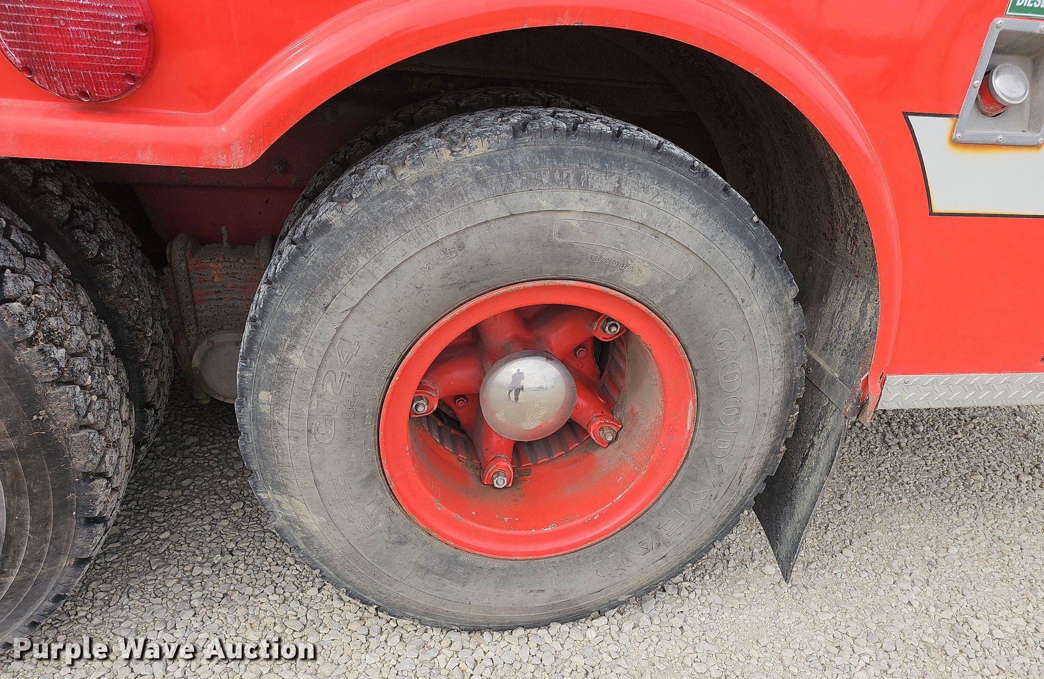 1983 Mack MC686FCS pumper fire truck. Miles: 32,755 on odometer, VIN: 1M2H145C9DM001085. Engine Mack EM6-285, Displacement: 11L, Cylinders: 6, Fuel type: Diesel, HP: 283. Transmission Automatic. Chassis Axles: Tandem, Suspension: Camelback, Brakes: Air, GVWR: 51,180 lbs, Wheelbase: 195". Interior Heat, Auxiliary controls. Features Fire truck body Tank Capacity: 2,500 gallons, Pump 1,000 gpm, (2) 10' suction hoses, 10" dump valve, Tank Capacity: 2,500 gallons, PA/ siren controls. Tires Front: 315/80R22.5, Rear: 11.00R20. Notes Transmission issues, water in gear box Unit must be towed or hauled. Kansas title. Title distribution may be delayed up to 14 days from verification of funds. Dickinson County Fire District #2. Hope, KS 67451