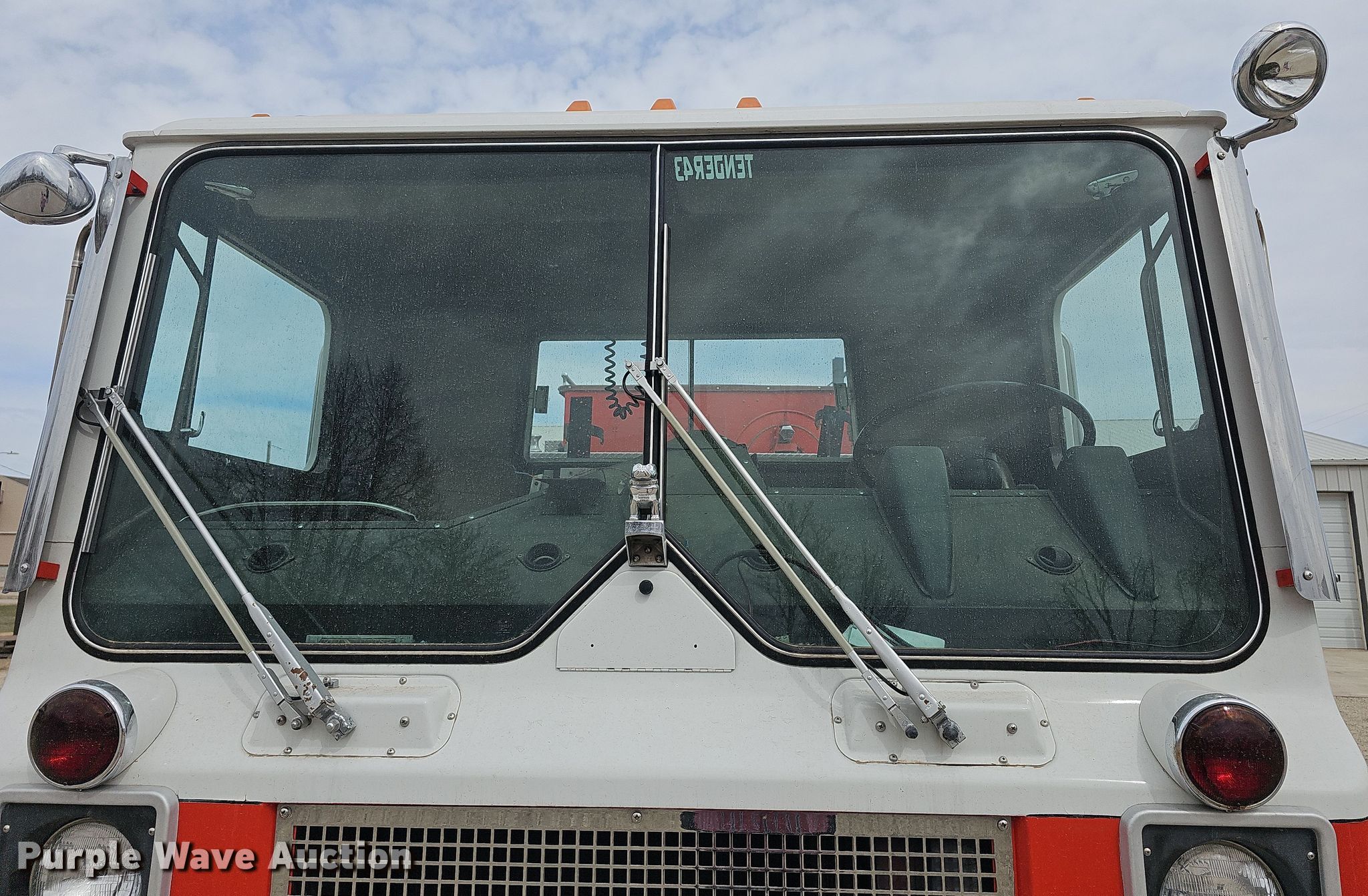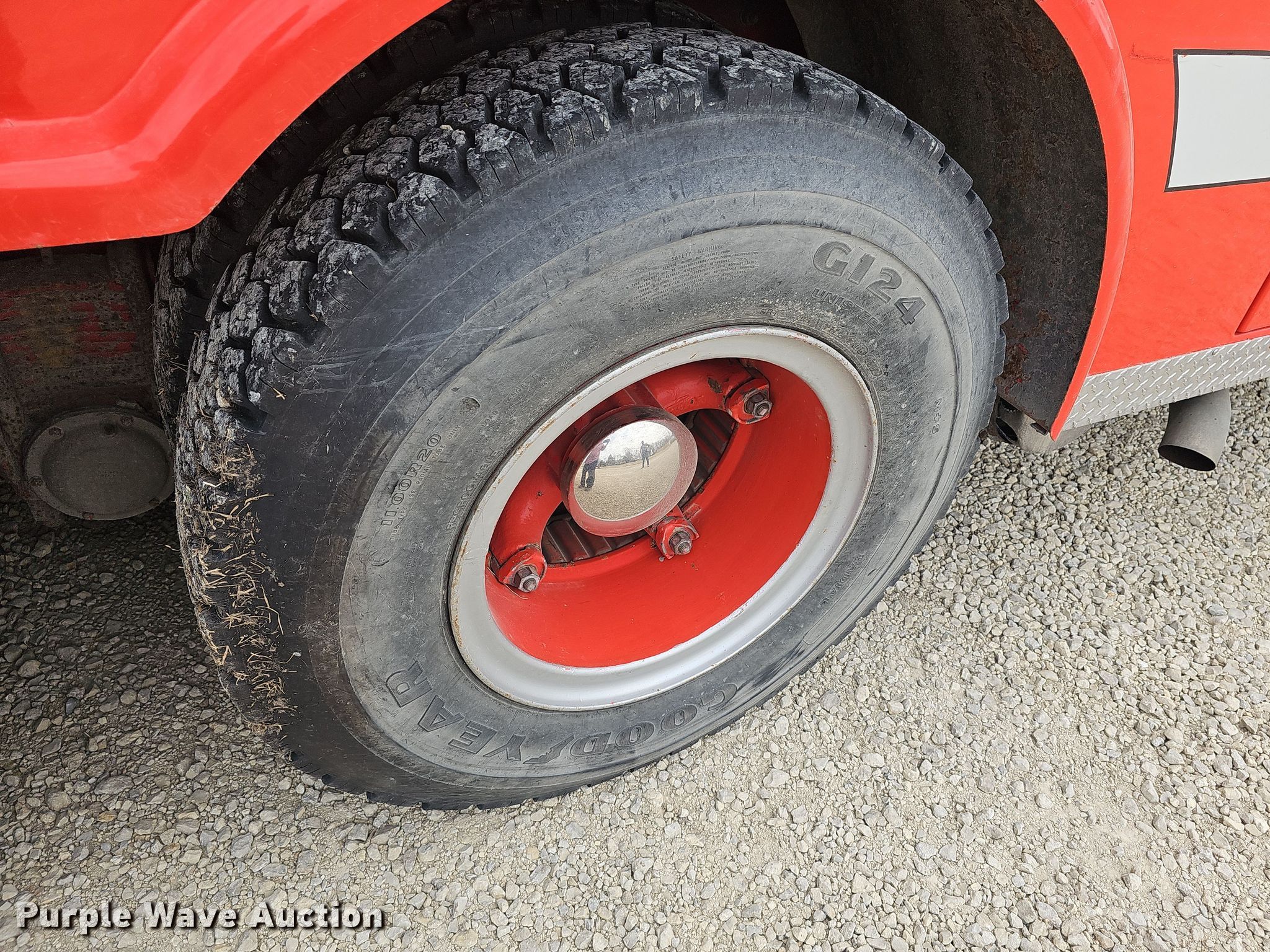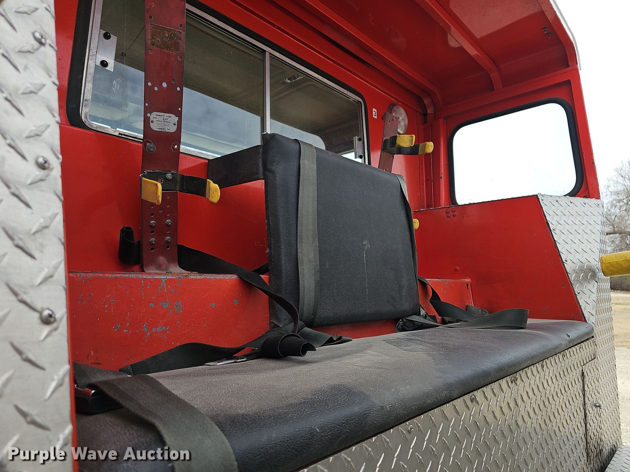 1983 Mack MC686FCS pumper fire truck. Miles: 32,755 on odometer, VIN: 1M2H145C9DM001085. Engine Mack EM6-285, Displacement: 11L, Cylinders: 6, Fuel type: Diesel, HP: 283. Transmission Automatic. Chassis Axles: Tandem, Suspension: Camelback, Brakes: Air, GVWR: 51,180 lbs, Wheelbase: 195". Interior Heat, Auxiliary controls. Features Fire truck body Tank Capacity: 2,500 gallons, Pump 1,000 gpm, (2) 10' suction hoses, 10" dump valve, Tank Capacity: 2,500 gallons, PA/ siren controls. Tires Front: 315/80R22.5, Rear: 11.00R20. Notes Transmission issues, water in gear box Unit must be towed or hauled. Kansas title. Title distribution may be delayed up to 14 days from verification of funds. Dickinson County Fire District #2. Hope, KS 67451