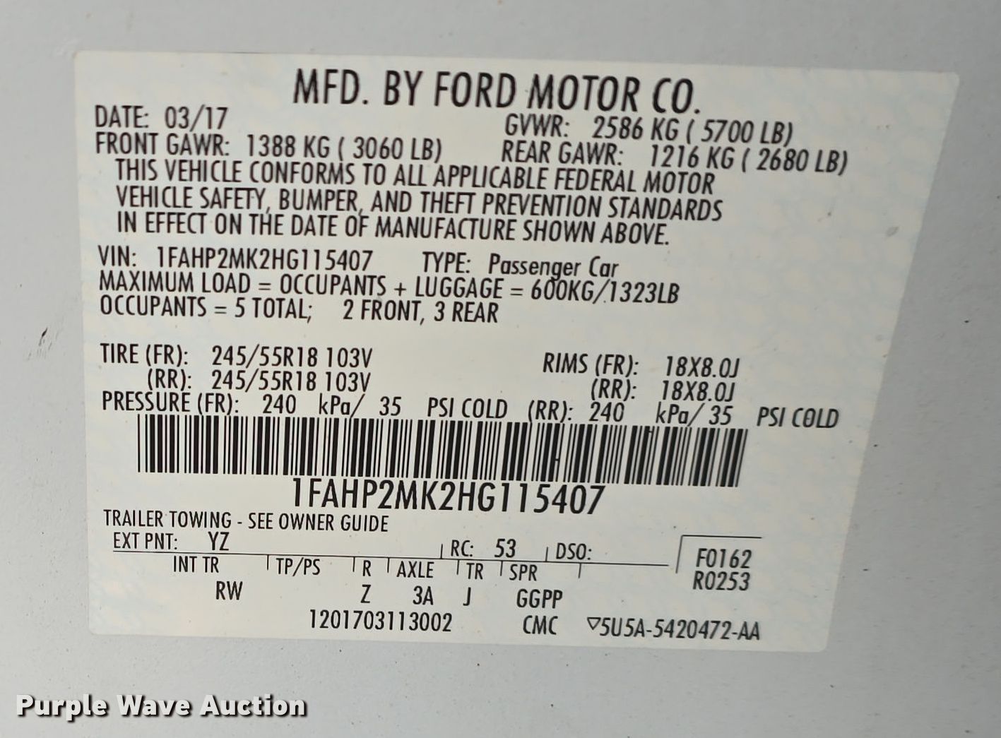 2017 Ford Taurus Police Interceptor. Miles: 145,676 on odometer, VIN: 1FAHP2MK2HG115407, Unit #: 000189-25. Engine Displacement: 3.7L V6 DOHC, Cylinders: 6, Fuel type: Gas. Transmission Automatic, All wheel drive. Interior AC, Heat, Seat: Power driver, Heated mirrors, Power windows, Power locks, Cruise control, Backup camera. Tires Size: 245/55R18. Notes Center console missing. Nebraska title. City of Lincoln - Police Garage. Lincoln, NE 68528