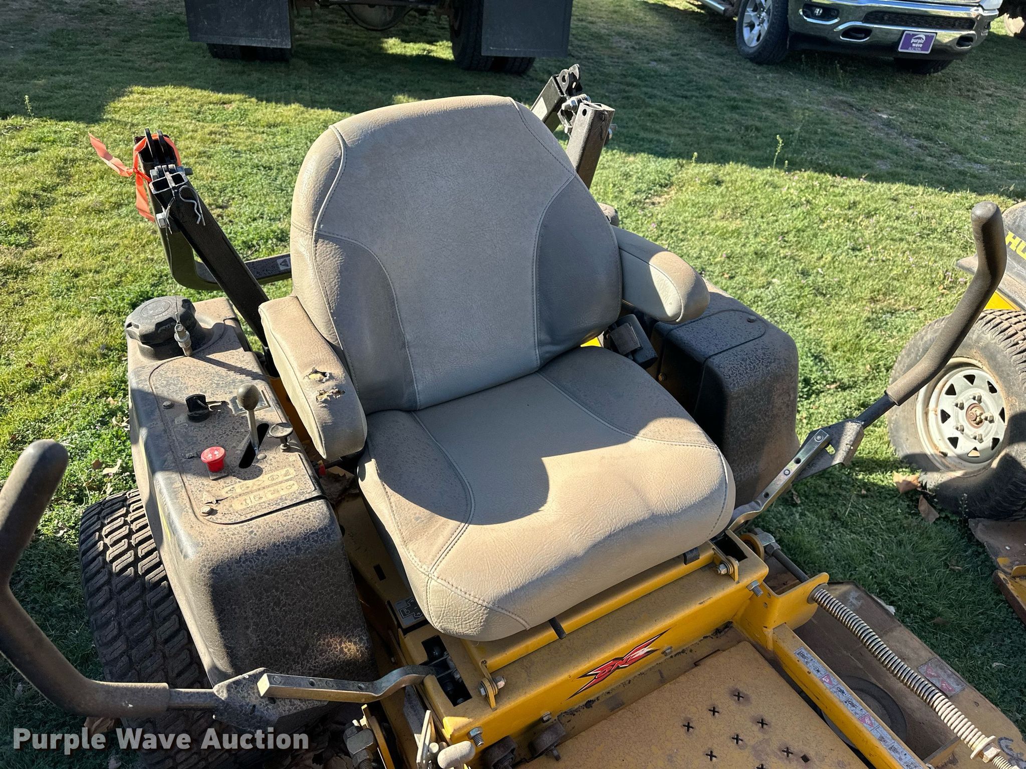 2014 Hustler 932772 ZTR lawn mower. Hours: 1,513 on meter, Cutting width: 60", Serial: 14105561. Engine Kawasaki FX730V, Cylinders: 2, Fuel type: Gas. Transmission Hydrostatic. Features Mower deck Width: 60". Tires Front: 13x6.50-6, Rear: 24x12.00-12. Notes Non-operational unit. City of Burkburnett. Burkburnett, TX 76354