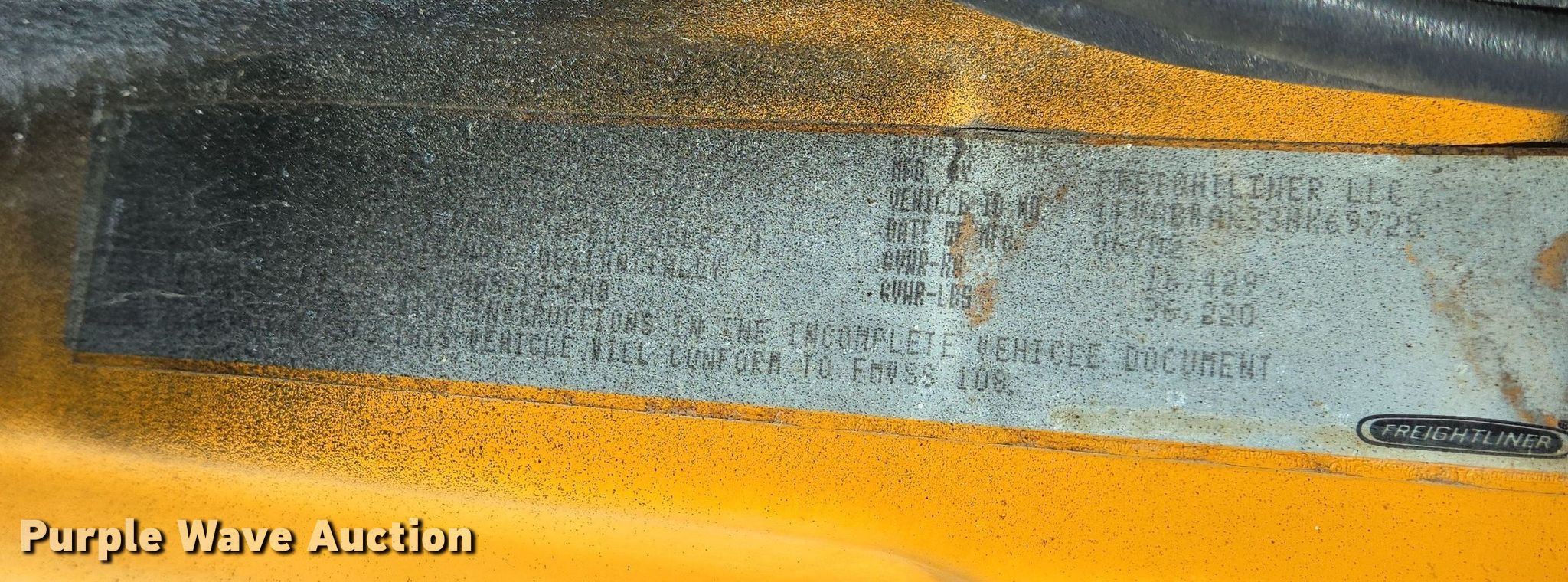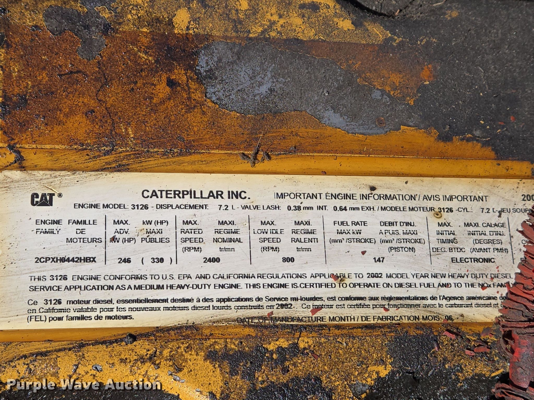 2003 International FL80 oil distributor truck. Miles: 69,920 on odometer, Hours: 8,144 on meter, VIN: 1FVABXAK33HK69725, Unit #: G8794. Engine Caterpillar 3126, Displacement: 7.2L, Cylinders: 6, Fuel type: Diesel. Transmission Automatic. Chassis Axles: Single, Suspension: Spring, Brakes: Air, PTO, GVWR: 36,220 lbs. Interior Heat, Cruise control. Features Bed / tank Etnyre GH, Capacity: 2,000 gallons, 12' 5" L x 7' 6" W, Burner: LPG, In-cab controls, Spray boom Width: 14', Folding, Nozzles: 44.. Tires Size: 11R22.5. Notes Dead battery, Engine issues, burns oil and coolant , Brake system issue, leaks air , Non-operational heater, Non-operational windshield wipers. Missouri title. Title distribution may be delayed up to 14 days from verification of funds. Missouri Dept. of Transportation - Southeast District. Sikeston, MO 63801