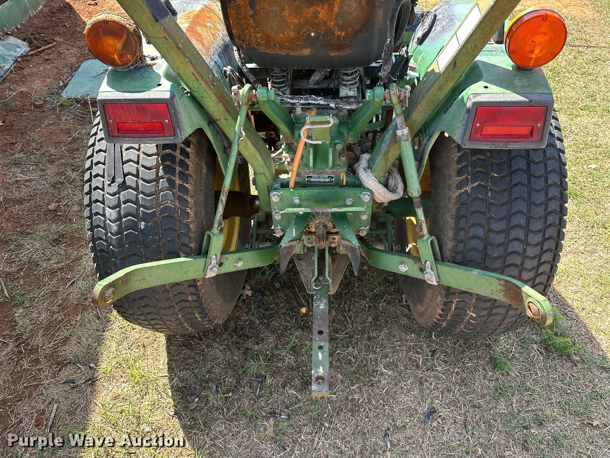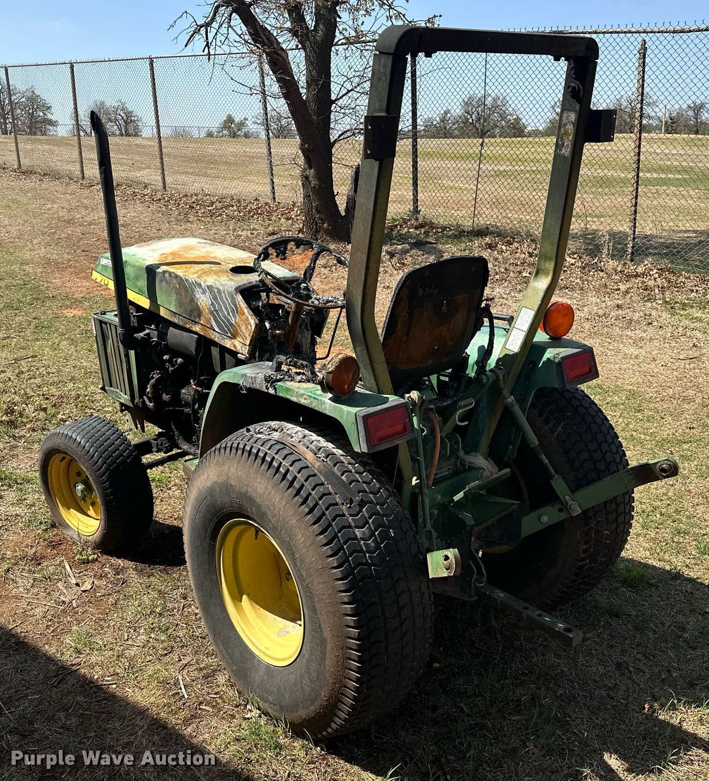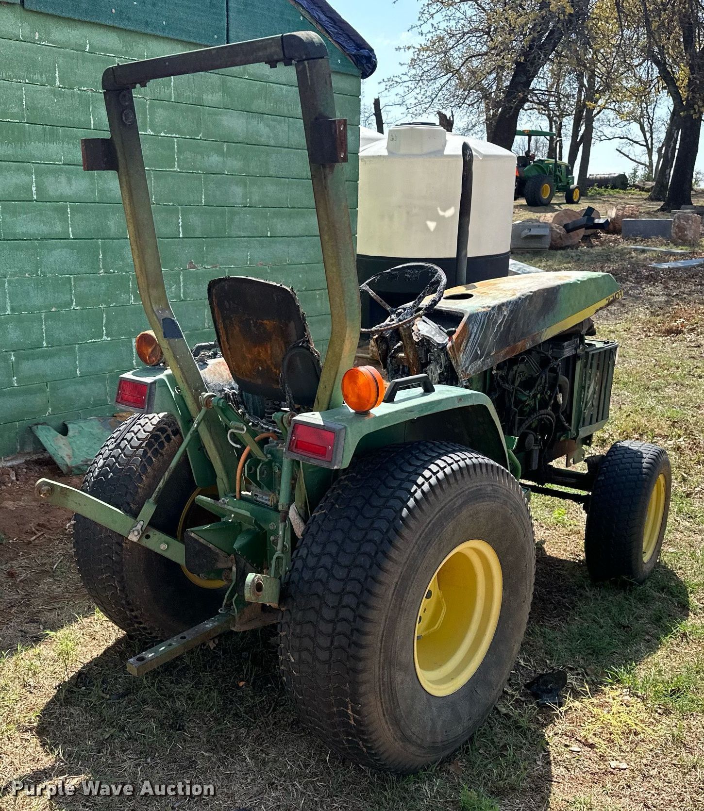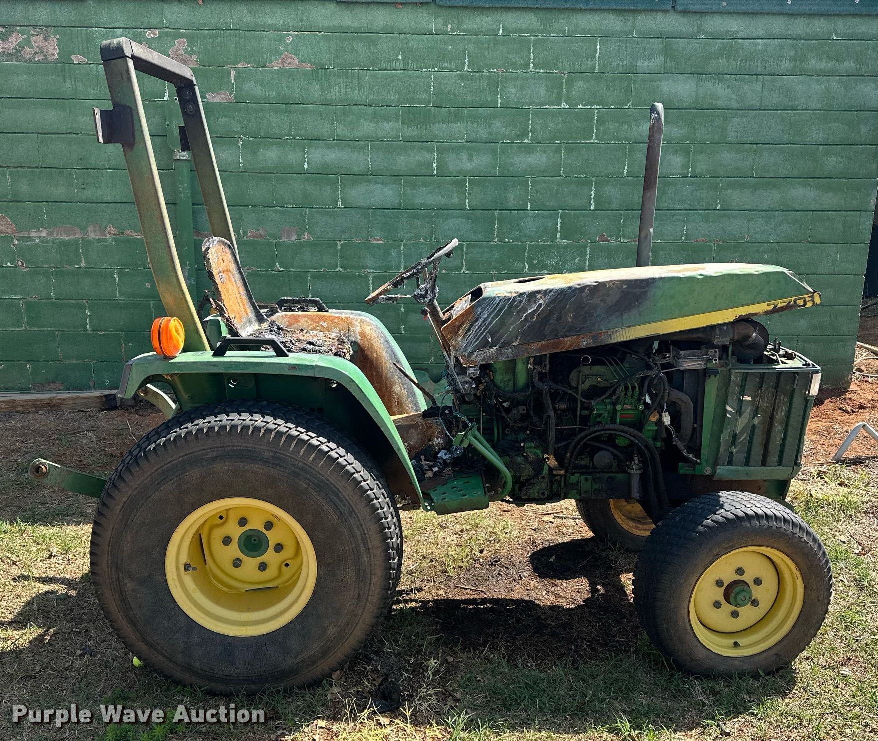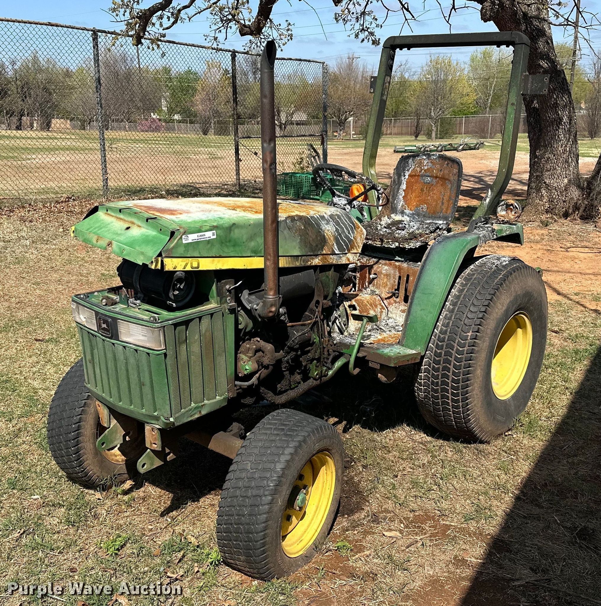 1996 John Deere 770 tractor. Hours: Unknown, Serial: M00770A151189. Engine Yanmar 3TN82-RJX, Serial: CH30450014786, Cylinders: 3, Fuel type: Diesel. Transmission Manual, 8F - 2R. Features PTO: 540, Three point. Tires Front: 25x8.50-14, Rear: 13.6-16. Notes Dead battery, Fire damage, Flat tire, Non-operational unit. City of Edmond. 1600 East Danforth Road. Edmond, OK 73034