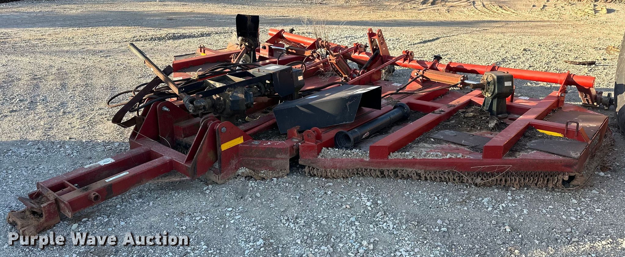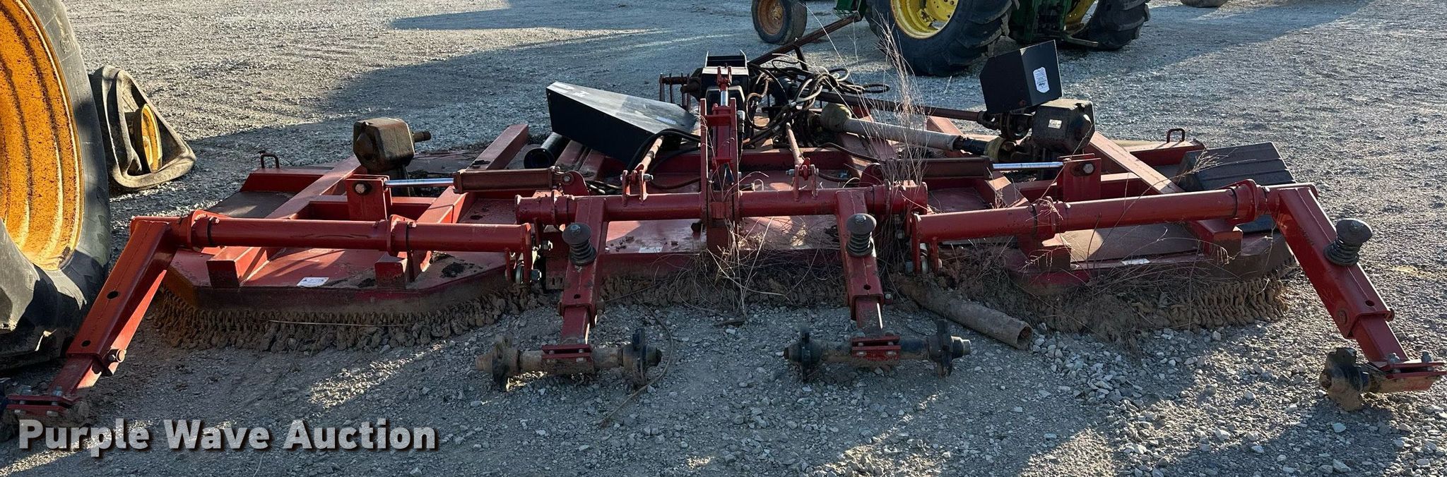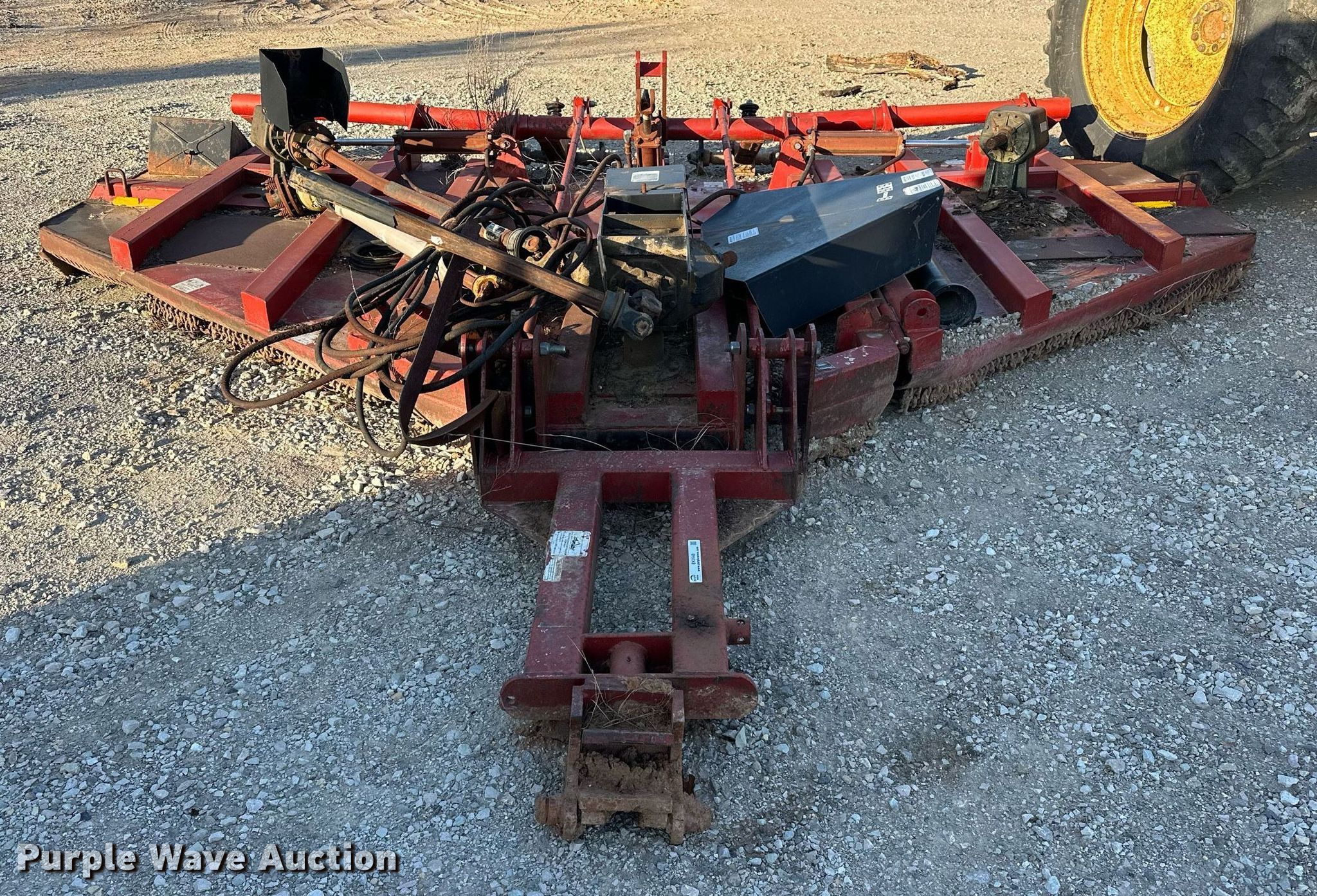 Howse SDH15 batwing rotary mower. Serial: 0223492584. Features Width: 15', Hydraulic lift, Hydraulic fold, PTO: 1 3/4" 1000. Notes Parts only, Wheels missing, Non-operational unit. Okfuskee County. Paden, OK 74860
