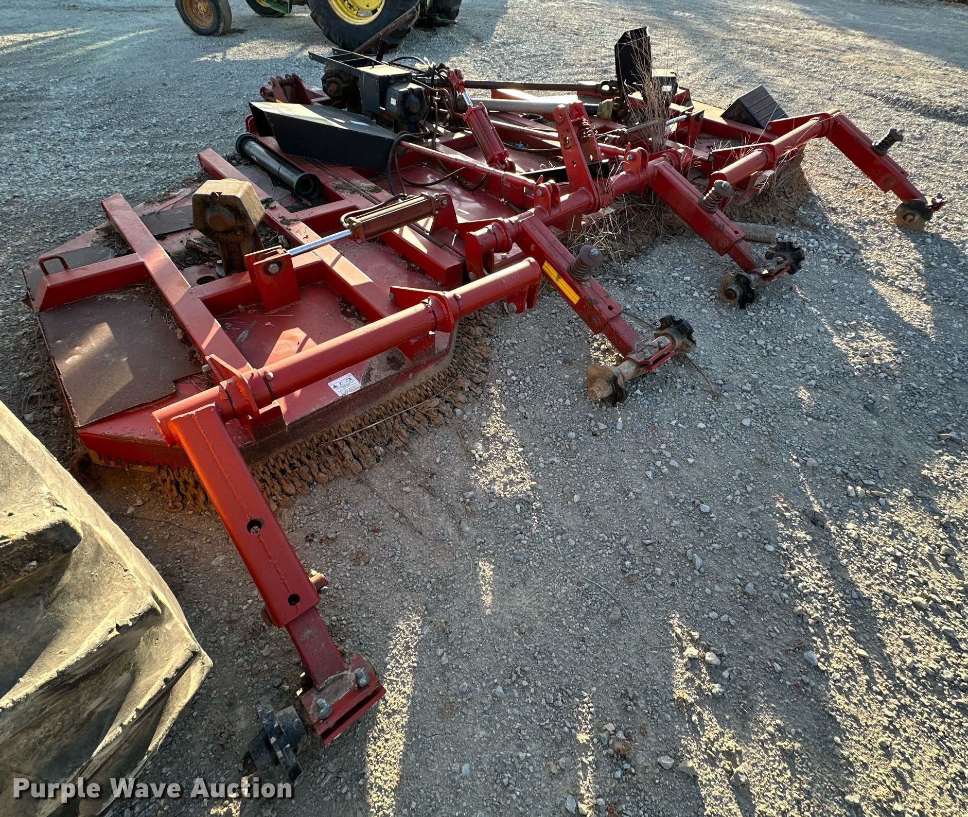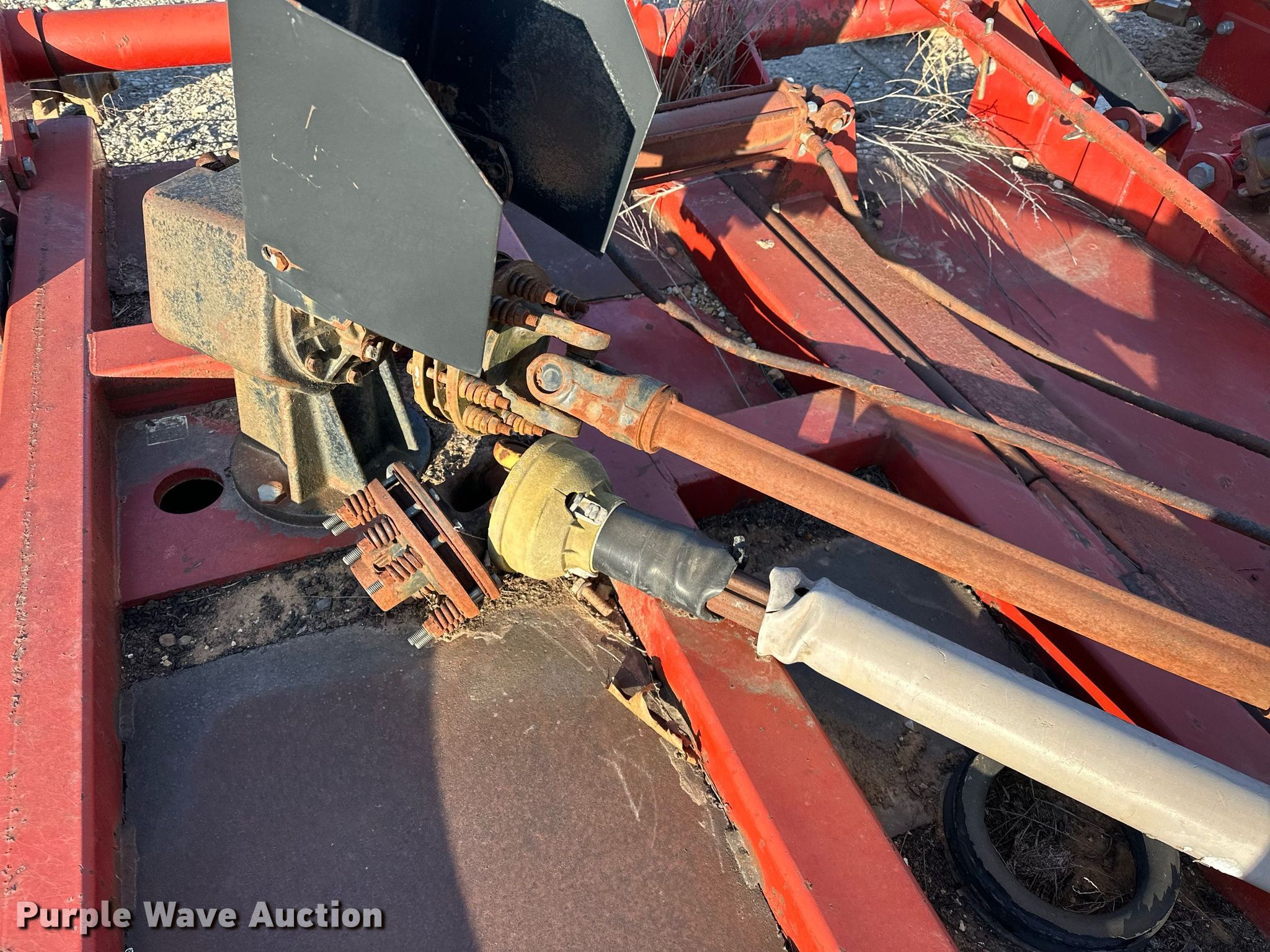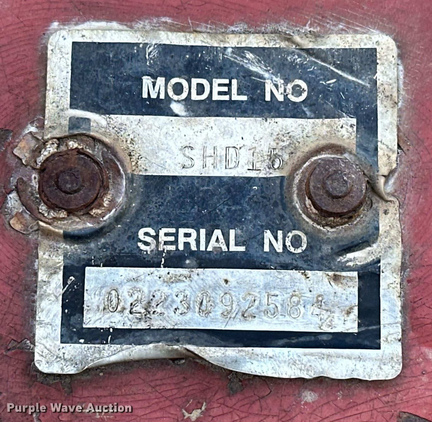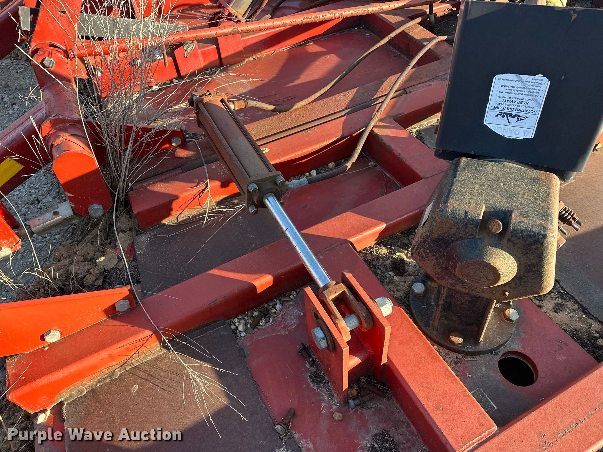 Howse SDH15 batwing rotary mower. Serial: 0223492584. Features Width: 15', Hydraulic lift, Hydraulic fold, PTO: 1 3/4" 1000. Notes Parts only, Wheels missing, Non-operational unit. Okfuskee County. Paden, OK 74860