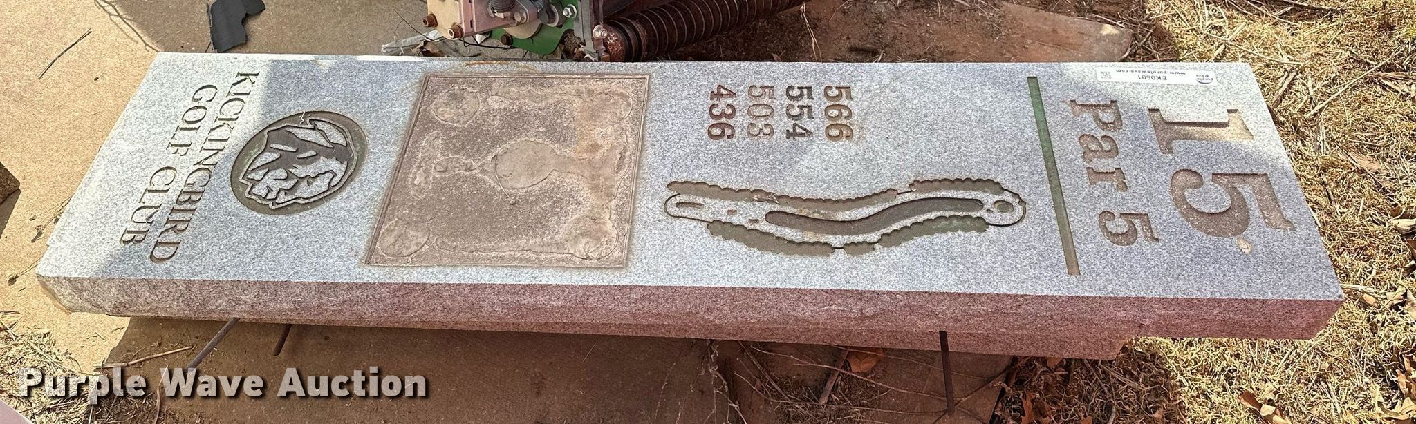 Purple Wave is selling a used Sporting Goods in Oklahoma. This item is a Granite stone golf hole markers with the following: 5' x 14"