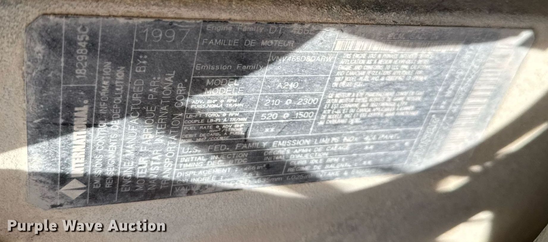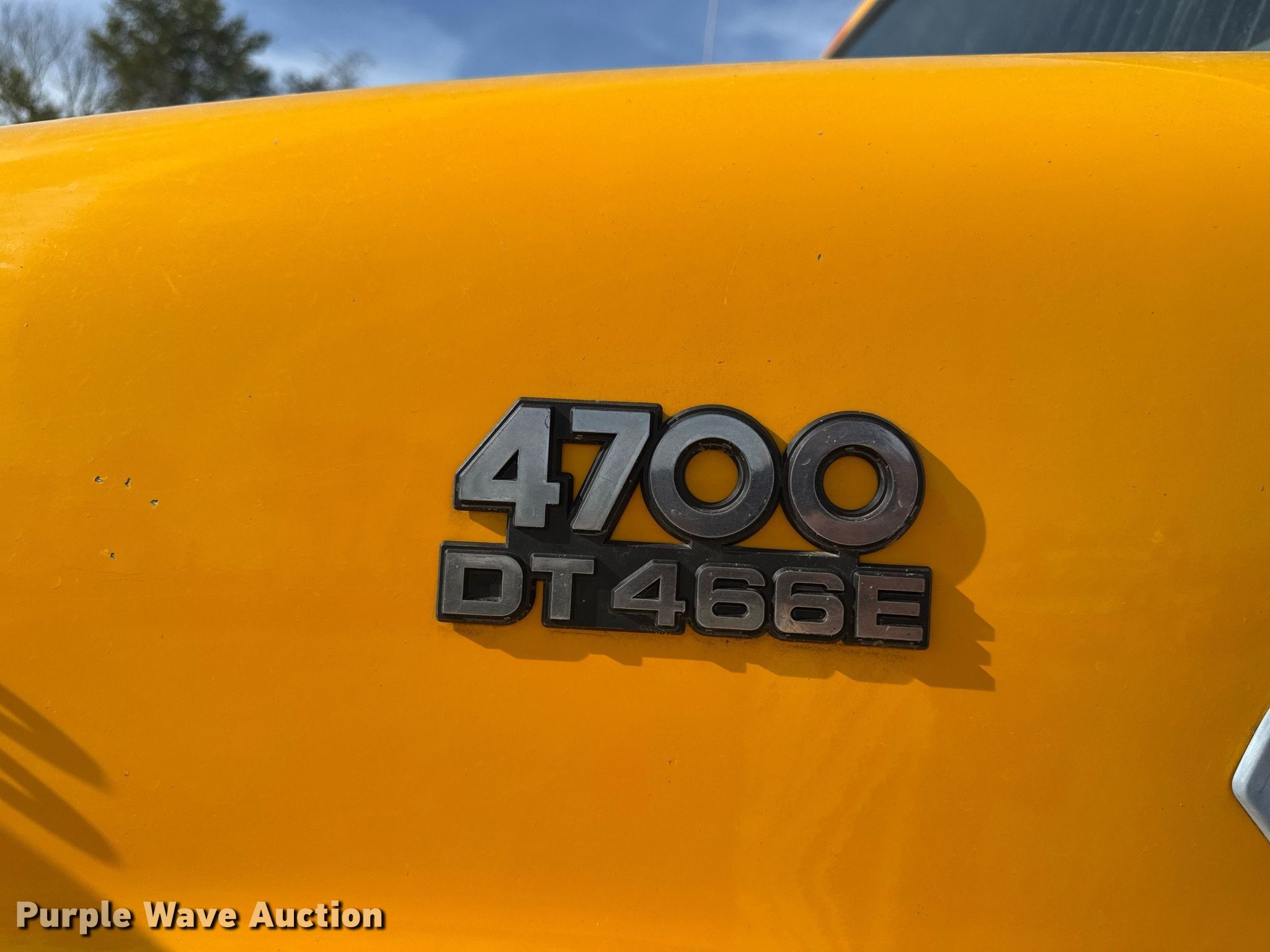 1998 International 4700 crane truck. Miles: 186,176 on odometer, Hours: 13,842 on meter, VIN: 1HTSCAAN0WH515237. Engine International DT466, Displacement: 7.6L, Cylinders: 6, Fuel type: Diesel. Transmission Allison, Automatic. Chassis Axles: Single, Suspension: Spring, Brakes: Air, PTO. Interior Heat, Cruise control. Features Flatbed 14' L x 96" W, Crane 1997 IMT 5200R Serial: 5200R971032, Boom Telescopic, Knuckle, Maximum boom length: 32' Sections: 3, Maximum lift capacity: 8,300 lbs, Boom controls Ground, Lift chart. Tires Size: 11R22.5. Notes Non-operational crane. Iowa title. Seller is a government entity who will be assigning and distributing the title. Please contact the seller for distribution questions. Madison County Secondary Roads. Winterset, IA 50273