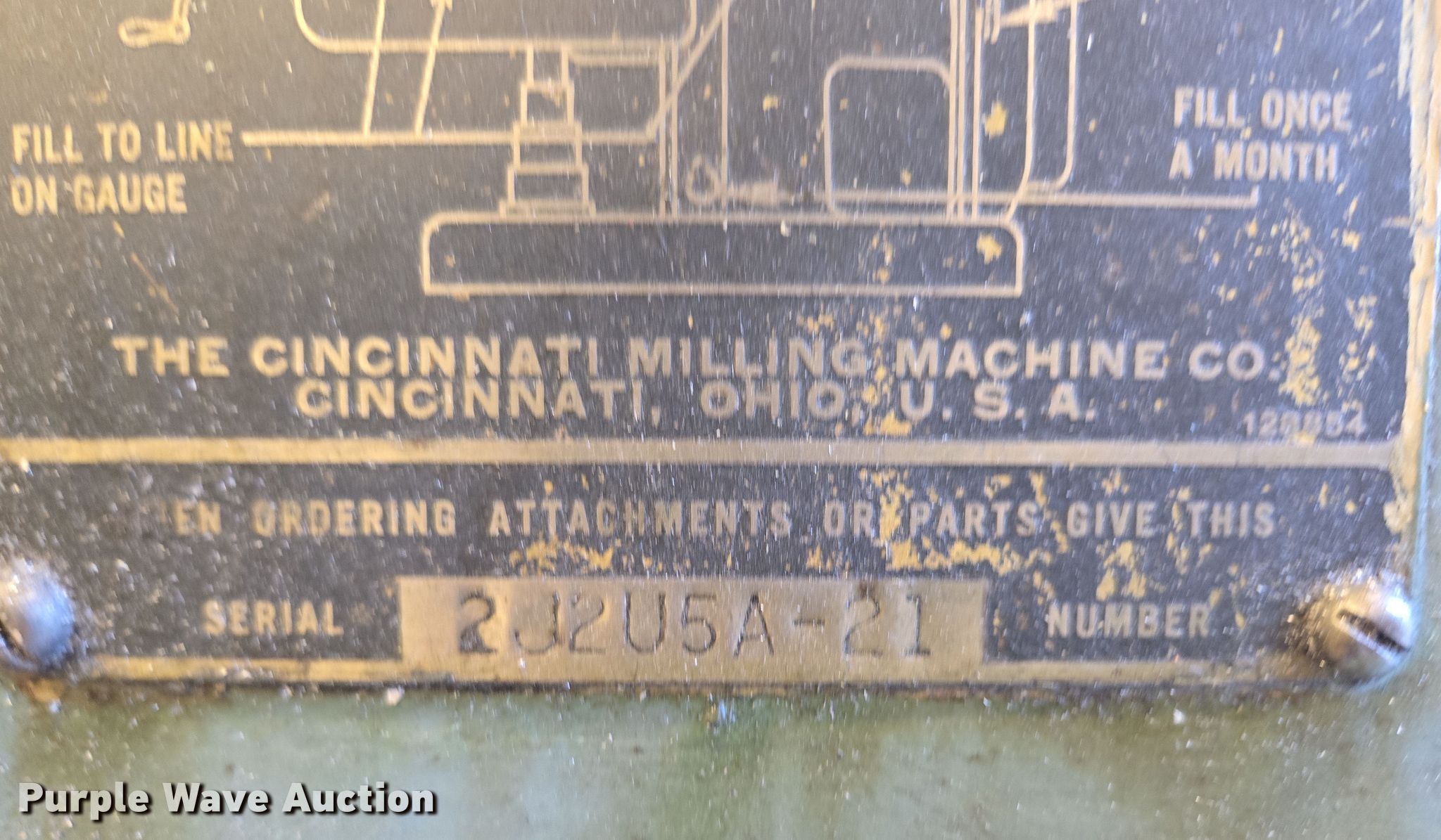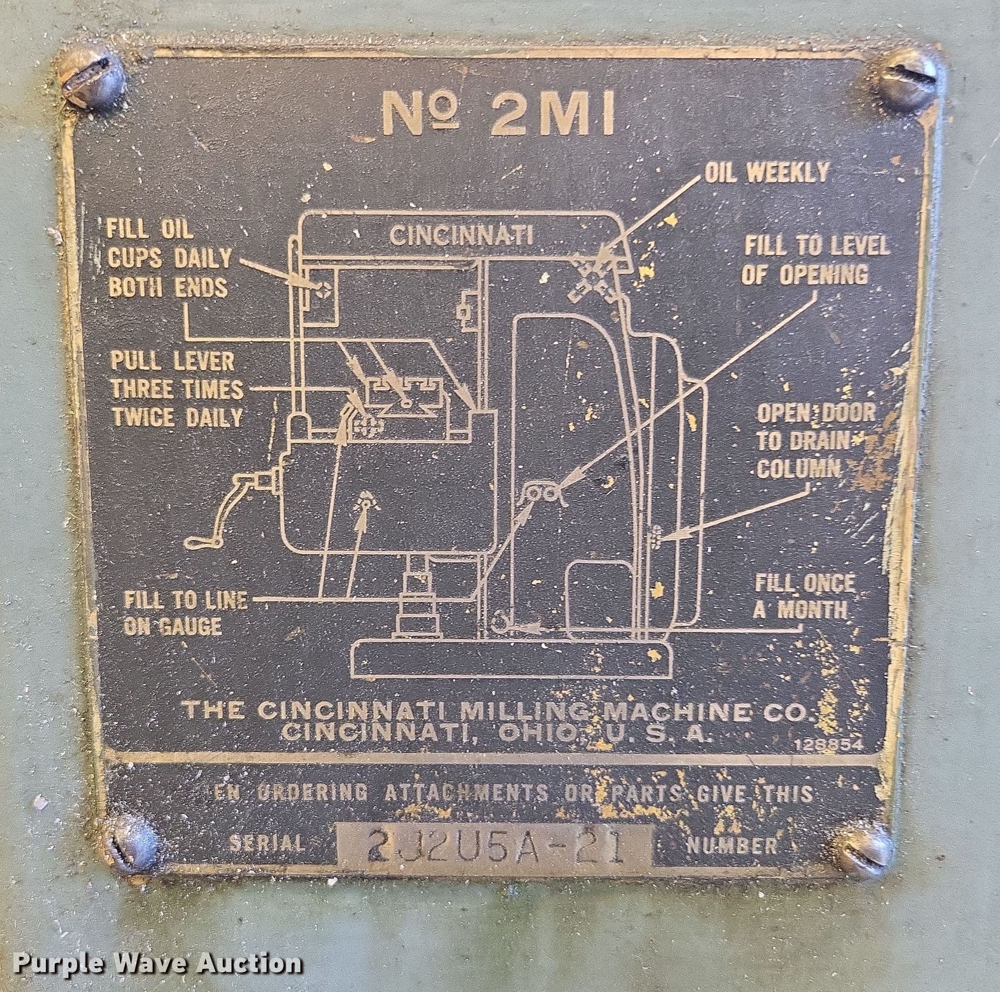 Purple Wave is selling a used Milling Machines in Kansas. This item is a Cincinnati 2ML milling machine with the following: Serial: 2J2U5A-21