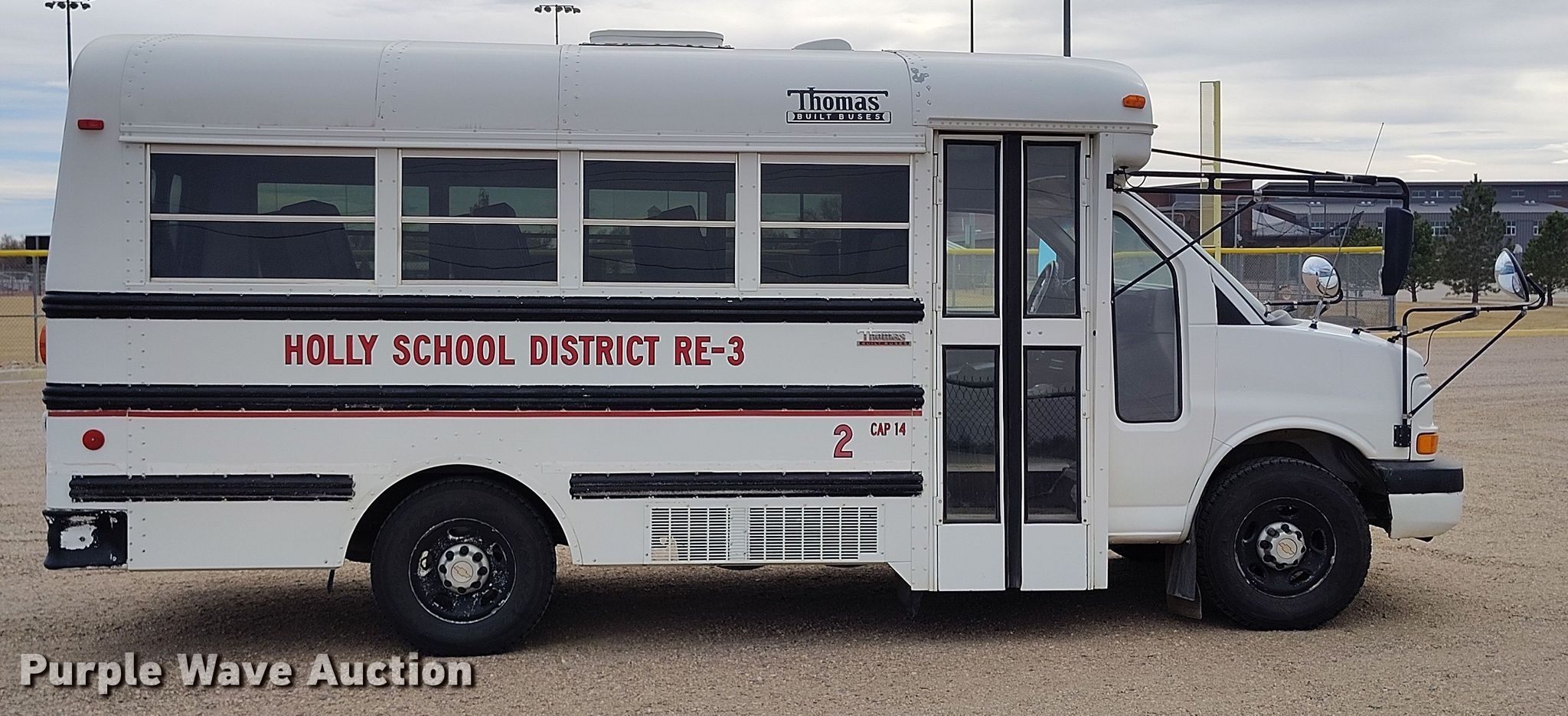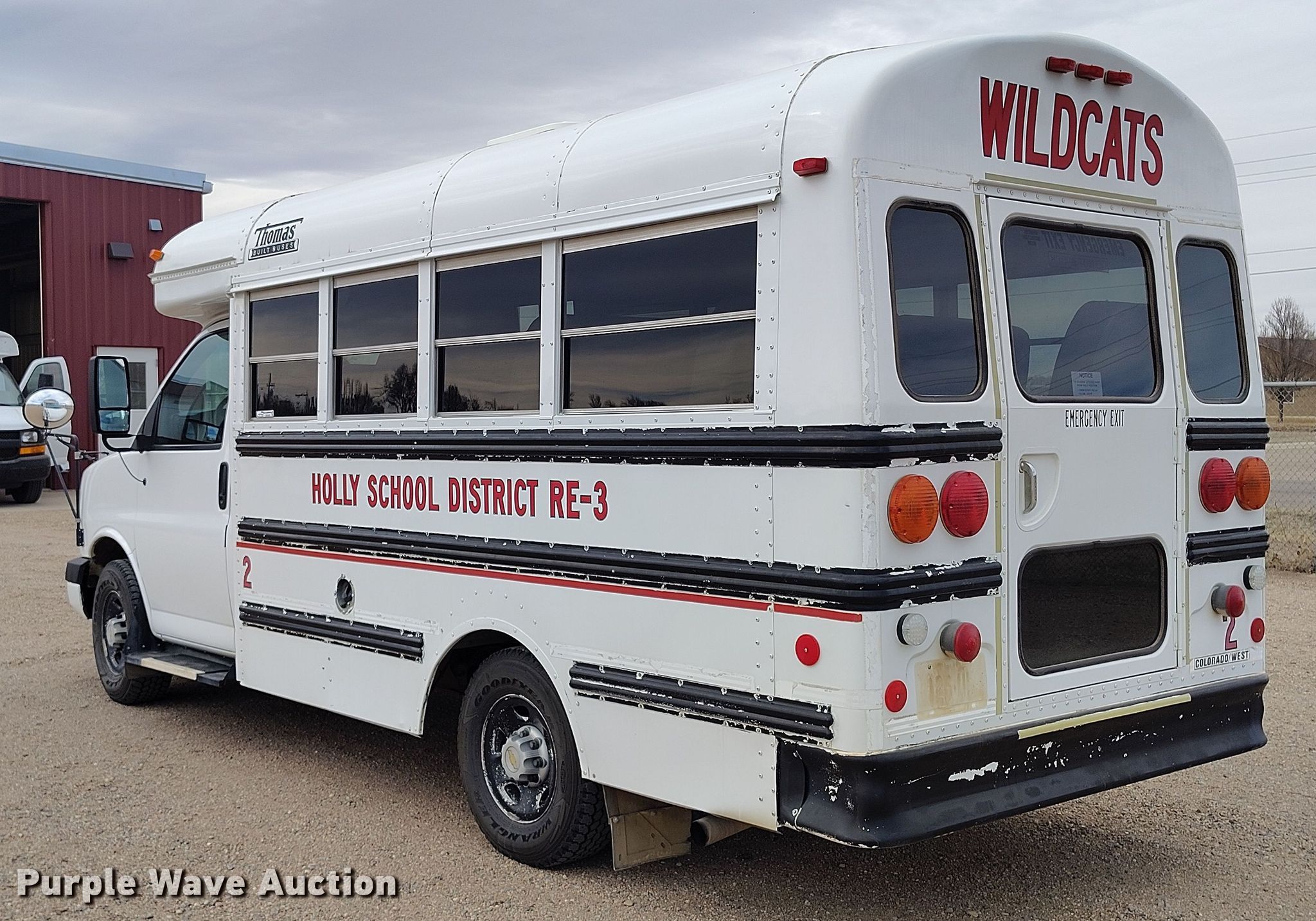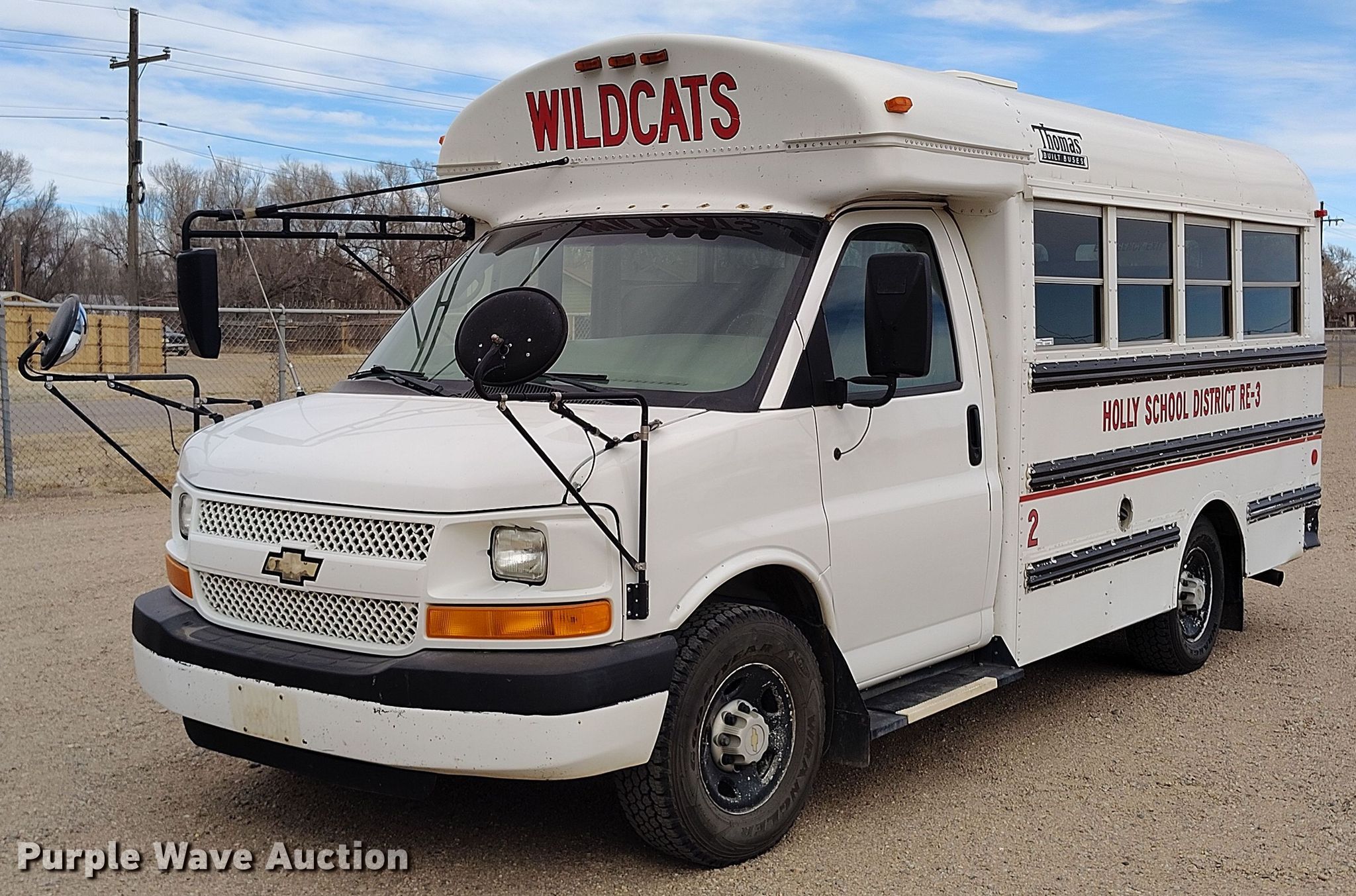2005 Chevrolet Express G3500 school bus. Miles: 144,866 on odometer, VIN: 1GBHG31V951206269, Unit #: 2. Engine Displacement: 4.8L, Cylinders: 8, Fuel type: Gas. Transmission Automatic. Chassis Axles: Single, Suspension: Spring, Brakes: Hydraulic, GVWR: 9,600 lbs. Interior AC, Heat, Heated mirrors, Passengers: 14. Tires Size: 245/75R16. Notes Decals will be removed prior to auction, Dash warning indicator: Check engine, Catalytic converter issues, needs replaced. Colorado title. Title distribution may be delayed up to 14 days from verification of funds. Holly School District. Holly, CO 81047