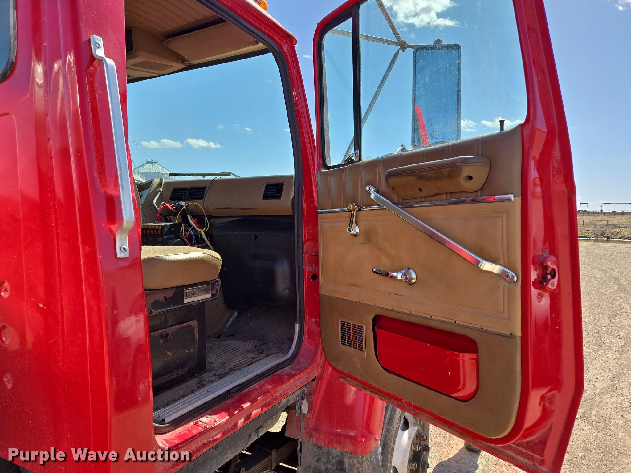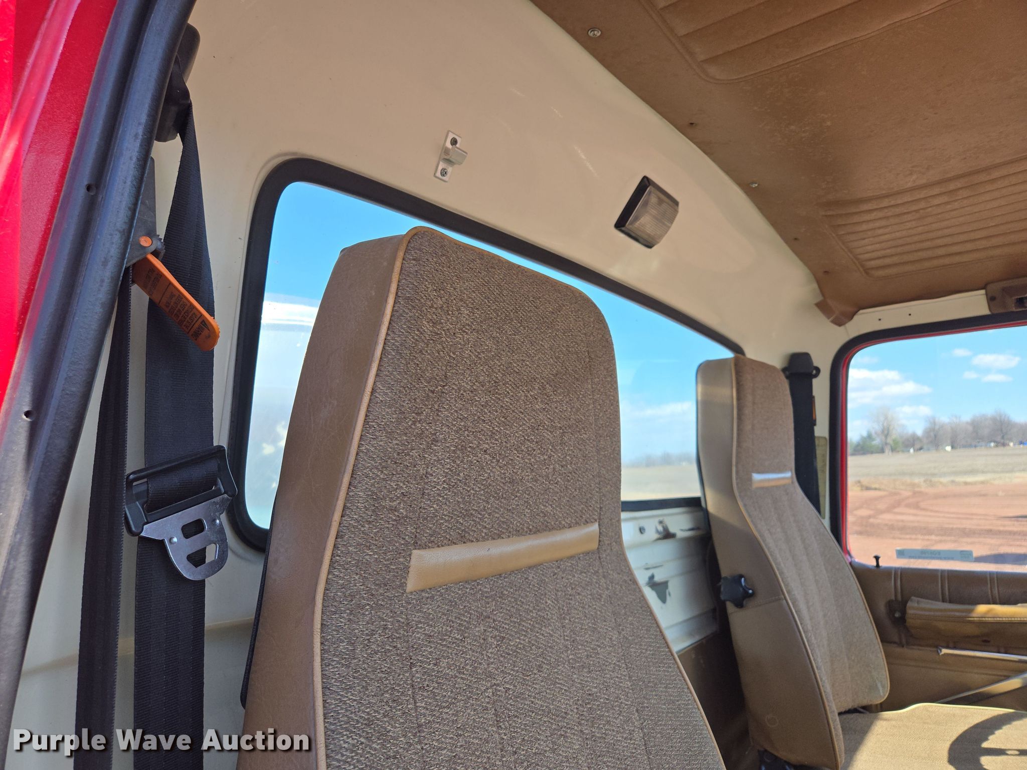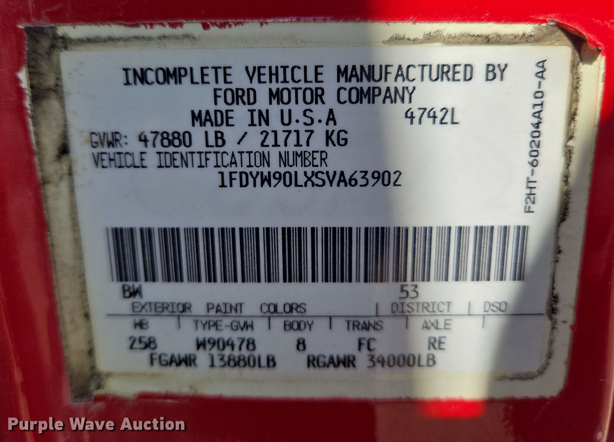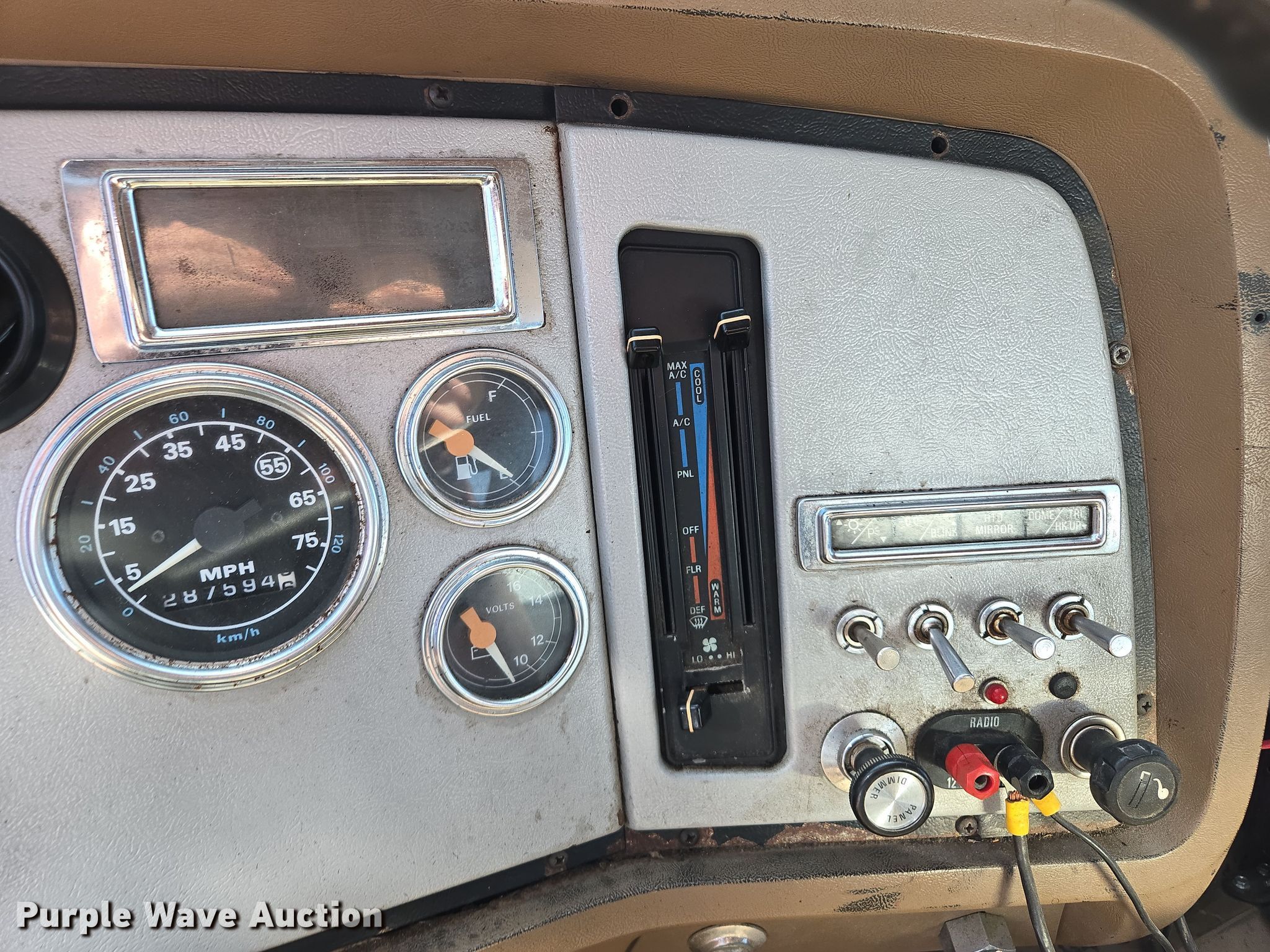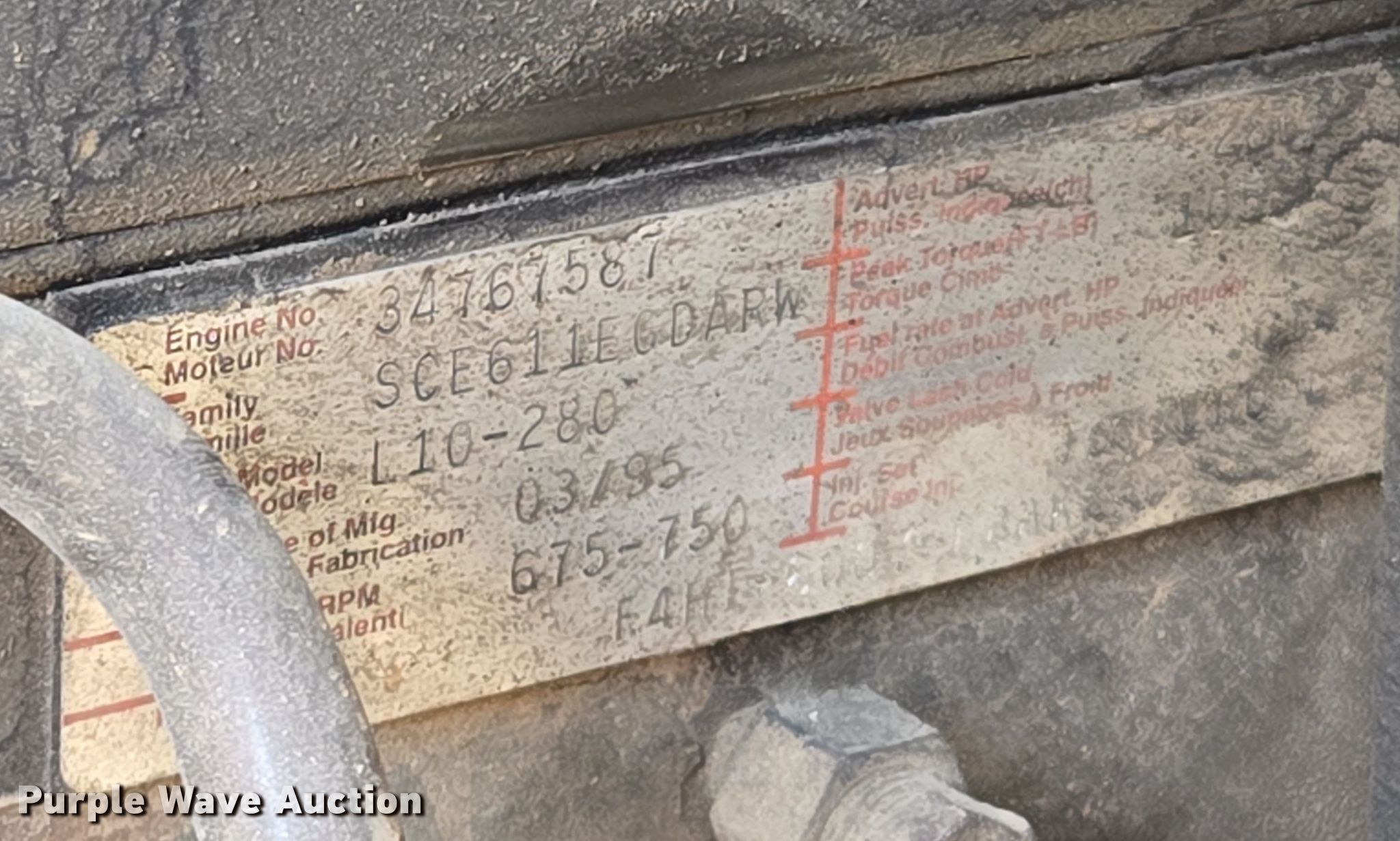 1995 Ford L9000 tanker fire truck. Miles: 287,594 on odometer, VIN: 1FDYW90LXSVA63902. Engine Cummins L10-280, Displacement: 10.0L, Cylinders: 6, Fuel type: Diesel. Transmission Eaton Fuller Roadranger, Manual, Speed: 9. Chassis Axles: Tandem, Differential lock: Inter-axle, Suspension: Spring over walking beam, Brakes: Air, GVWR: 47,880 lbs. Interior AC, Heat. Features Bed / tank 15' L x 93" W, Capacity: 3,000 gallons, Top fill, Rear fill outlet, Side fill outlet, Rear drain: 10", Insulated tank, Light panel control box. Tires Size: 295/75R22.5. Notes Exhaust leak. Missouri title. Title distribution may be delayed up to 14 days from verification of funds. Corder Fire Protection District. Corder, MO 64021