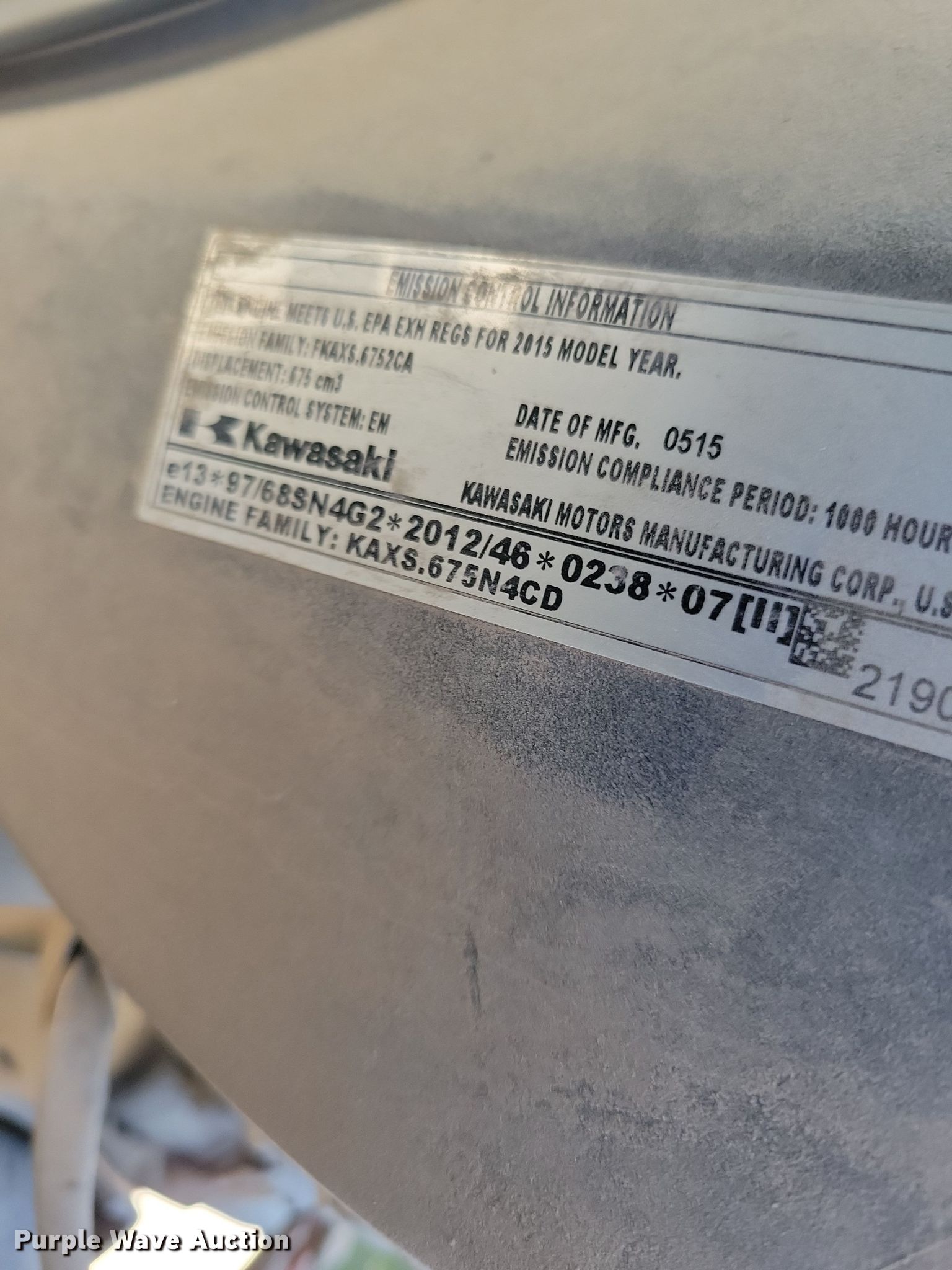 2015 John Deere Gator TX utility vehicle. Hours: 2,133 on meter, VIN: 1M04X2XDLFM102149, Unit #: 51-35. Engine Kawasaki, Displacement: 675 cc, Cylinders: 2, Fuel type: Gas, Electric start. Transmission Automatic. Features Grille guard, Receiver hitch, Dump bed 44" L x 51" W, Dump bed type: Electric/ Hydraulic. Tires Front: 22x9.5-10, Rear: 24x12-10. South Dakota title. City of Sioux Falls - Open Inspection April 11. Sioux Falls, SD 57104