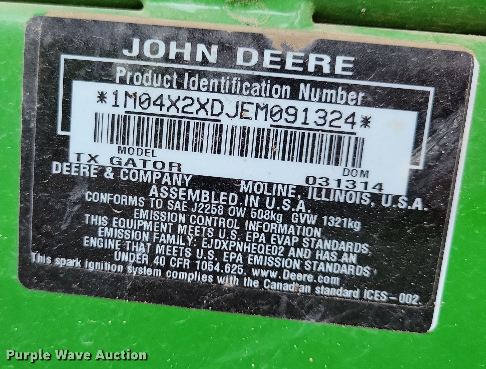 Purple Wave is selling a used Utility Vehicle in South Dakota. This item is a 2014 John Deere Gator TX utility vehicle with the following: Hours: 1,302 on meter, Serial: 1M04X2XDJEM091324, Unit #: 51-33