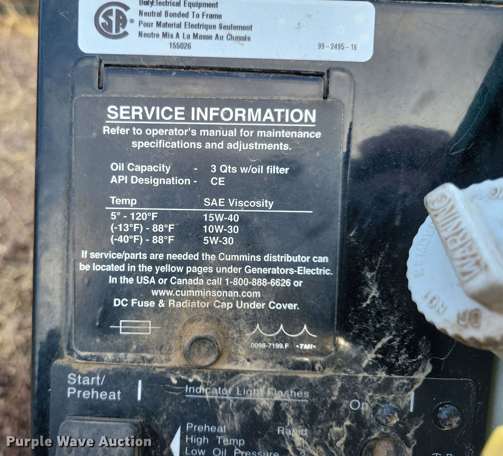 Purple Wave is selling a used Generator Set in South Dakota. This item is a Cummins Onan Commercial QD generator with the following: Hours: 1,186 on meter, Serial: B230203833, Unit #: 51-12