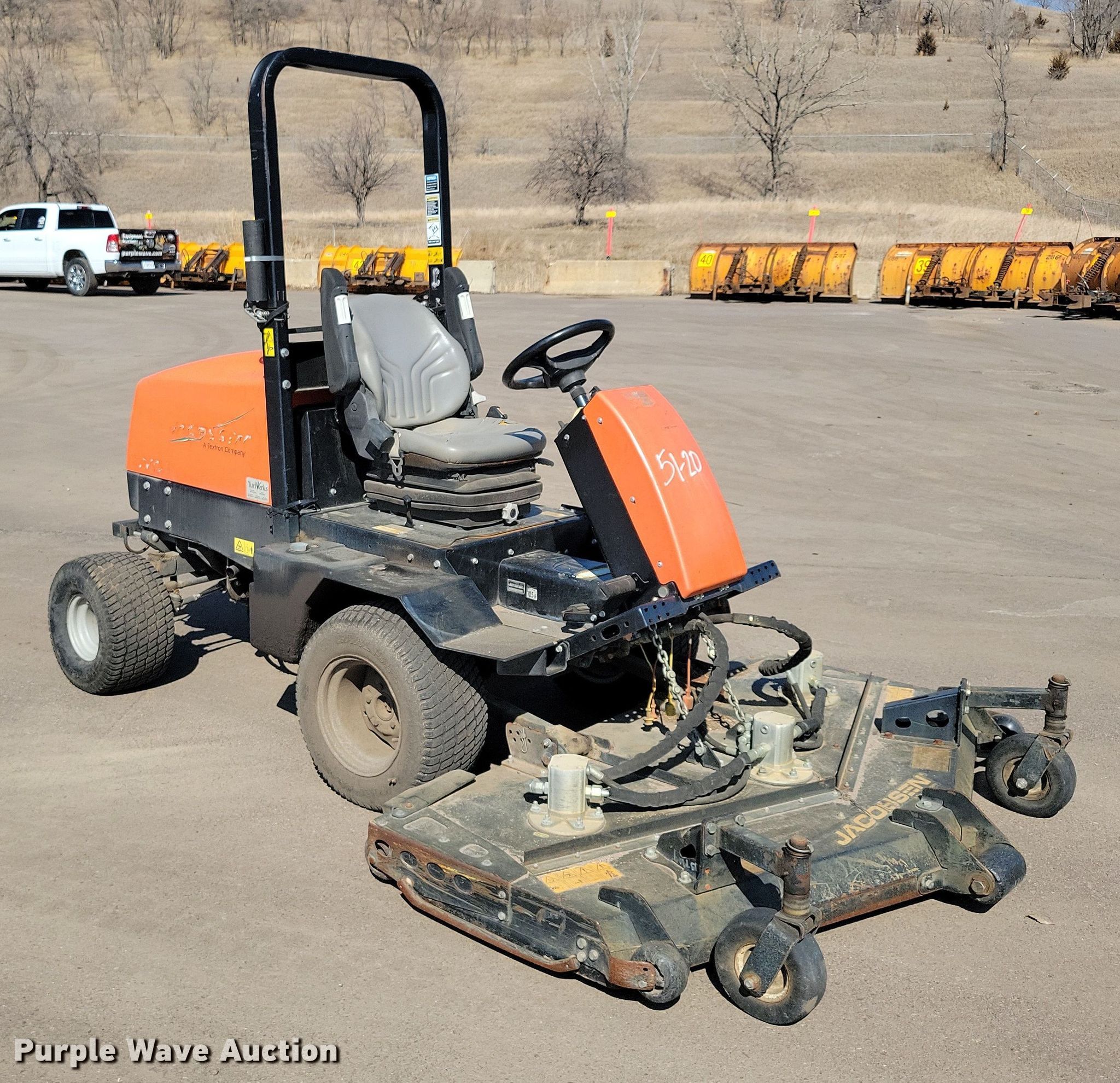 Purple Wave is selling a used Commercial Turf Mower in South Dakota. This item is a Jacobsen Turfcat lawn mower with the following: Hours: 1,915 on meter, Cutting width: 72", Serial: 691802212-01757, Unit #: 51-20