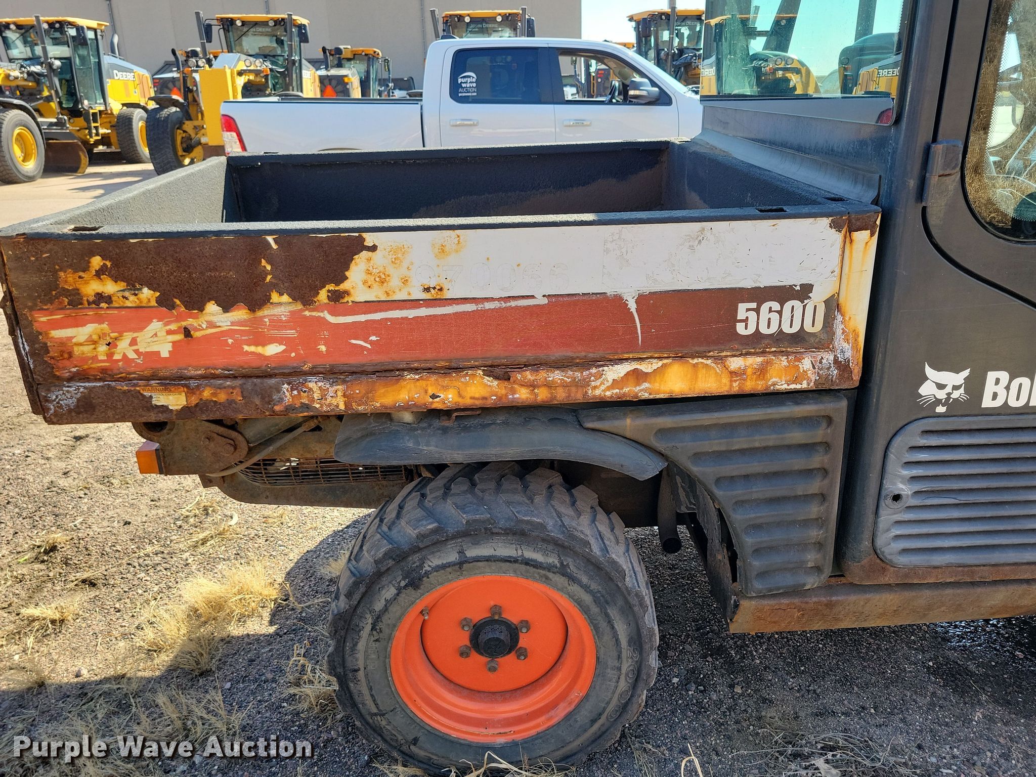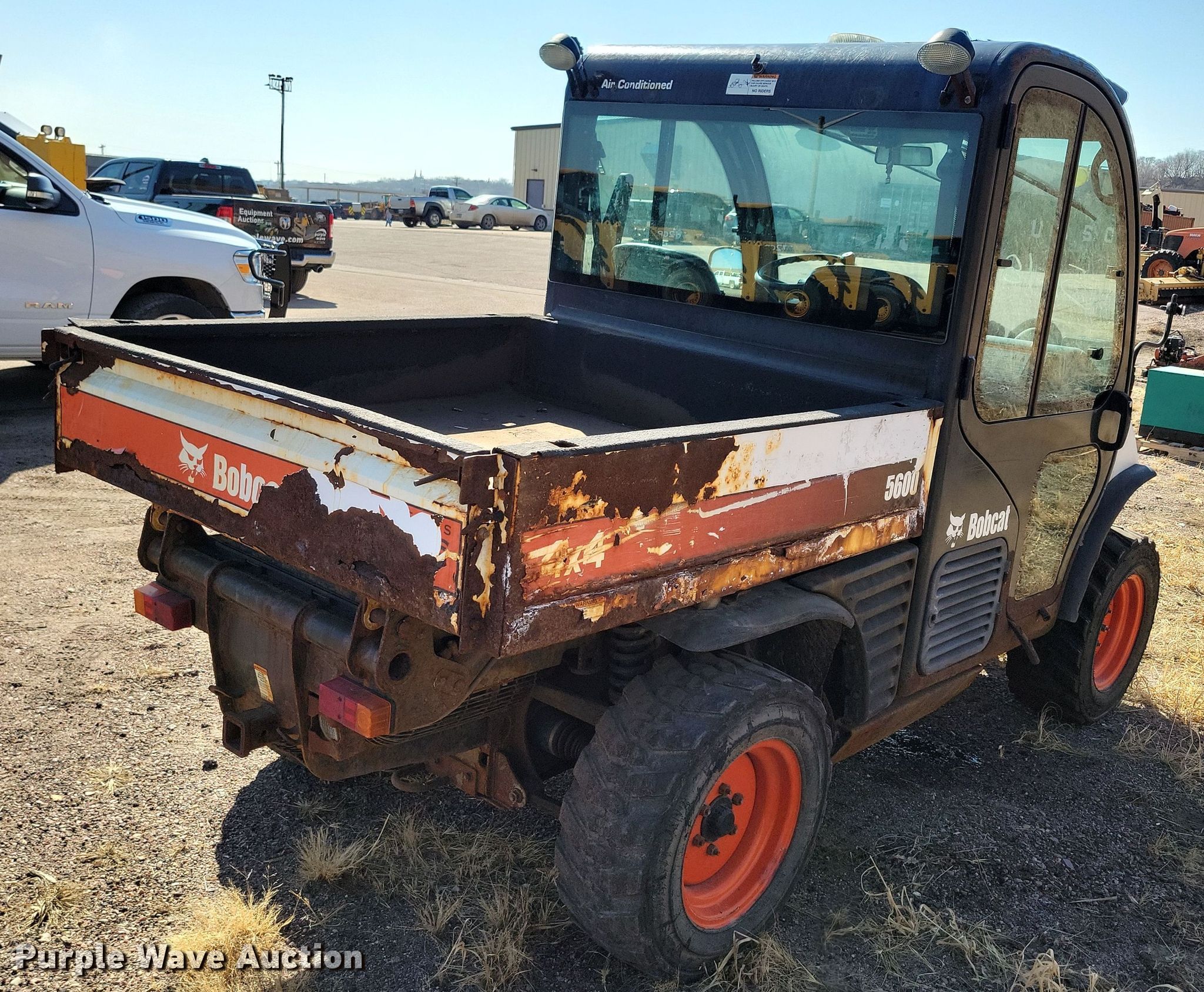 2013 Bobcat Toolcat 5600 utility vehicle. Hours: 3,031 on meter, Serial: A94Y12889, Unit #: 51-18. Engine Fuel type: Diesel, Electric start. Transmission Automatic. Chassis Four wheel drive/ All wheel drive. Operators station Enclosed cab, AC, Heat. Features Receiver hitch, Dump bed 56" L x 51" W, Dump bed type: Electric/ Hydraulic, Auxiliary hydraulics, Hi flow. Tires Size: 27x10.5-15. Notes Non-operational driveline, Non-operational hydraulic lines, Oil leak, Non-operational unit. Transfer of ownership documentation will be a bill of sale. City of Sioux Falls - Open Inspection April 11. Sioux Falls, SD 57104