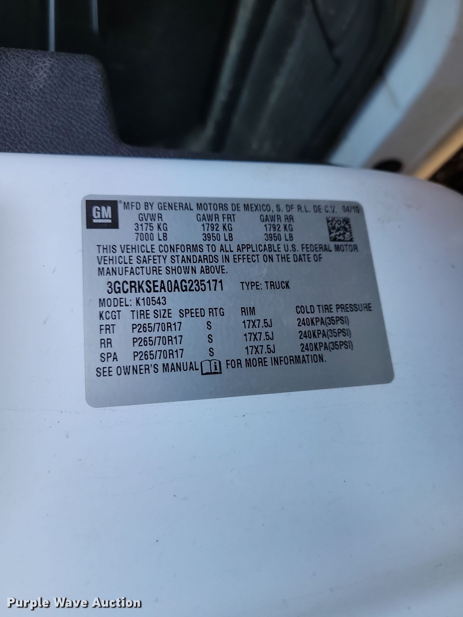 2010 Chevrolet Silverado 1500 Crew Cab pickup truck. Miles: 174,474 on odometer, VIN: 3GCRKSEA0AG235171. Engine Displacement: 4.8L V8 OHV, Cylinders: 8, Fuel type: Gas. Transmission Automatic, Four wheel drive. Interior AC, Heat, Power windows, Power locks, Cruise control. Tires Size: P265/70R17. Notes Dash warning indicator: Check engine, Non-operational unit Unit must be towed or hauled. Nebraska title. Seller is a government entity who will be assigning and distributing the title. Please contact the seller for distribution questions. Madison Co. Rd District#3. Meadow Grove, NE 68752
