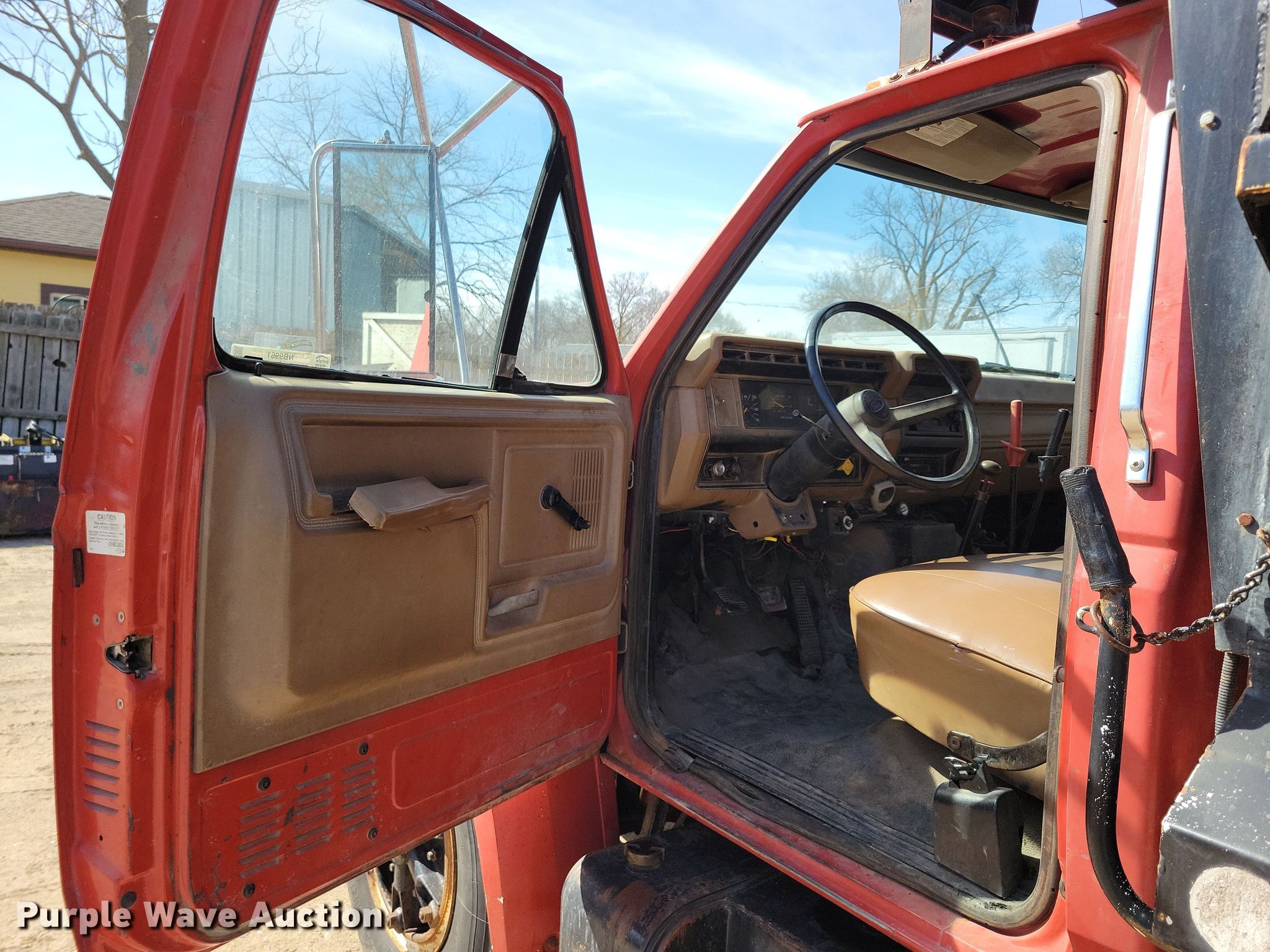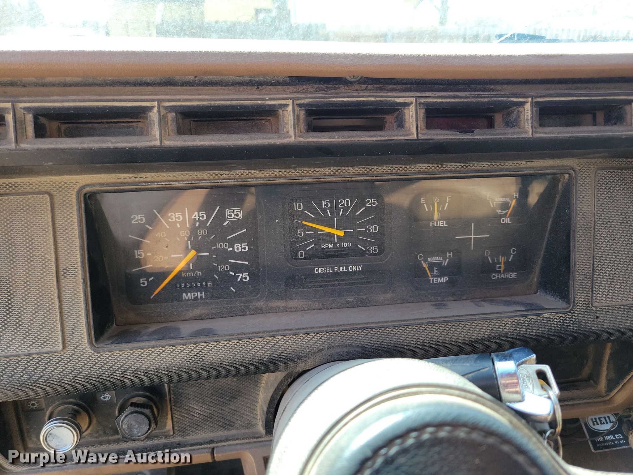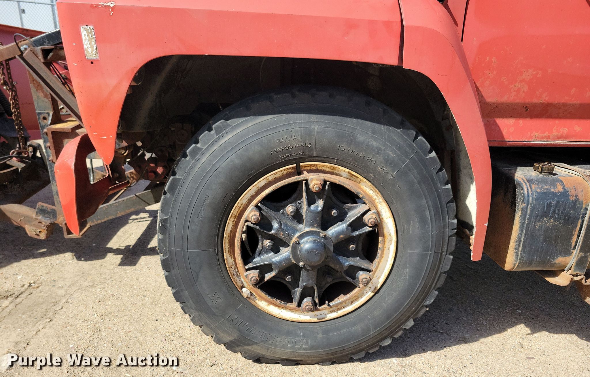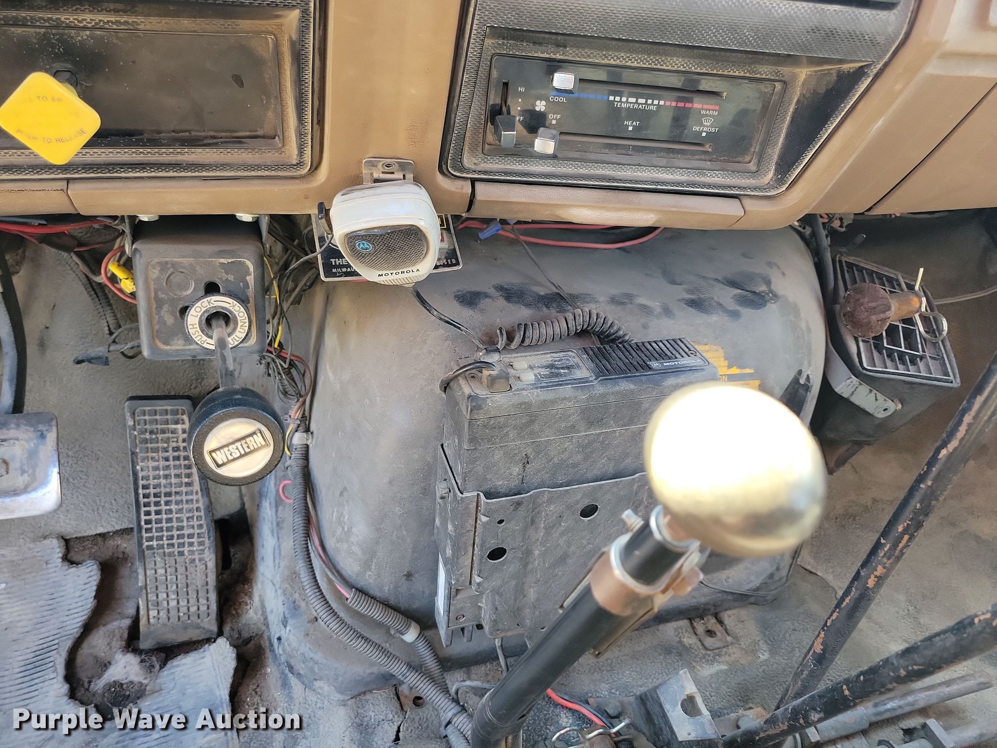 1987 Ford F800 dump truck. Miles: 195,564 on odometer, VIN: 1FDPT84A3HVA65989. Engine Displacement: 7.8L, Cylinders: 6, Fuel type: Diesel. Transmission Manual, Speed: 5, plus 2. Chassis Axles: Single, Suspension: Spring, Brakes: Hydraulic, PTO, GVWR: 28,000 lbs, Wheelbase: 158". Interior Heat. Features Dump bed 10' L x 96" W, Side height: 30", Side board height: 10", Bed type: Steel, Ram: Single, End gate: Manual, Plow Western, Width: 120". Tires Front: 10.00R20, Rear: 10.00-20. Notes Rust damage, Fuel leak, Windshield chipped or cracked, Non-operational plow. Nebraska title. Seller is a government entity who will be assigning and distributing the title. Please contact the seller for distribution questions. City of Pierce, NE. Pierce, NE 68767