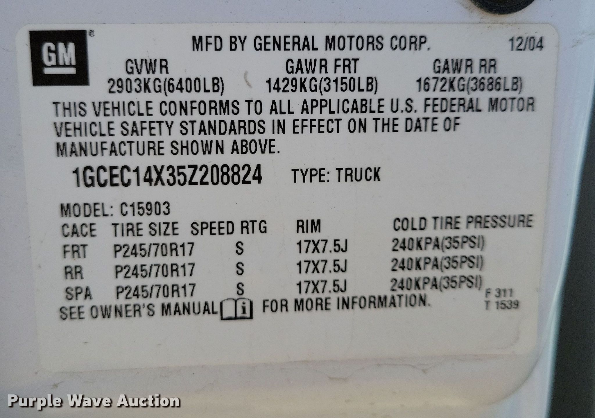 Purple Wave is selling a used 1/2 Ton Pickup or Van in Nebraska. This item is a 2005 Chevrolet Silverado 1500 pickup truck with the following: Miles: 60,044 on odometer, VIN: 1GCEC14X35Z208824