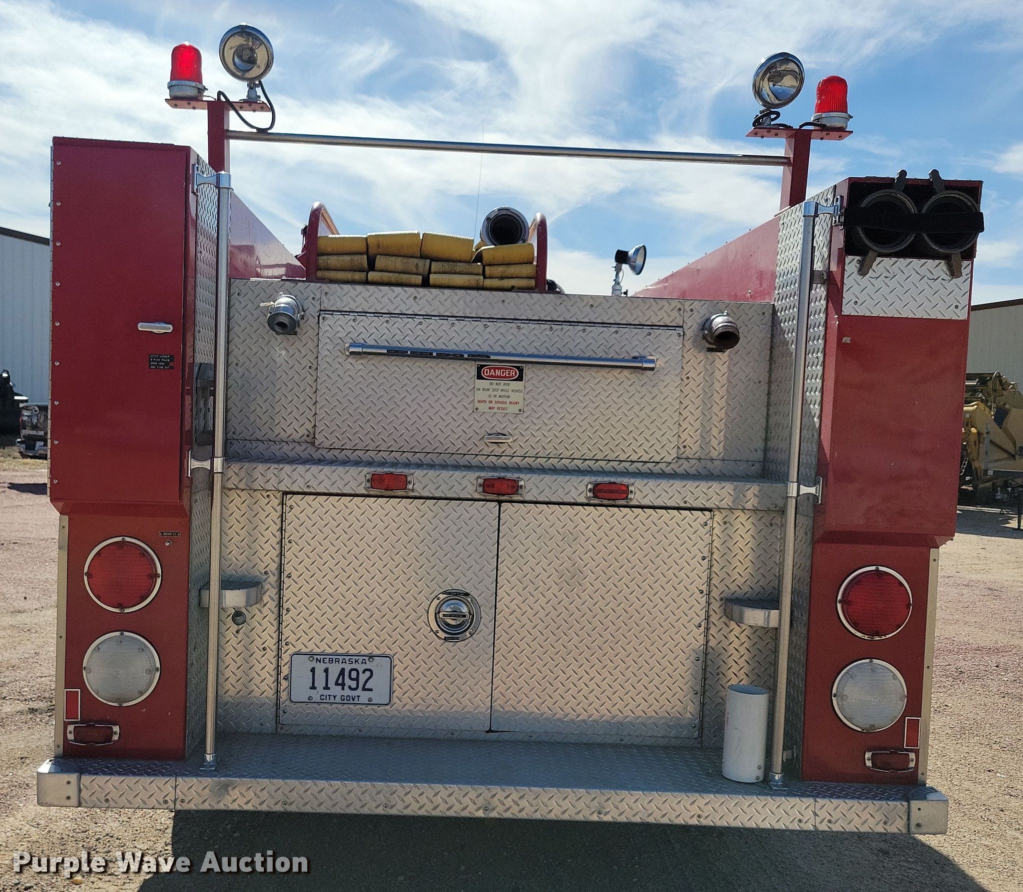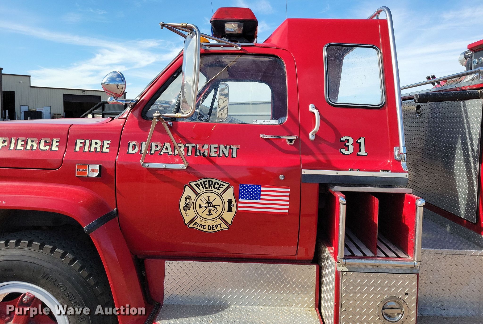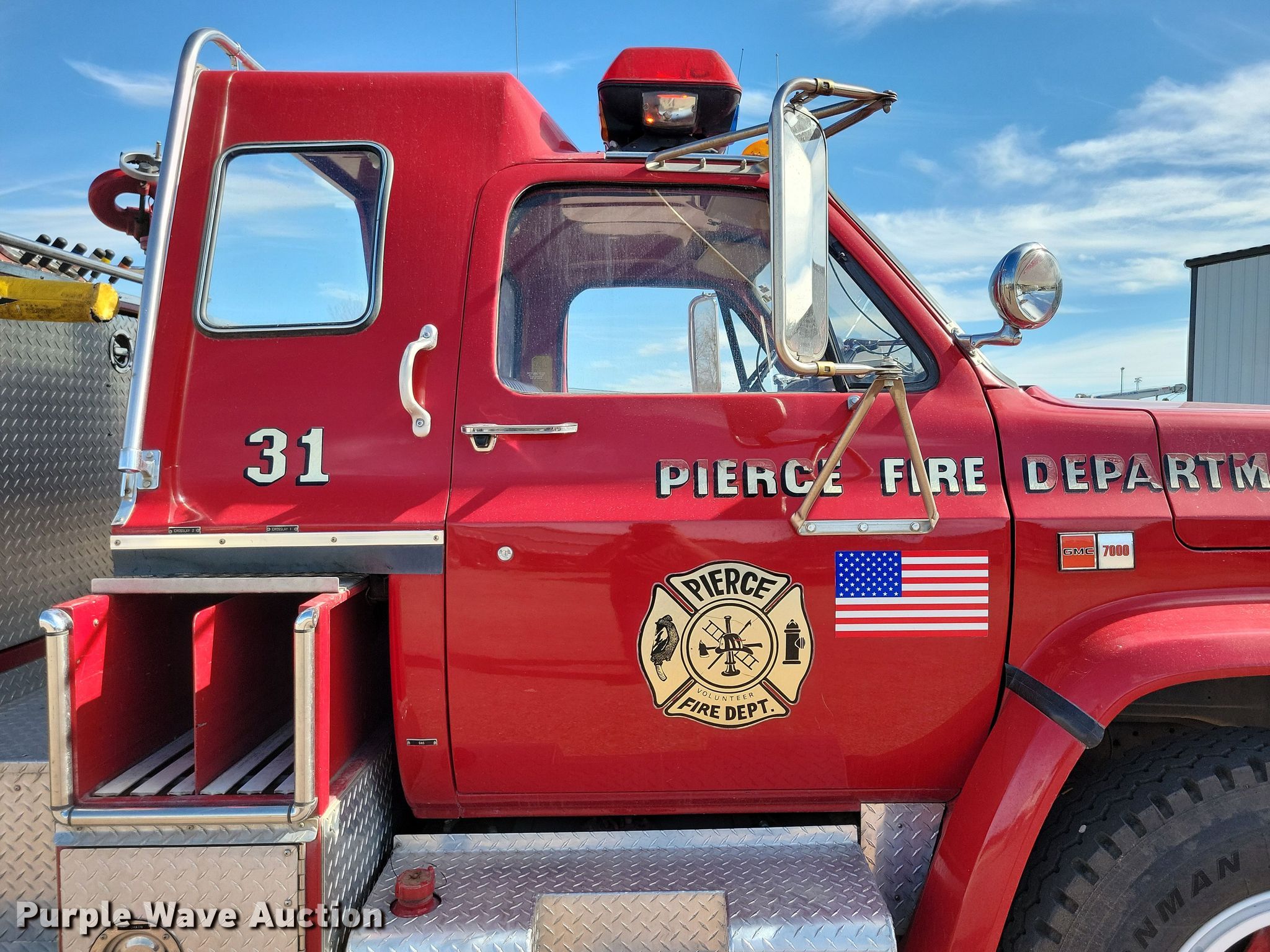 1988 GMC C7000 pumper fire truck. Miles: 9,902 on odometer, VIN: 1GDL7D1EXJV532236. Engine Displacement: 7.0L, Cylinders: 8, Fuel type: Gas. Transmission Manual, Speed: 5. Chassis Axles: Single, Suspension: Spring, Brakes: Hydraulic, GVWR: 30,200 lbs. Interior Heat, Auxiliary controls. Features Fire truck body Smeal V-801-XL, Hours: 937 on meter, Elevated deck gun, Tank Capacity: 750 gallons, Pump 750 gpm, Engine Cylinders: 8, Fuel type: Gas, Dead battery, Ground ladder, Generator Coleman Powermate, Fuel type: Gas, kW: 5, Watts: 5,000, PA/ siren controls. Tires Size: 11R22.5. Nebraska title. Seller is a government entity who will be assigning and distributing the title. Please contact the seller for distribution questions. City of Pierce. Pierce, NE 68767