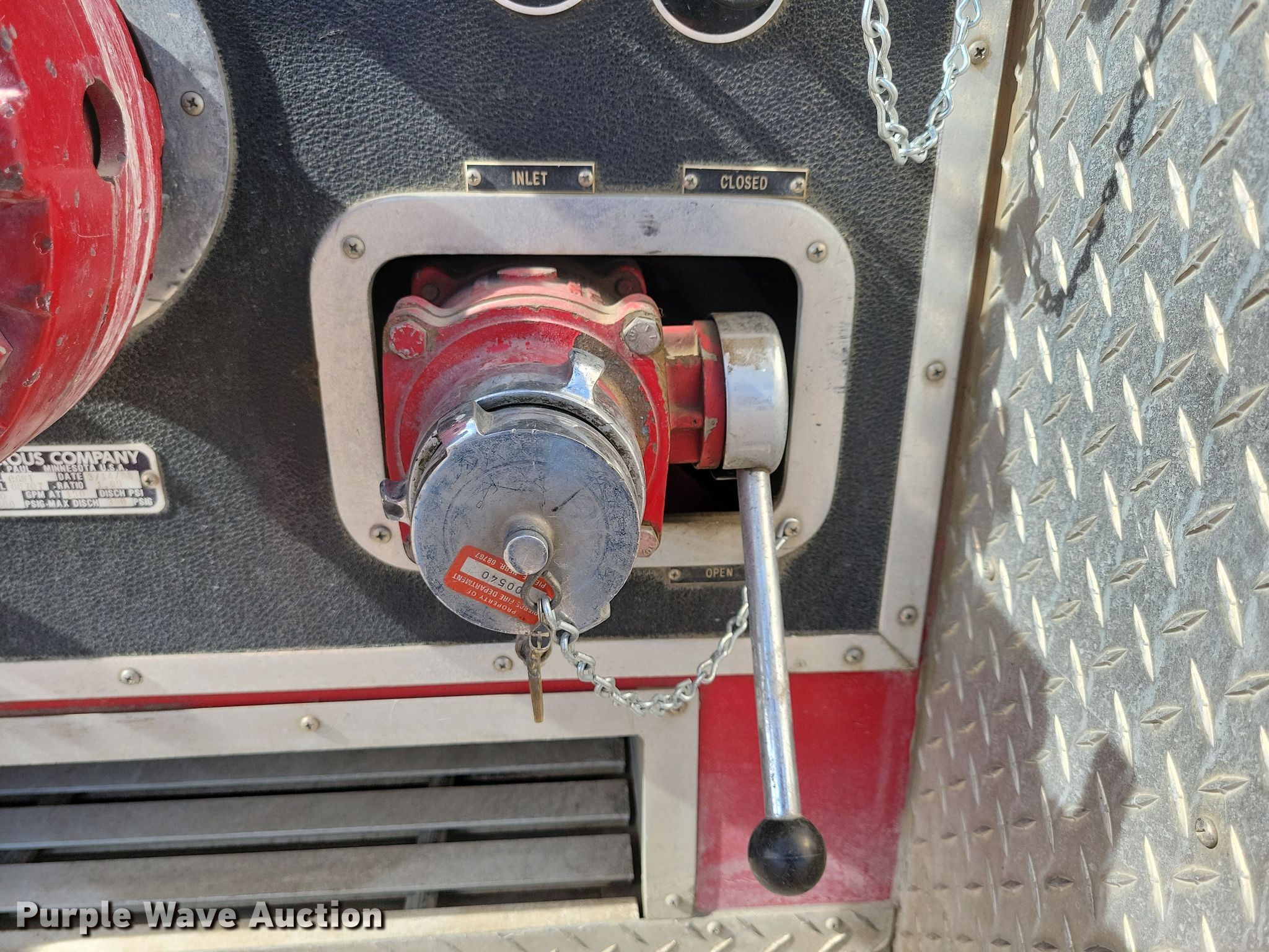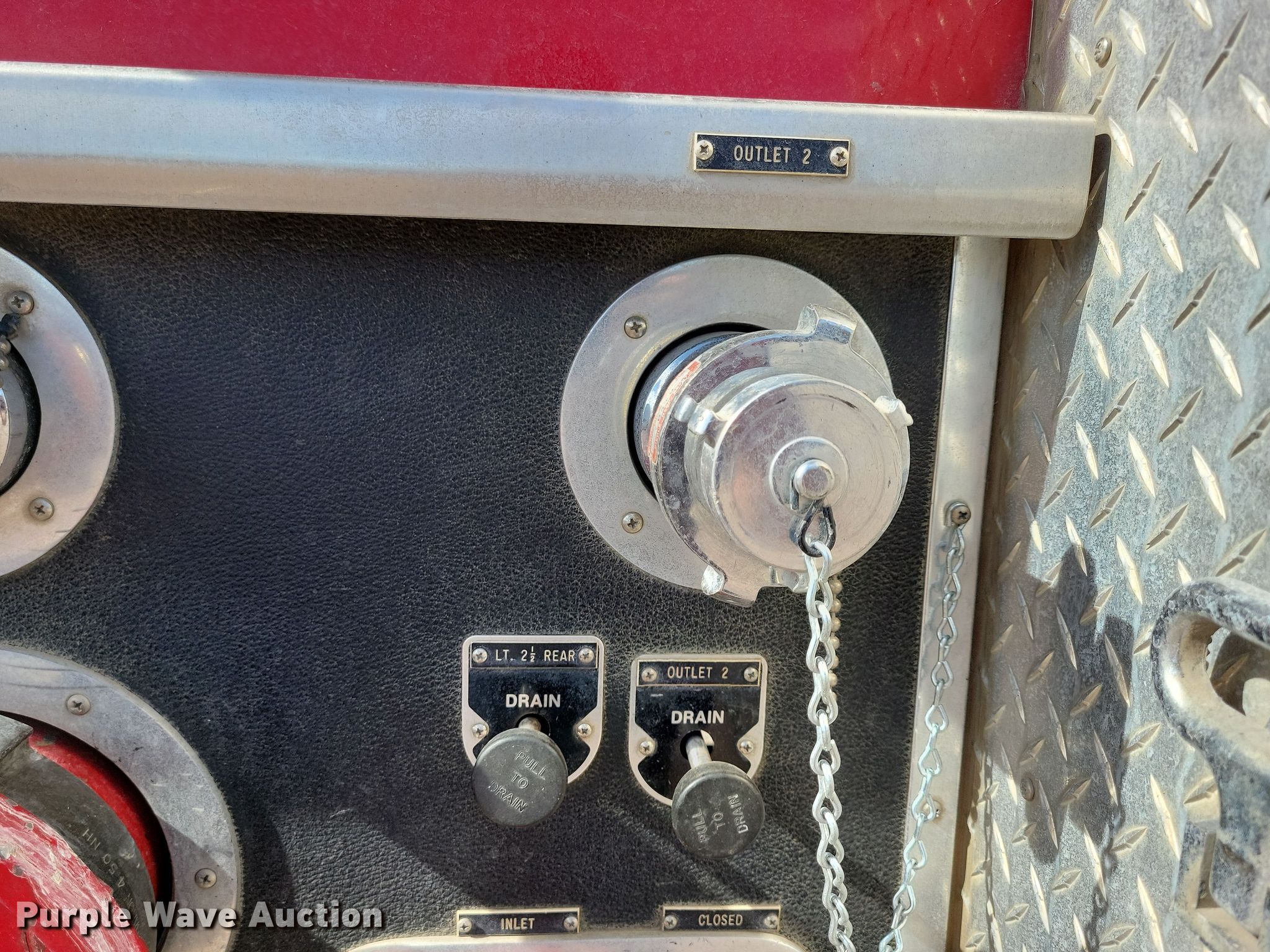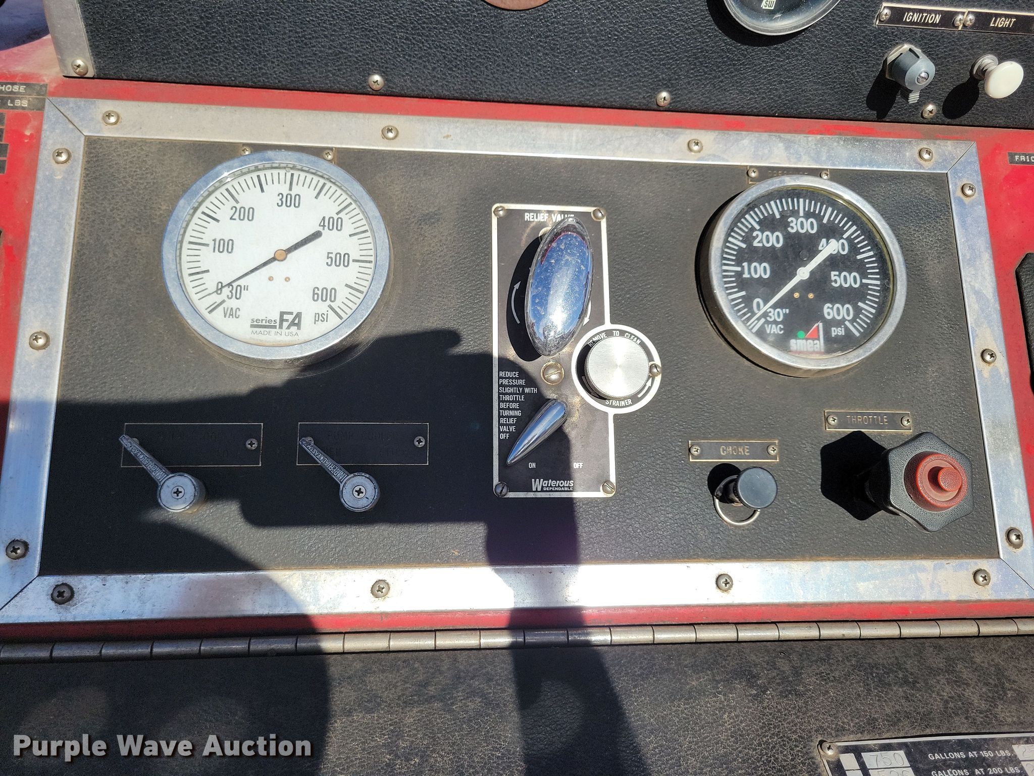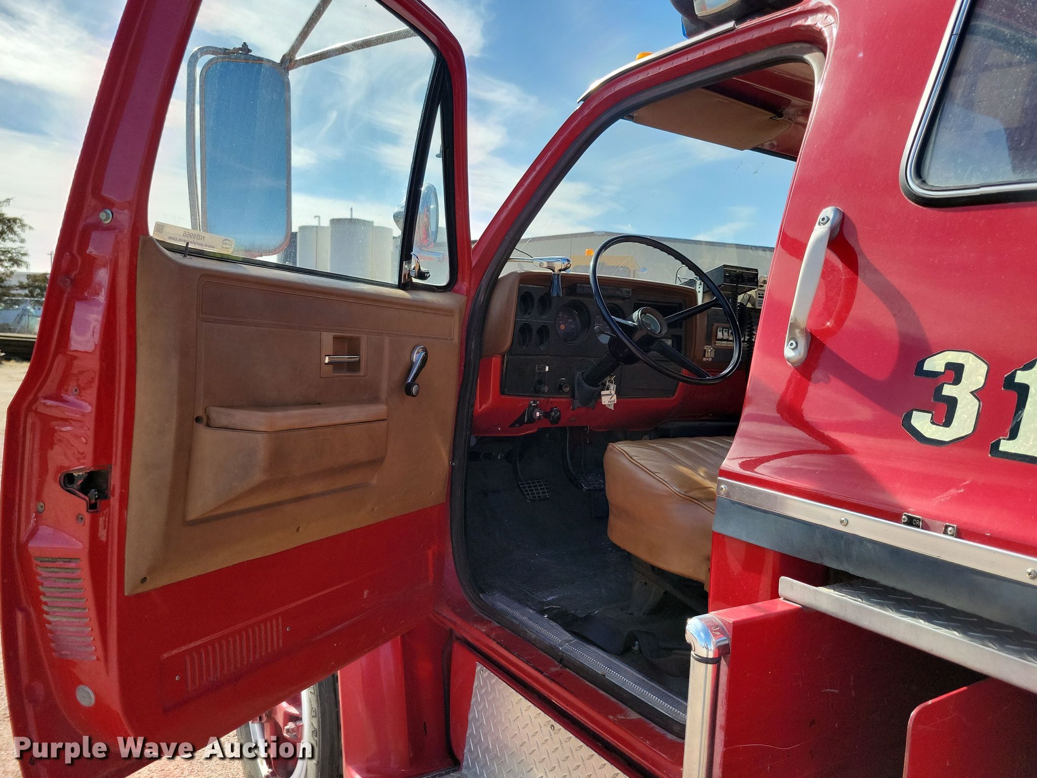 1988 GMC C7000 pumper fire truck. Miles: 9,902 on odometer, VIN: 1GDL7D1EXJV532236. Engine Displacement: 7.0L, Cylinders: 8, Fuel type: Gas. Transmission Manual, Speed: 5. Chassis Axles: Single, Suspension: Spring, Brakes: Hydraulic, GVWR: 30,200 lbs. Interior Heat, Auxiliary controls. Features Fire truck body Smeal V-801-XL, Hours: 937 on meter, Elevated deck gun, Tank Capacity: 750 gallons, Pump 750 gpm, Engine Cylinders: 8, Fuel type: Gas, Dead battery, Ground ladder, Generator Coleman Powermate, Fuel type: Gas, kW: 5, Watts: 5,000, PA/ siren controls. Tires Size: 11R22.5. Nebraska title. Seller is a government entity who will be assigning and distributing the title. Please contact the seller for distribution questions. City of Pierce. Pierce, NE 68767