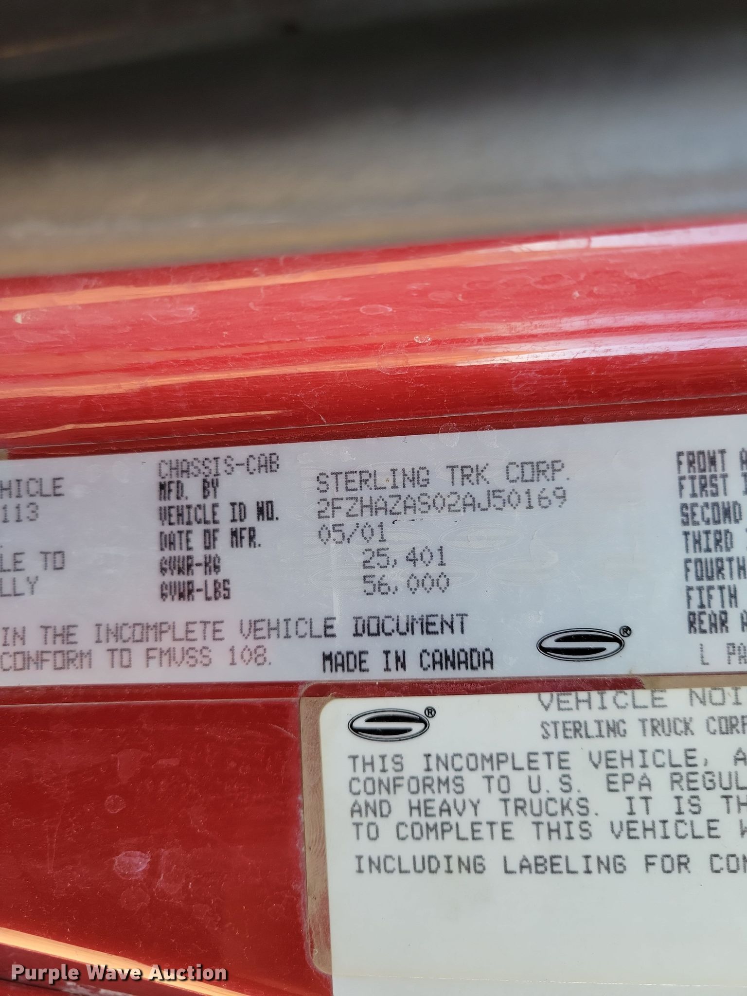 Purple Wave is selling a used Construction Dump Truck in Iowa. This item is a 2002 Sterling LT9500 dump truck with the following: Miles: 258,953 on odometer, Hours: 10,329 on meter, VIN: 2FZHAZAS02AJ50169