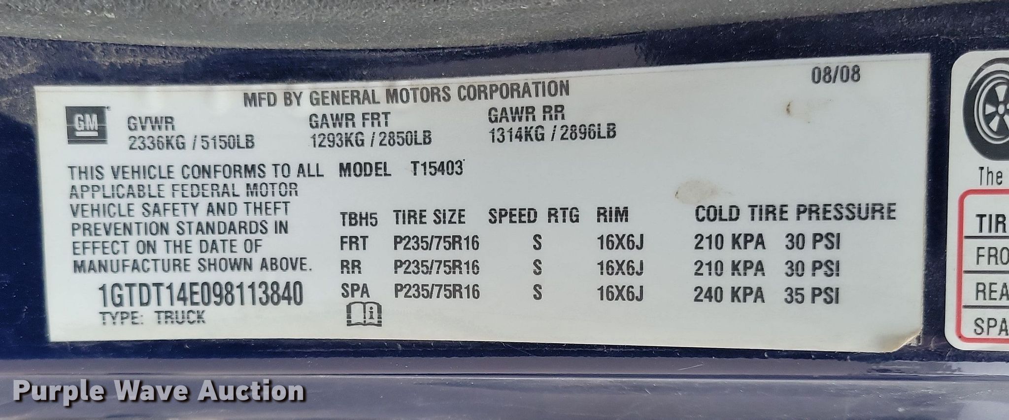 • VIN: 1GTDT14E098113840