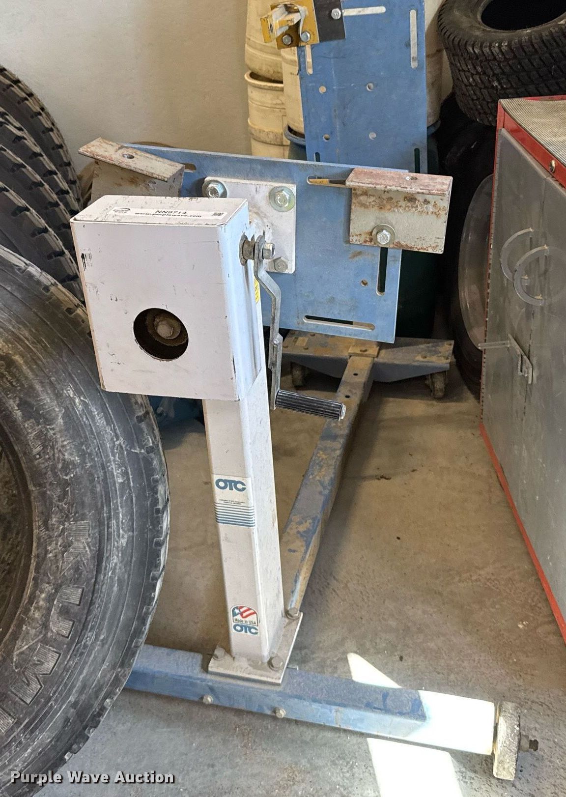 Purple Wave is selling a used Tools in Kansas. This item is a OTC engine stand with the following: Tires and cabinet not included