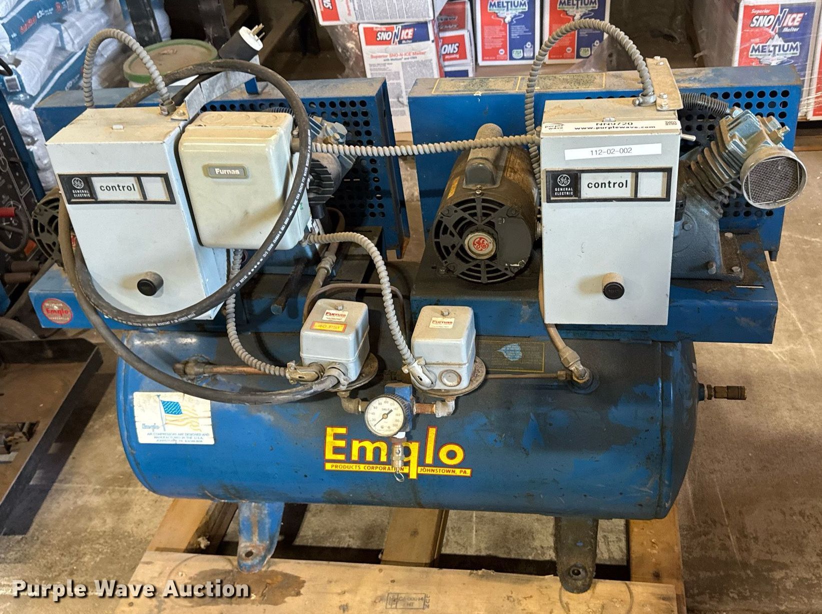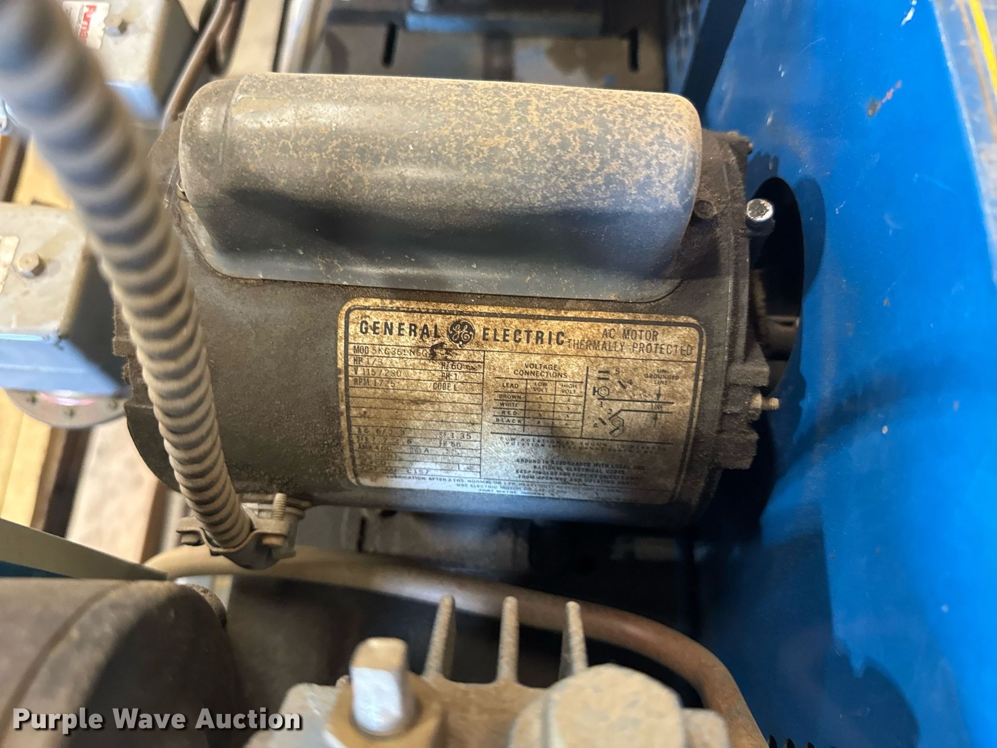 Purple Wave is selling a used Air Compressor in Kansas. This item is a Emqlo air compressor with the following: General Electric, Volts: 115/230, Phase: Single