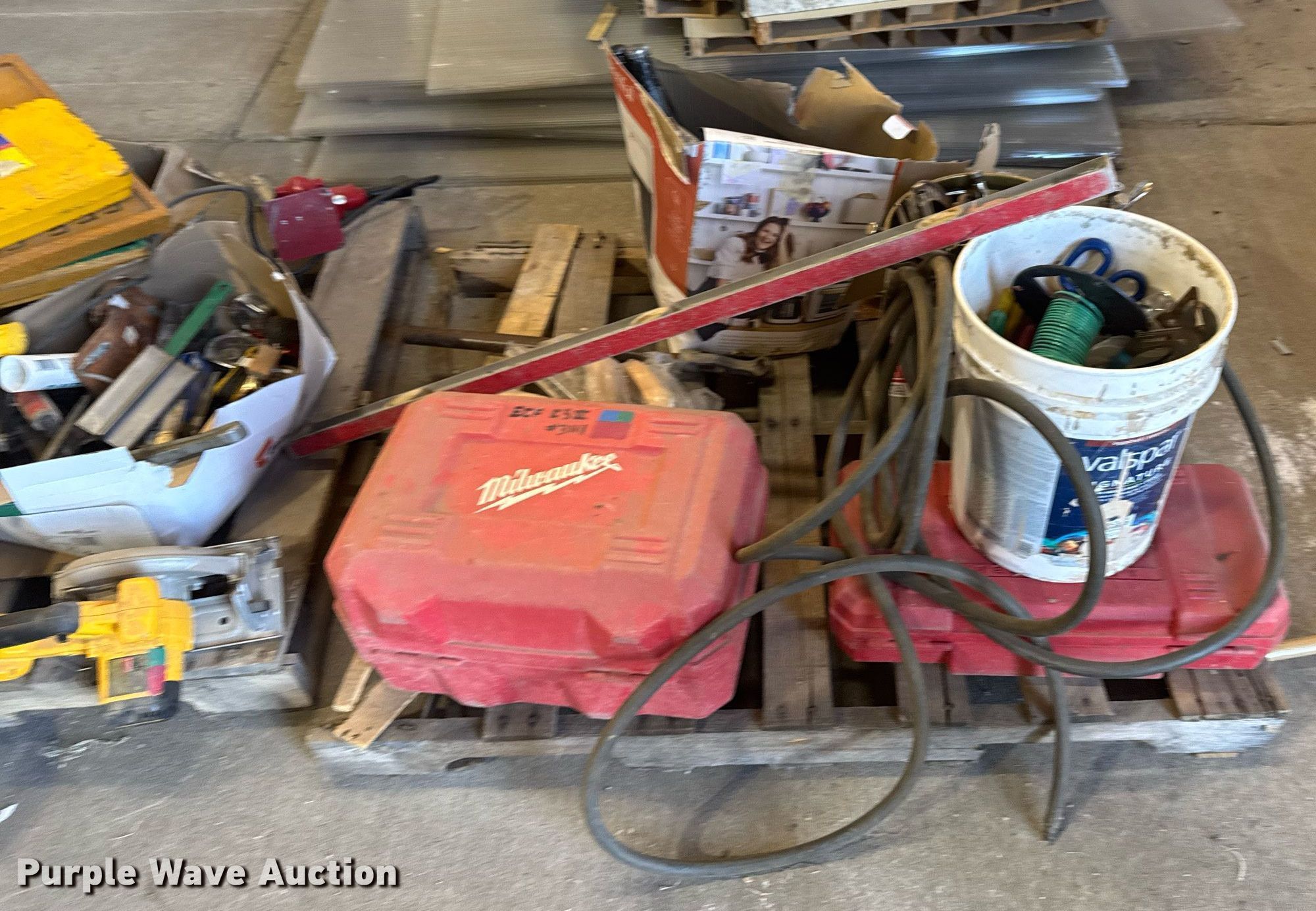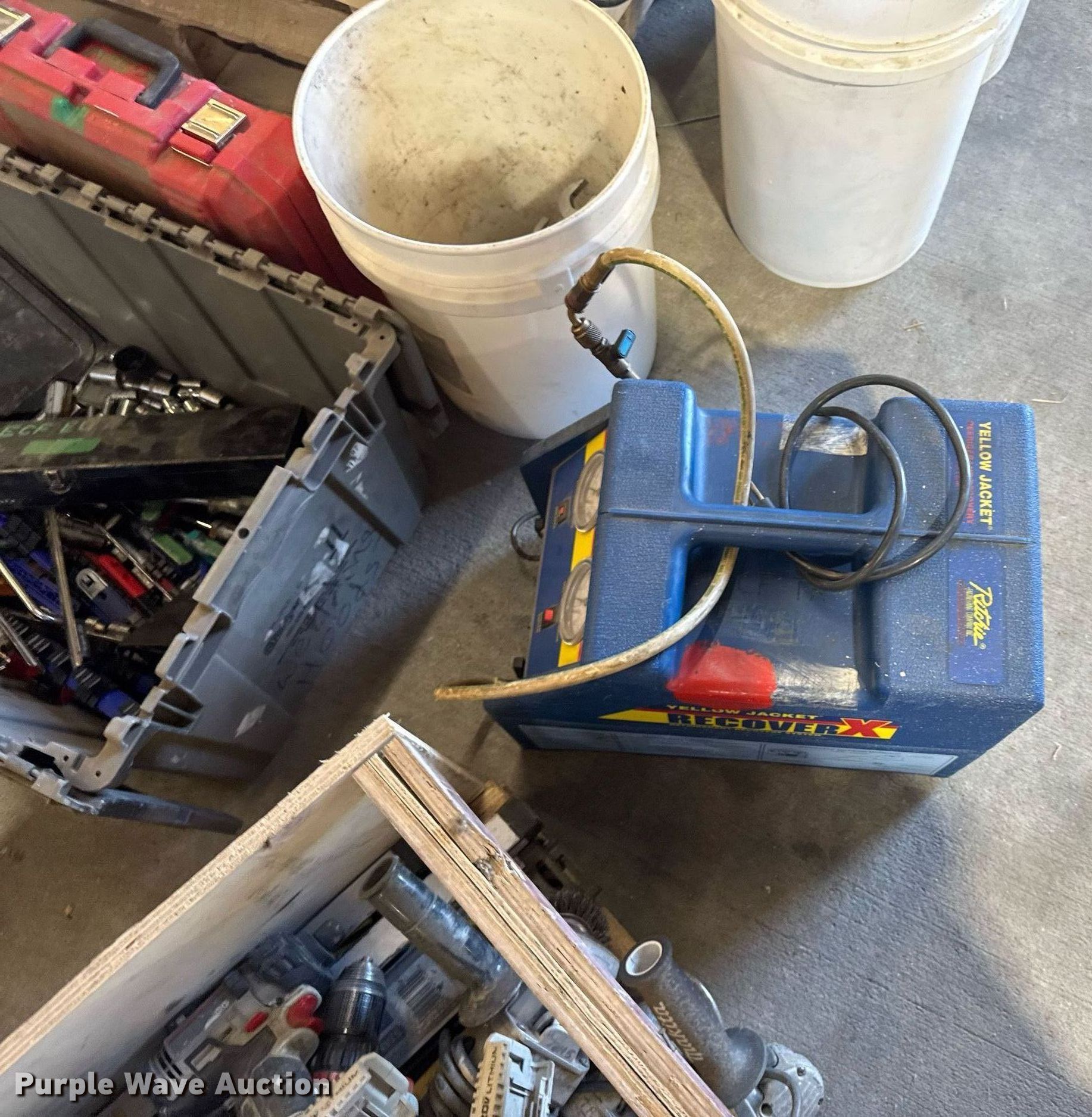 Purple Wave is selling a used Tools in Kansas. This item is a Tools with the following: Grinders, Drills, Hand tools, Refrigerant recovery machine, Flashlights