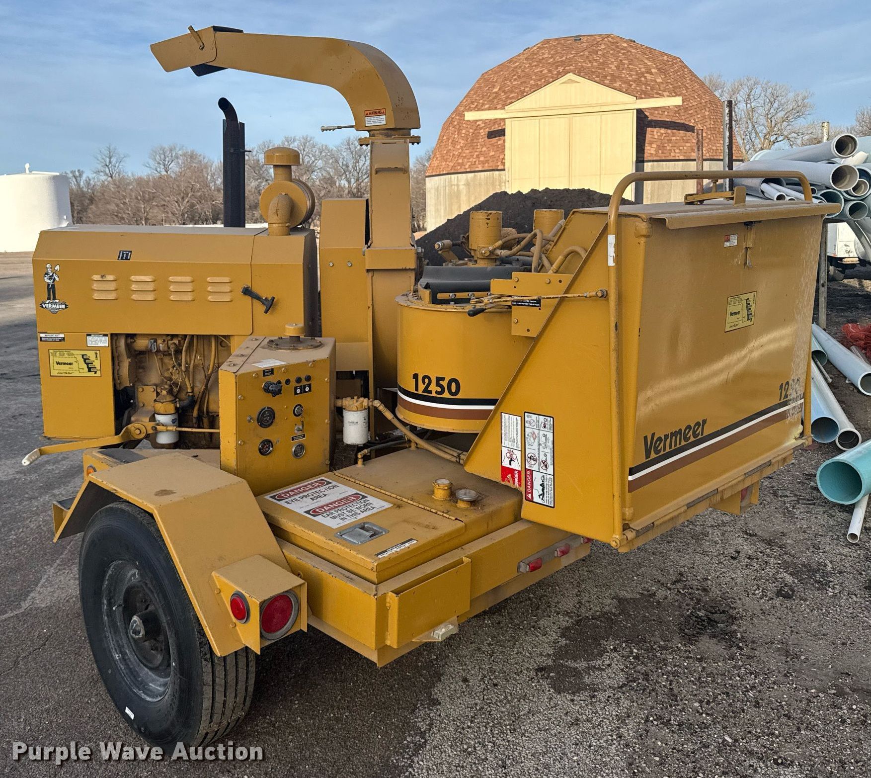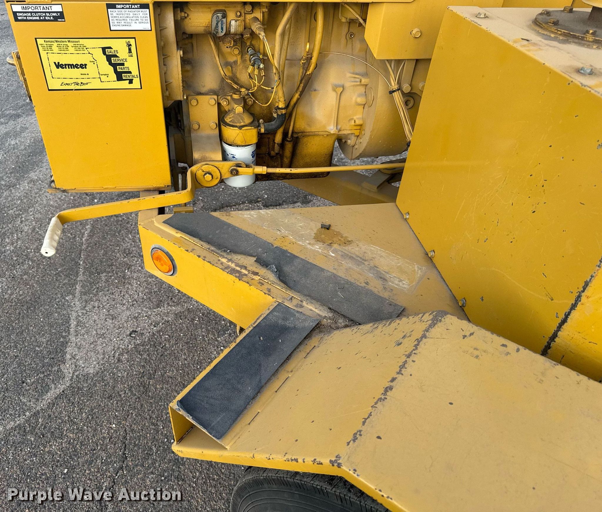 Purple Wave is selling a used Wood Chipper or Stump Grinder in Kansas. This item is a 1992 Vermeer 1250 wood chipper with the following: Hours: 1,114 on meter, Serial: 1VRC14137N1003179