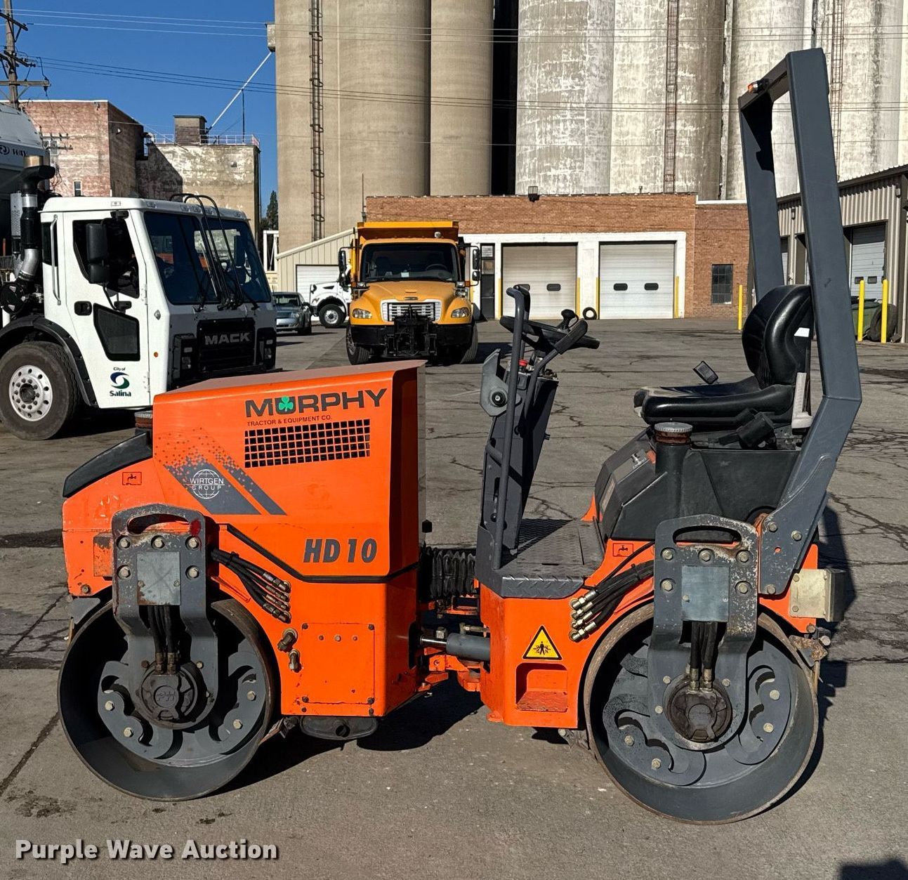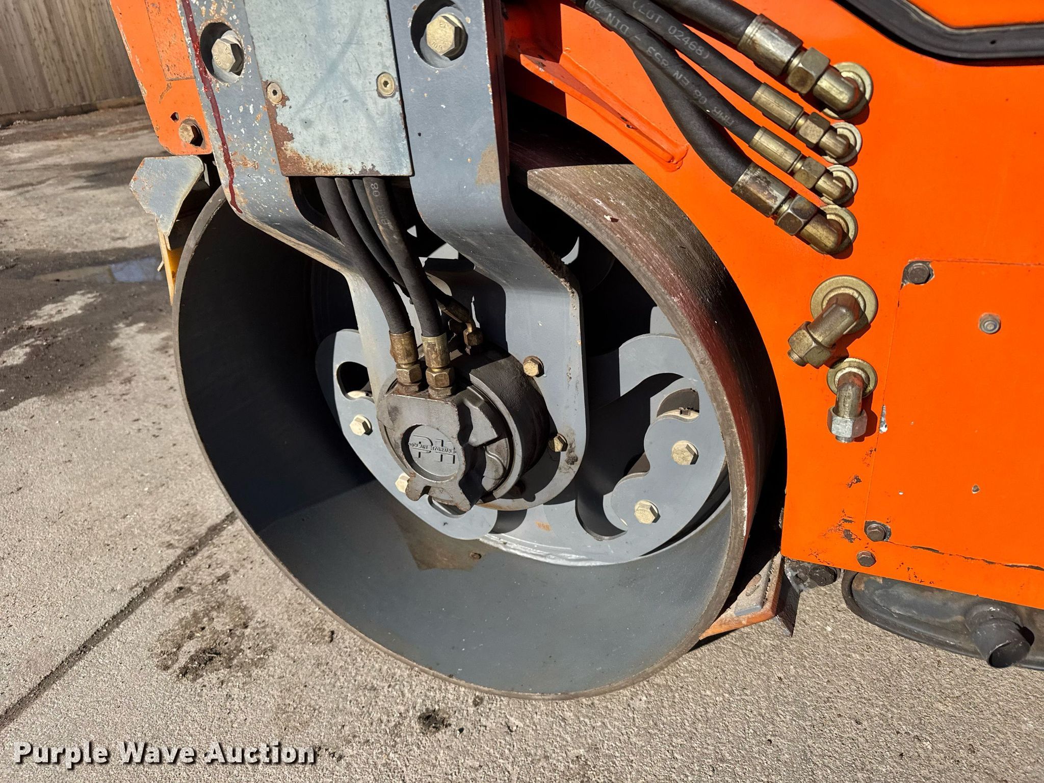 2004 Hamm HD10 double drum vibratory roller. Hours: 620 on meter, Serial: H1393592. Engine Deutz F2L 1011 F, Serial: 00881687, Displacement: 1.4L, Cylinders: 3, Fuel type: Diesel, HP: 24.8. Transmission Hydrostatic. Operators station OROPS, Vandal cover. Features Drum: Smooth, Vibratory system: Double, Front drum Width: 39", Diameter: 27", Rear drum Width: 39", Diameter: 27", Drum scrapers: Front, Rear, Water spray applicator: Front, Rear, Dual propel system. City of Salina, KS. Salina, KS 67401