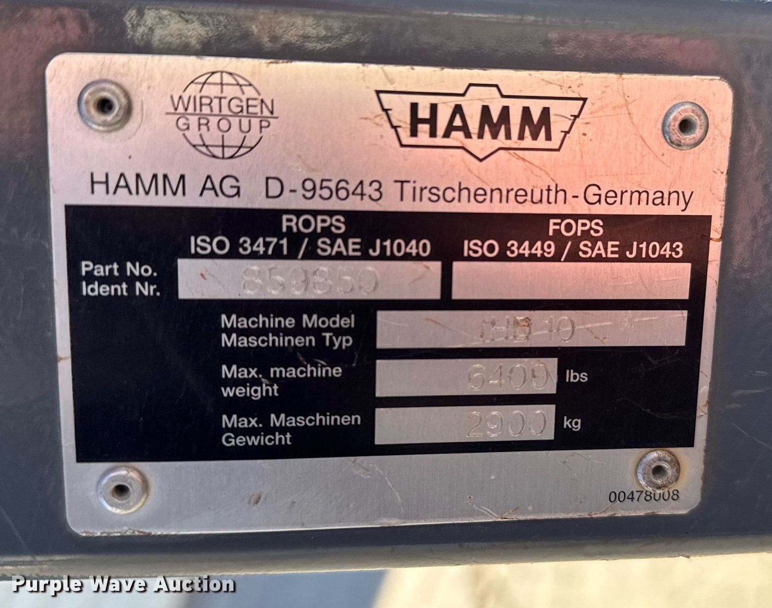 Purple Wave is selling a used Double Drum Roller Compactor in Kansas. This item is a 2004 Hamm HD10 double drum vibratory roller with the following: Hours: 620 on meter, Serial: H1393592