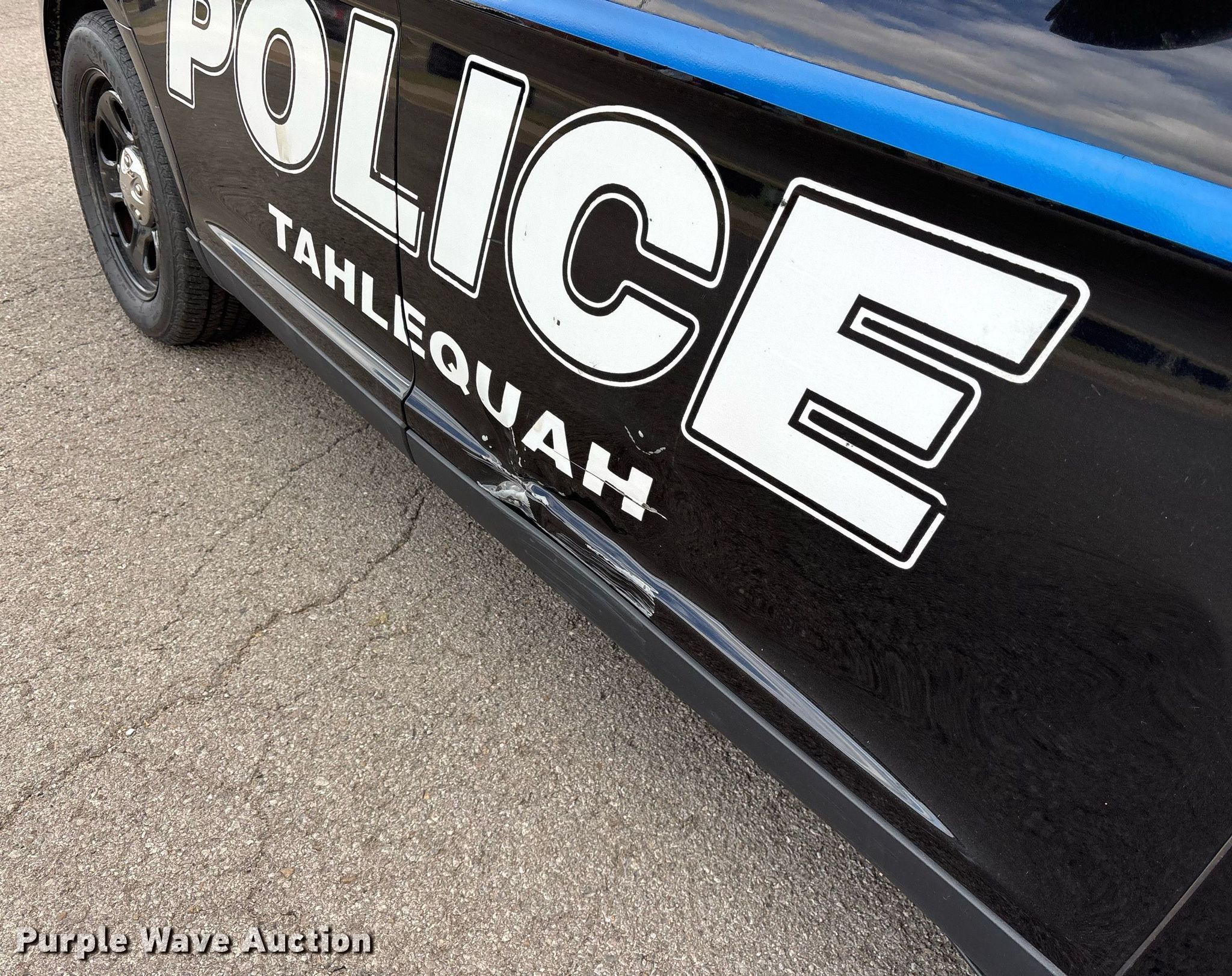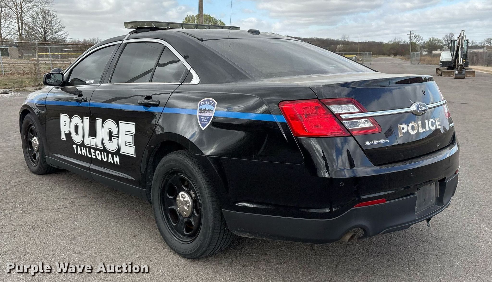 2018 Ford Taurus Police Interceptor. Miles: 108,540 on odometer, VIN: 1FAHP2MK1JG104498. Engine Displacement: 3.7L V6 DOHC, Cylinders: 6, Fuel type: Gas. Transmission Automatic, All wheel drive. Interior AC, Heat, Seat: Power driver, Power windows, Power locks, Cruise control, Backup camera. Tires Size: 245/55R18. Notes Hail damage, Driver side exterior mirror damaged. Oklahoma title. Title distribution may be delayed up to 14 days from verification of funds. City of Tahlequah, OK Police Department. Tahlequah, OK 74464