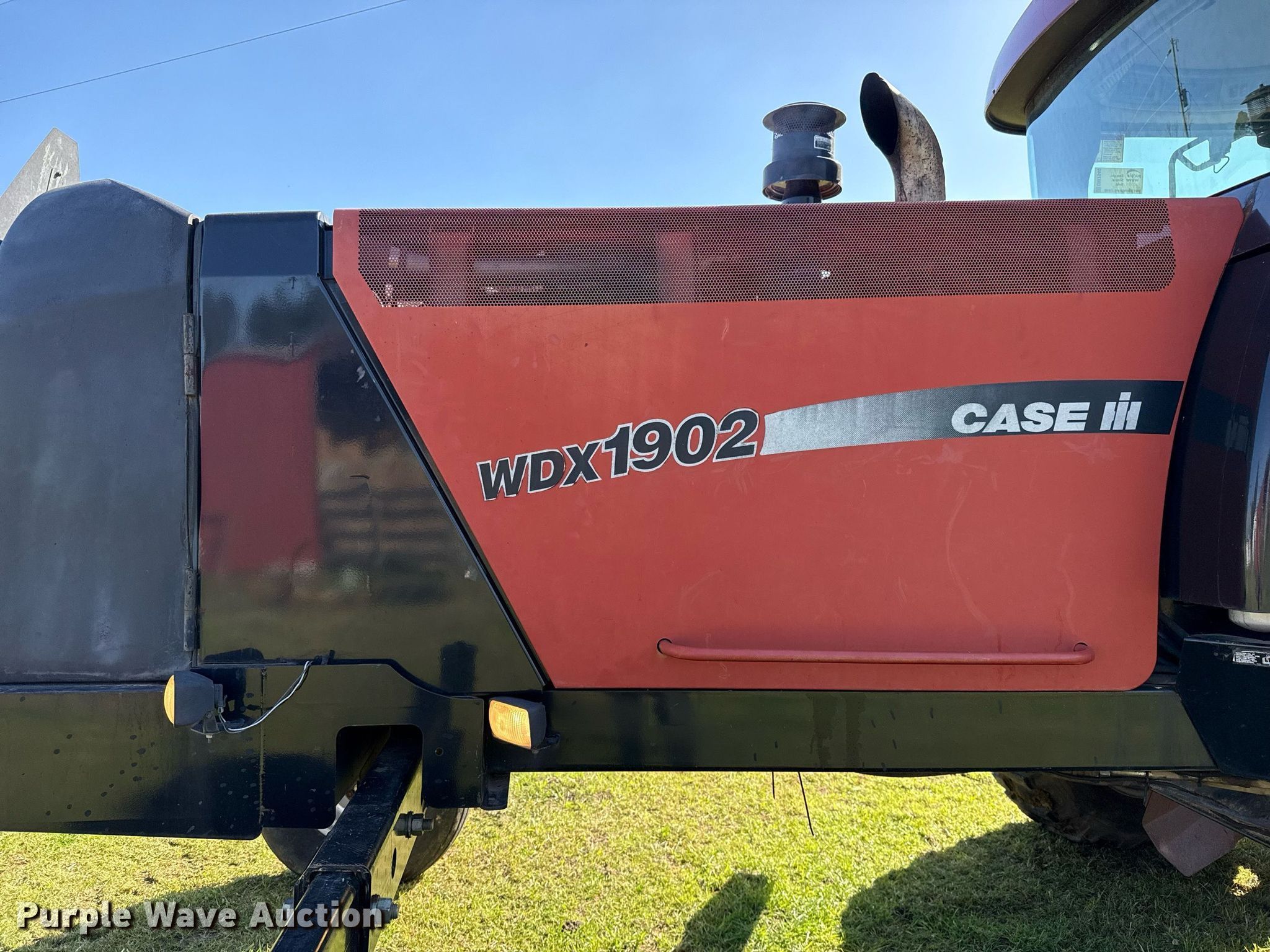 2006 Case WDX1902 swather / windrower. Engine hours: 307 on meter, Serial: HCA043164. Engine CNH 8FSTAPD, Serial: 181257, Displacement: 7.3L, Cylinders: 6, Fuel type: Diesel, kW: 139. Transmission Hydrostatic. Operators station AC, Heat. Features Head Disc, Case RDX161, Serial: HCA0016362, Width: 15' 5", Hydraulic head tilt, Power reverser. Tires Front: 18.4-26, Rear: 14L-16.1SL. Gilmer, TX 75645