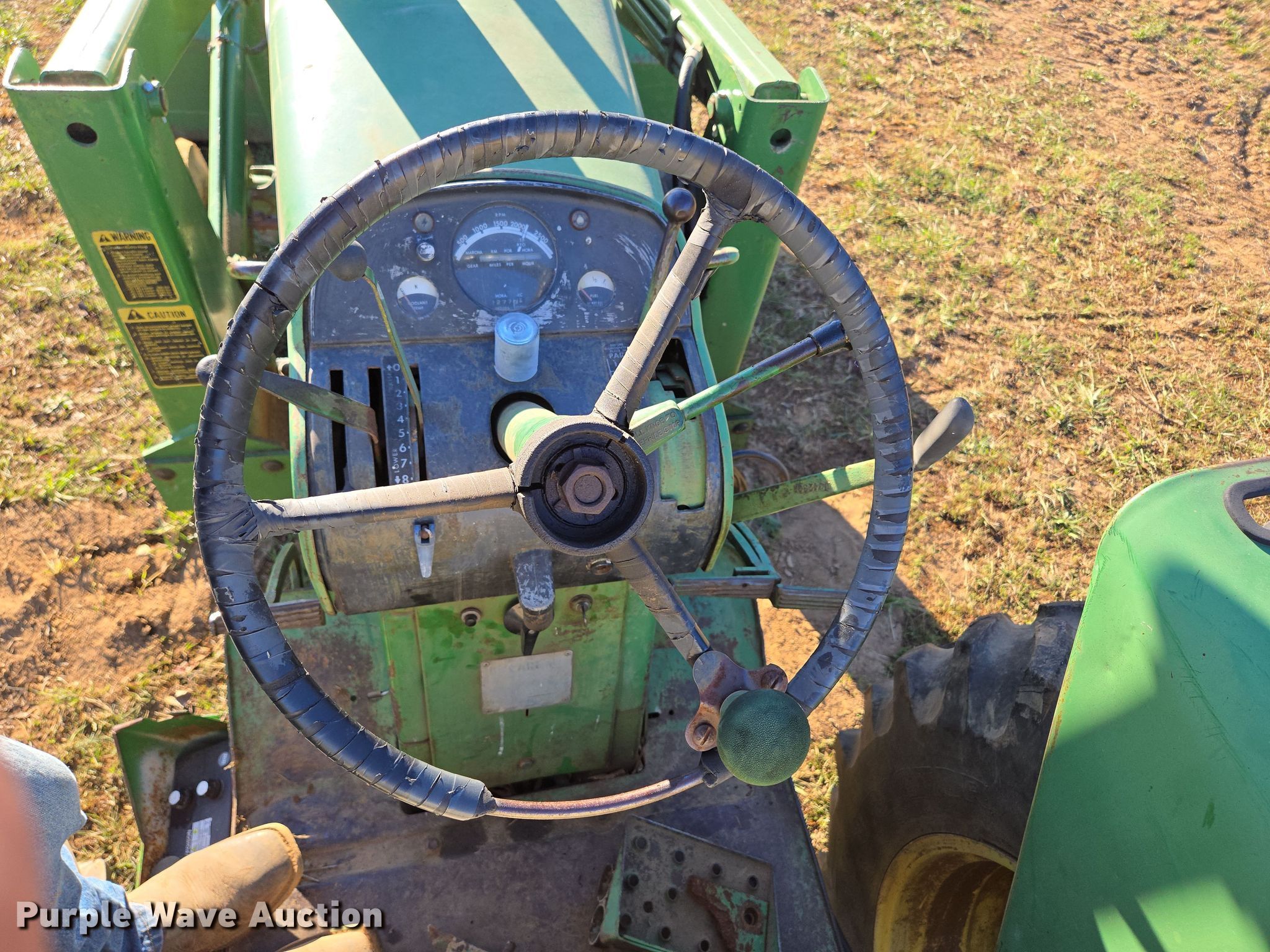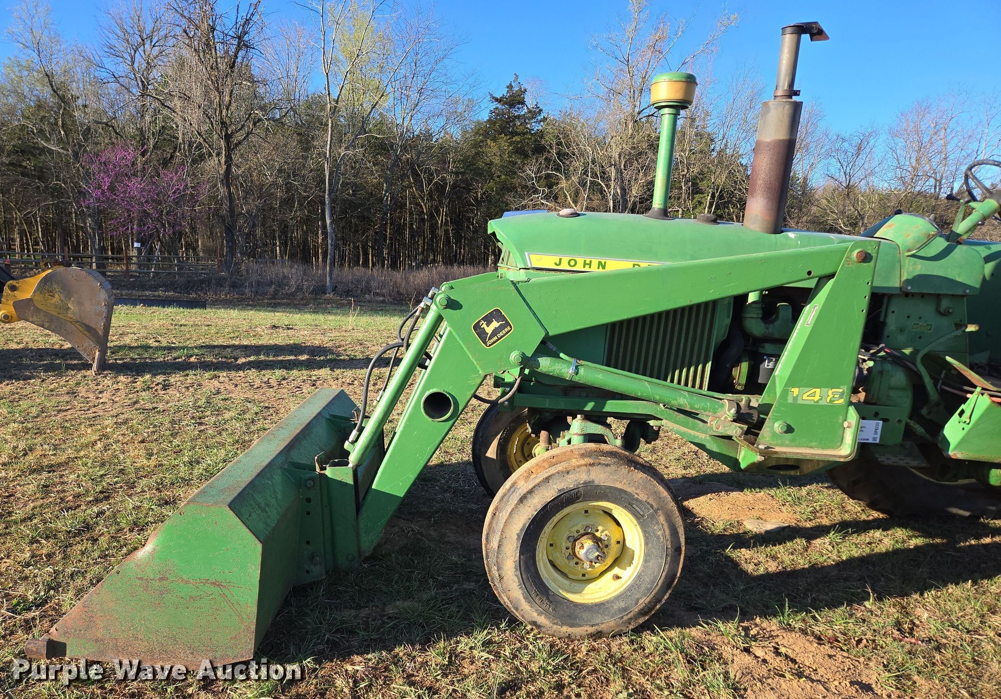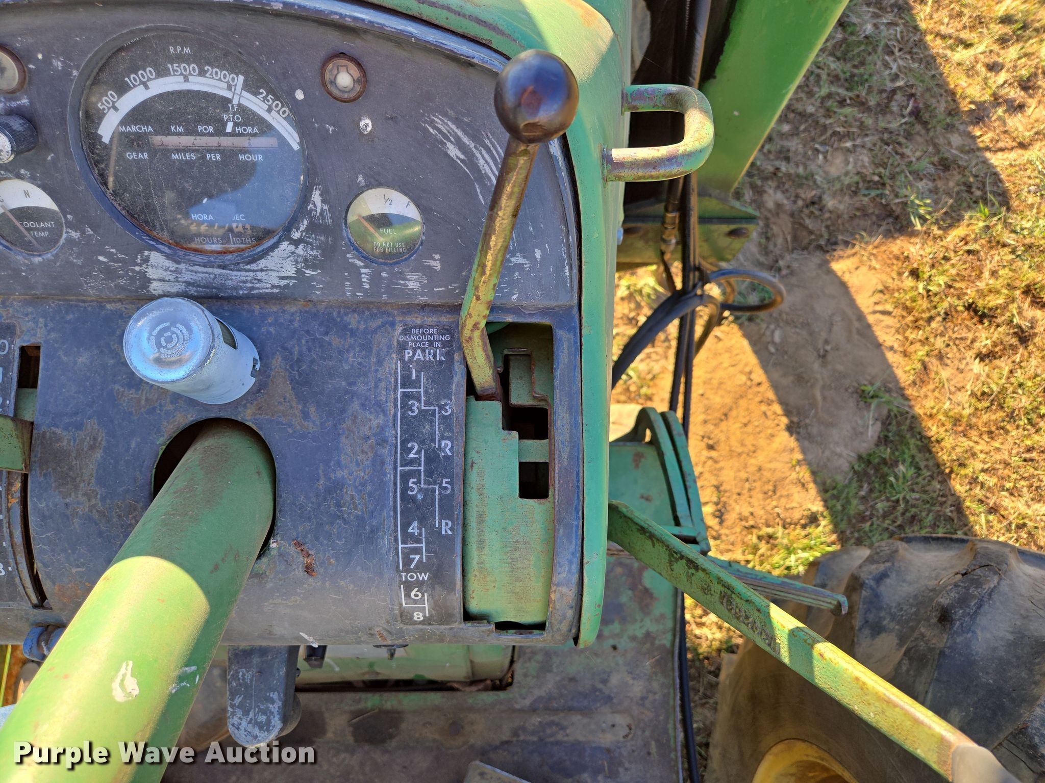 1966 John Deere 3020 tractor. Hours: 2,278 on meter Actual hours unknown, Serial: 095457R. Engine John Deere, Cylinders: 4, Fuel type: Diesel. Transmission Synchro, 8F - 3R. Features PTO: 540, 1000, Three point Top link, Hydraulic remote sets Rear: 1, Loader John Deere 148, Bucket Width: 86".. Tires Front: 9.5L-15SL, Rear: 16.9-34. Notes Possible hour meter issues, Hydraulic leak, Loader joystick removed but included. Prairie Grove, AR 72753