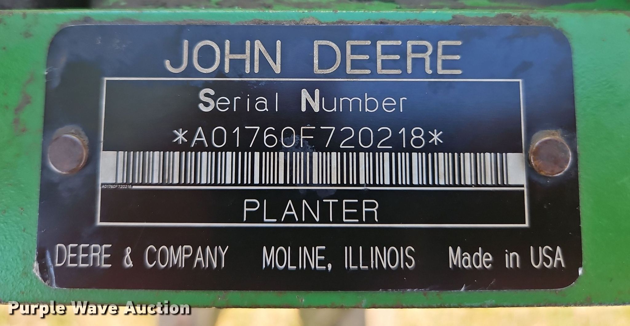 Purple Wave is selling a used Planter in Kansas. This item is a 2006 John Deere 1760 planter with the following: Width: 30', Row units: 12, Row spacing: 30", Serial: A01760F720218