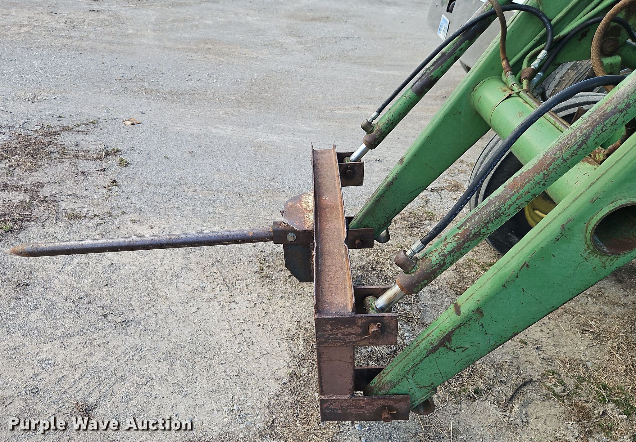 1972 John Deere 4020 tractor. Hours: 5,636 on meter, Serial: 262630R. Engine John Deere 6040, Cylinders: 6, Fuel type: Diesel. Transmission Synchro, 8F - 2R. Features PTO: 540, 1000, Three point Top link, Hydraulic remote sets Rear: 2, Loader Bale spear. Tires Front: 10.00-16, Rear: 18.4-34. Notes Dead battery. Paddock Farms. Mound City, KS 66056