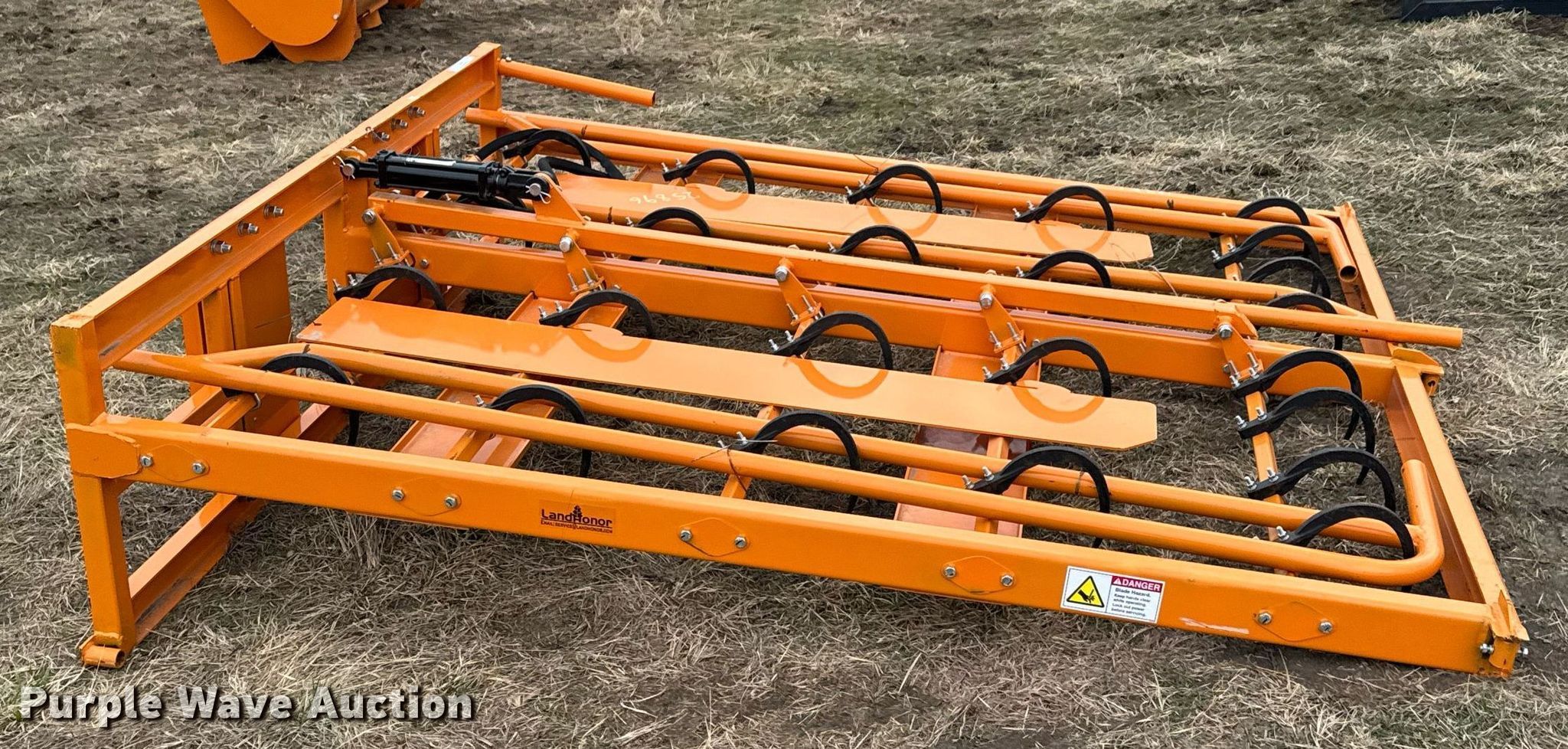 Purple Wave is selling a used Skid Steer Attach. in Kansas. This item is a 2024 LandHonor HAG-12-24Q skid steer bale grabber with the following: Serial: HL-00735, Width: 84", Length: 90", Bale capacity: 12, Unused