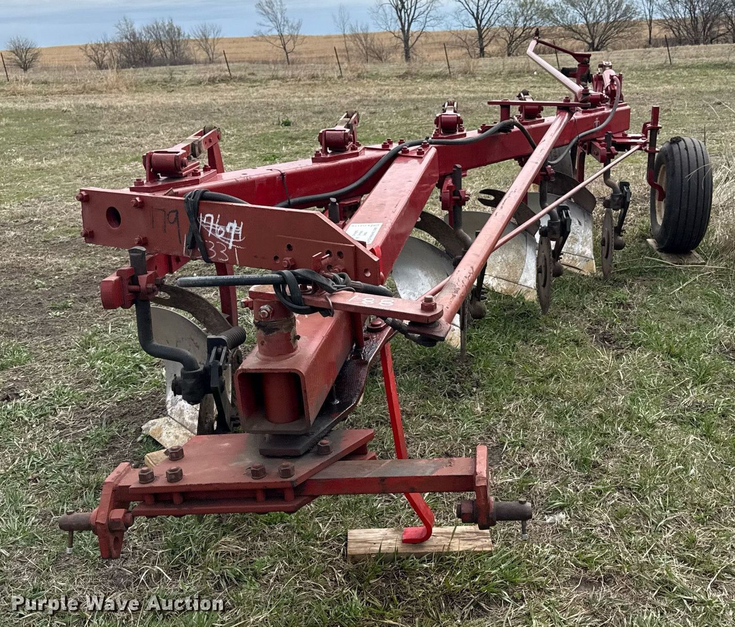 Case IH 720 five bottom plow. Serial: 1050000U007564. Features Hydraulic lift. Tires Tire size: 9.5L14. Maple Hill, KS 66507