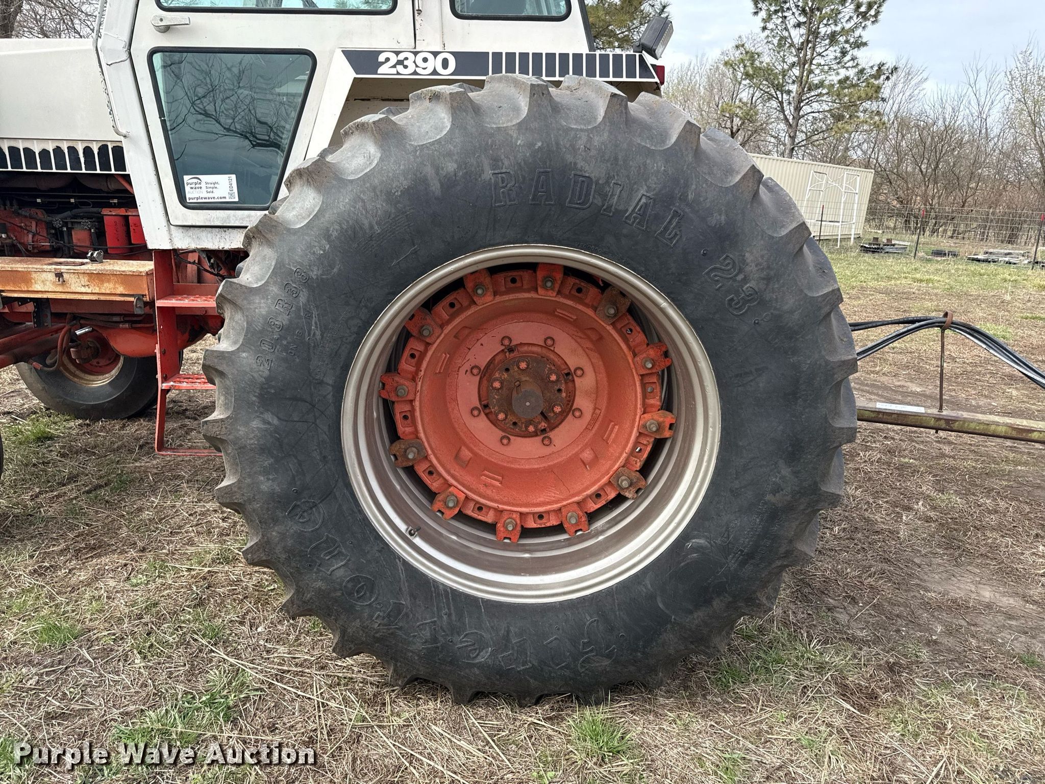 1980 Case 2390 tractor. Hours: 4,999 on meter, Serial: 9902059. Engine J.I. Case A504BDT, Serial: 10301176, Displacement: 8.3L, Cylinders: 6, Fuel type: Diesel. Transmission Powershift, 12F - 3R, Differential lock. Operators station AC, Heat. Features PTO: 1000, Three point, Hydraulic remote sets Rear: 3, Suitcase weights: 10. Tires Front: 14L-16.1, Rear: 20.8-38, Duals. Notes Disk not included, Non-operational AC. Maple Hill, KS 66507