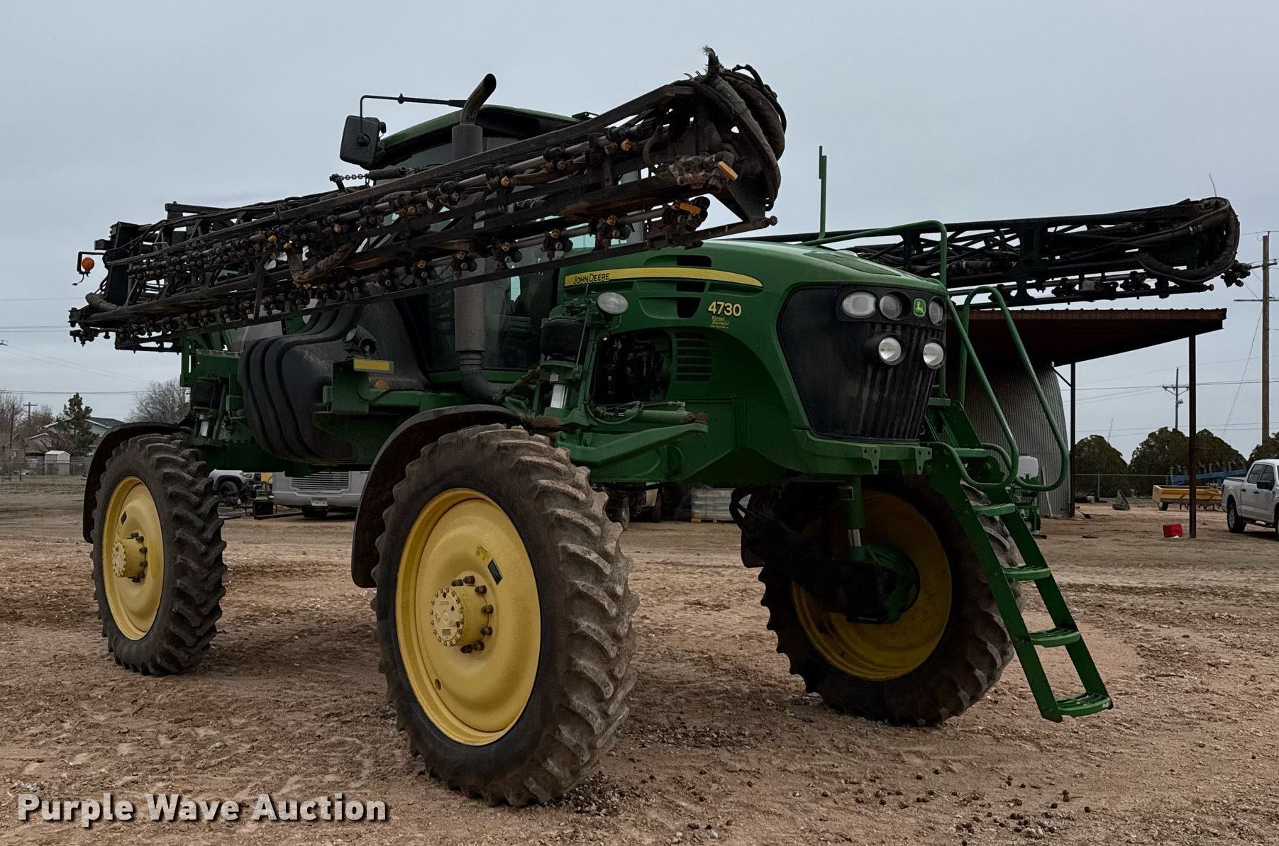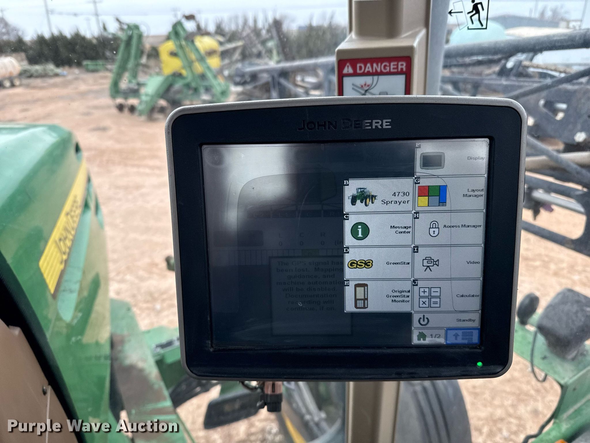 Purple Wave is selling a used Applicator Self Propelled in Texas. This item is a 2011 John Deere 4730 sprayer with the following: Engine hours: 3,489 on meter, Spray hours: 3,964 on meter, Serial: 1N04730XVA0013479