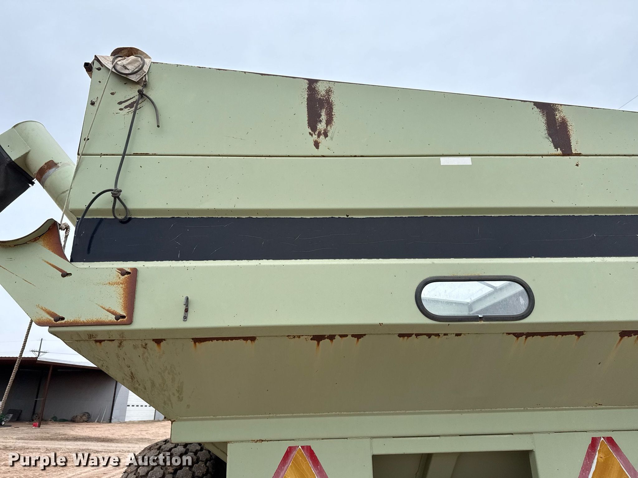 Orthman 608-000 grain cart. Serial: 3389-31. Features Auger diameter: 12", Shut-off gate: Manual, Compartments: 1, Roll tarp, PTO: 1 3/4" 1000. Tires Size: 24.5-32, Brand: Firestone. High Plains Hay Producers. Groom, TX 79039