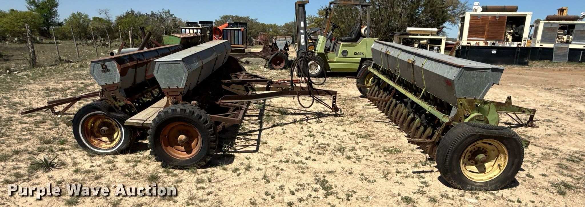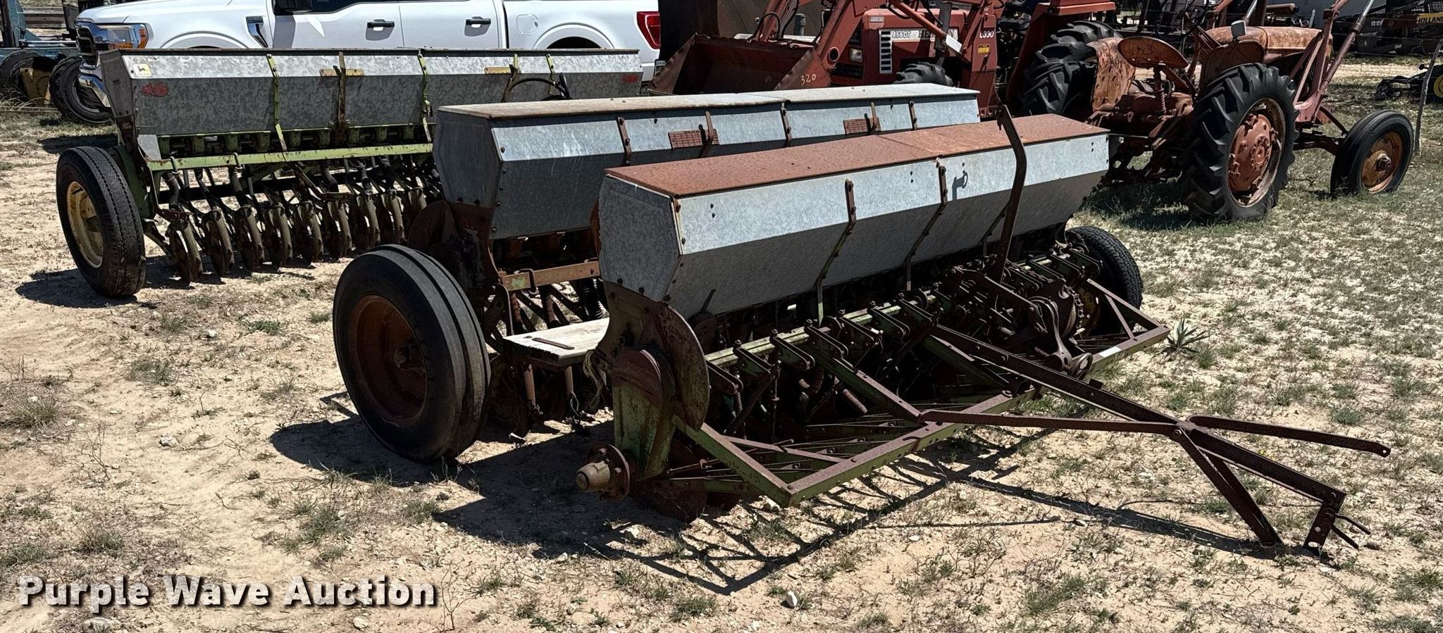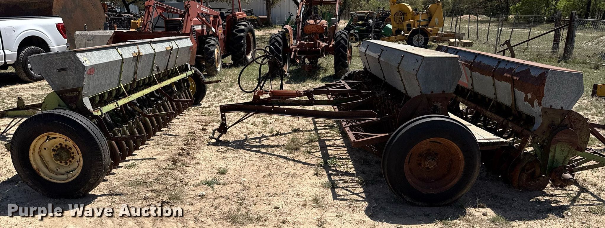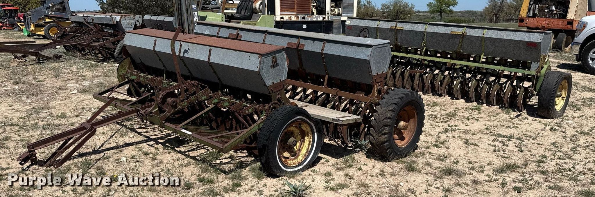 Purple Wave is selling a used Grain Drill or Seeder in Texas. This item is a (3) John Deere grain drills with the following: Width: 11', Row units: 18, Row spacing: 7", Serial: 002300N