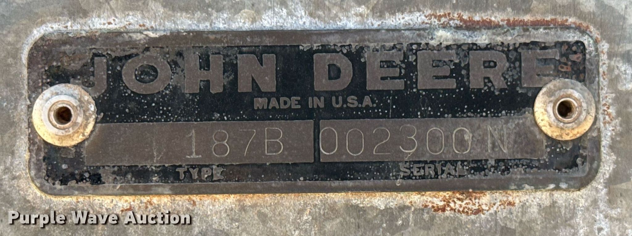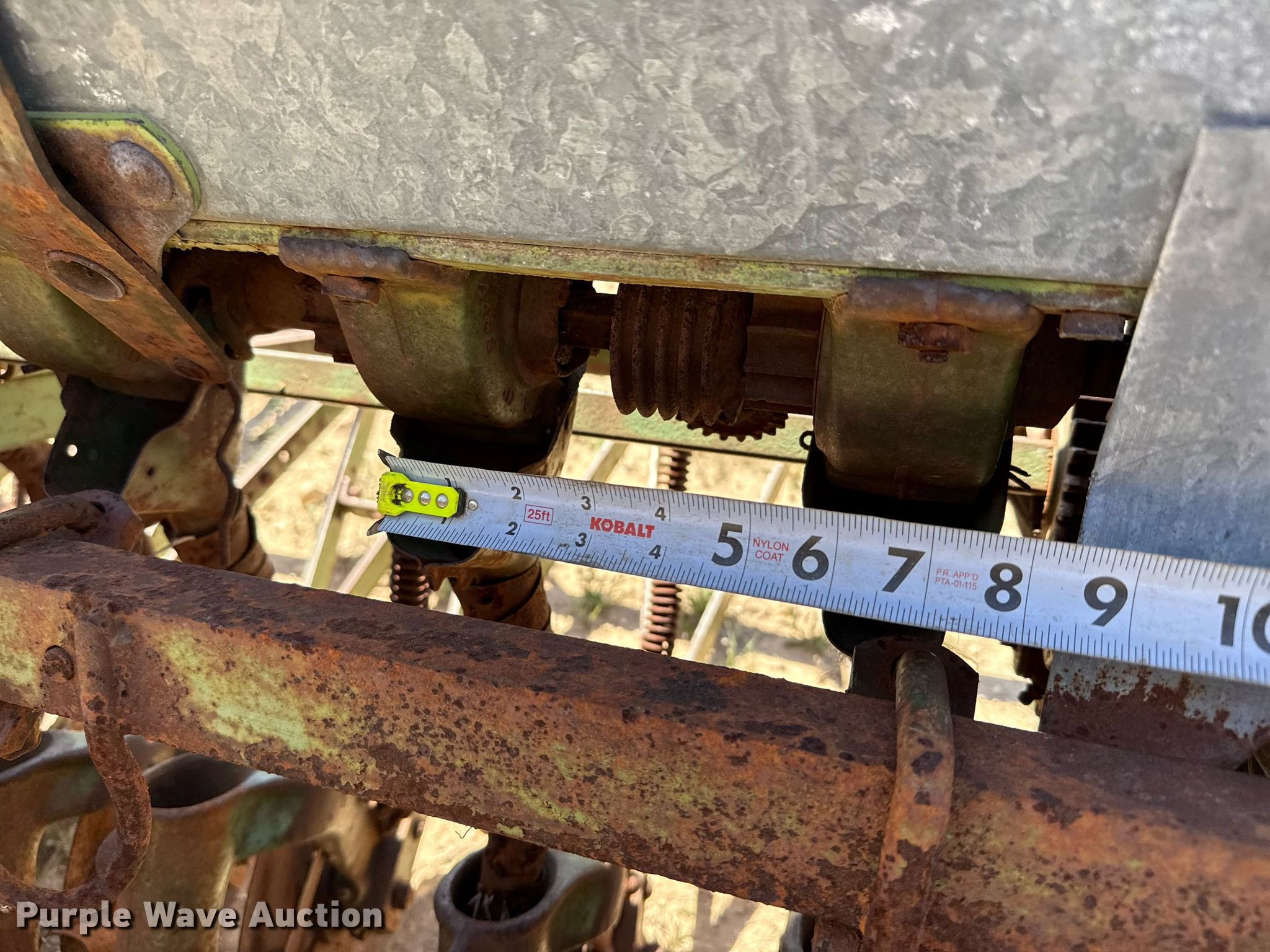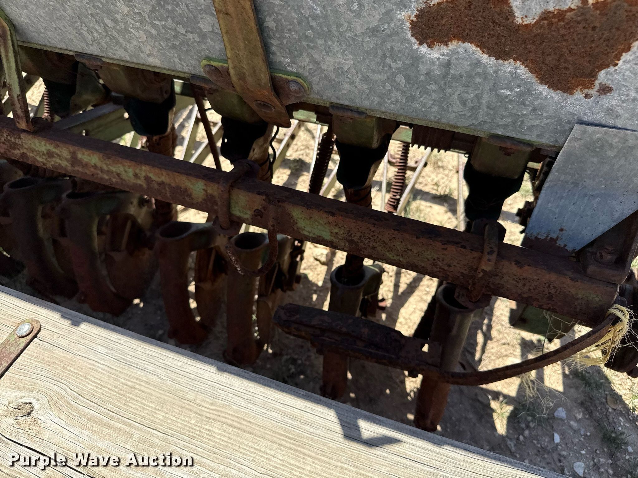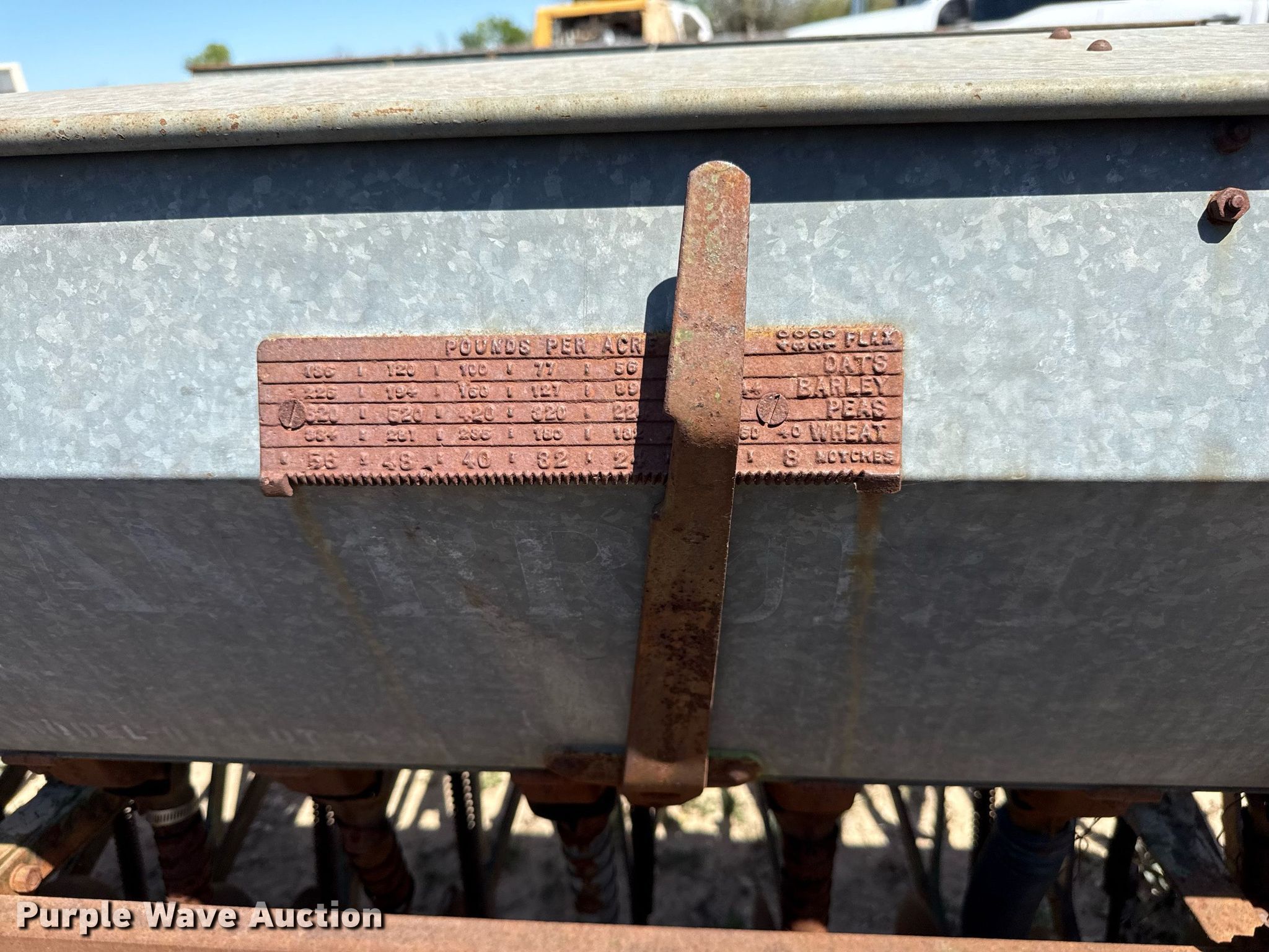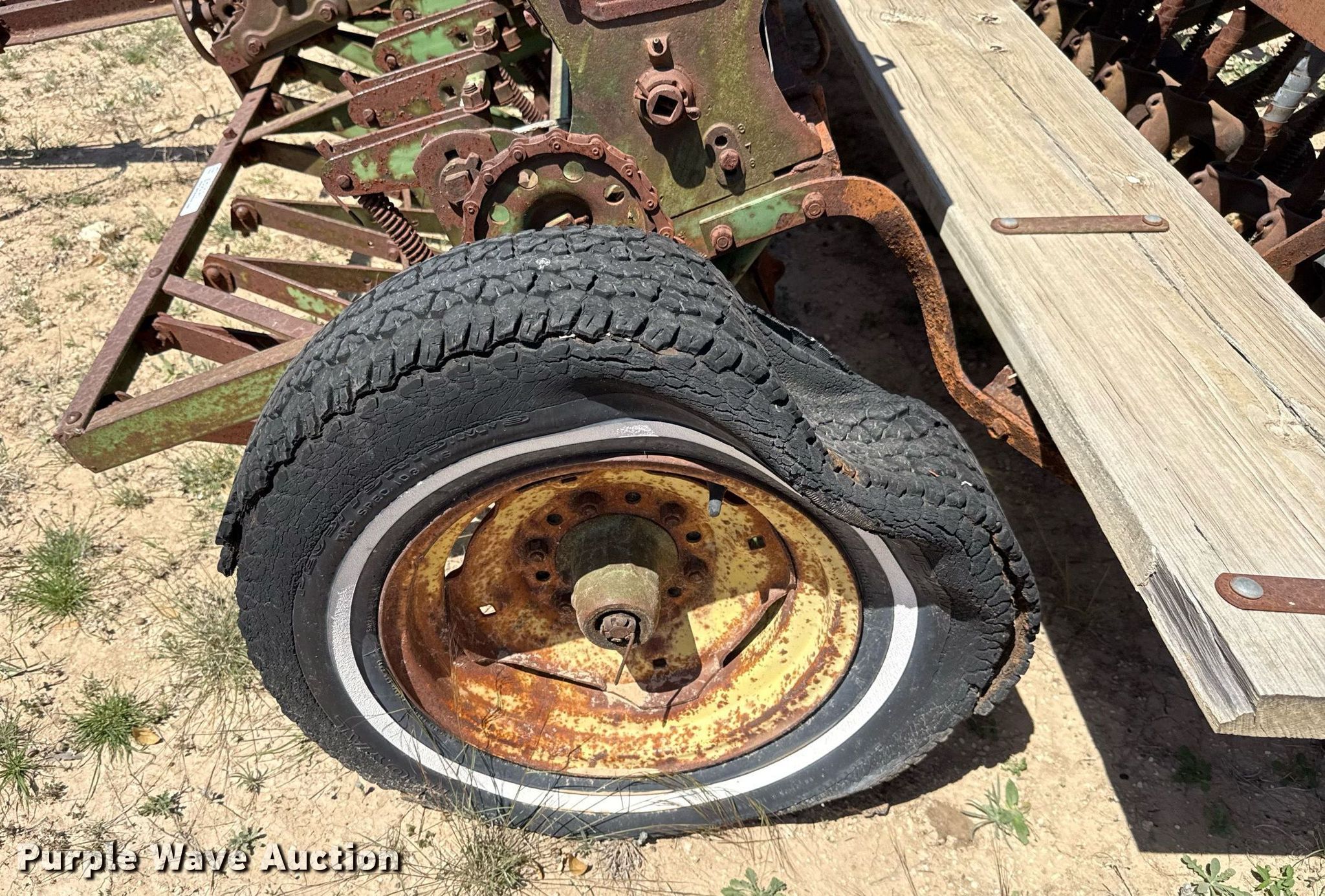 (3) John Deere grain drills. John Deere 187B. Width: 11', Row units: 18, Row spacing: 7", Serial: 002300N. Features Seed delivery Bulk fill system, Row units Meter drive: Ground, Down pressure: Spring, Disk opener: Single, Closing system: Single Type: Cast.. Tires Size: 7.00- 15LT. John Deere B Width:9', Row units: 14, Row spacing: 7", Serial: 5411. Features Seed delivery Bulk fill system, Row units Meter drive: Ground, Down pressure: Spring, Disk opener: Single, Closing system: Single Type: Cast.. John Deere Width:10', Row units: 16, Row spacing: 7". Features Seed delivery Bulk fill system, Row units Meter drive: Ground, Down pressure: Spring, Disk opener: Single, Closing system: Single Type: Cast.. Tires Size: 6.50-16SL. Notes Flat tires. Mike Carpenter. Lampasas, TX 76550
