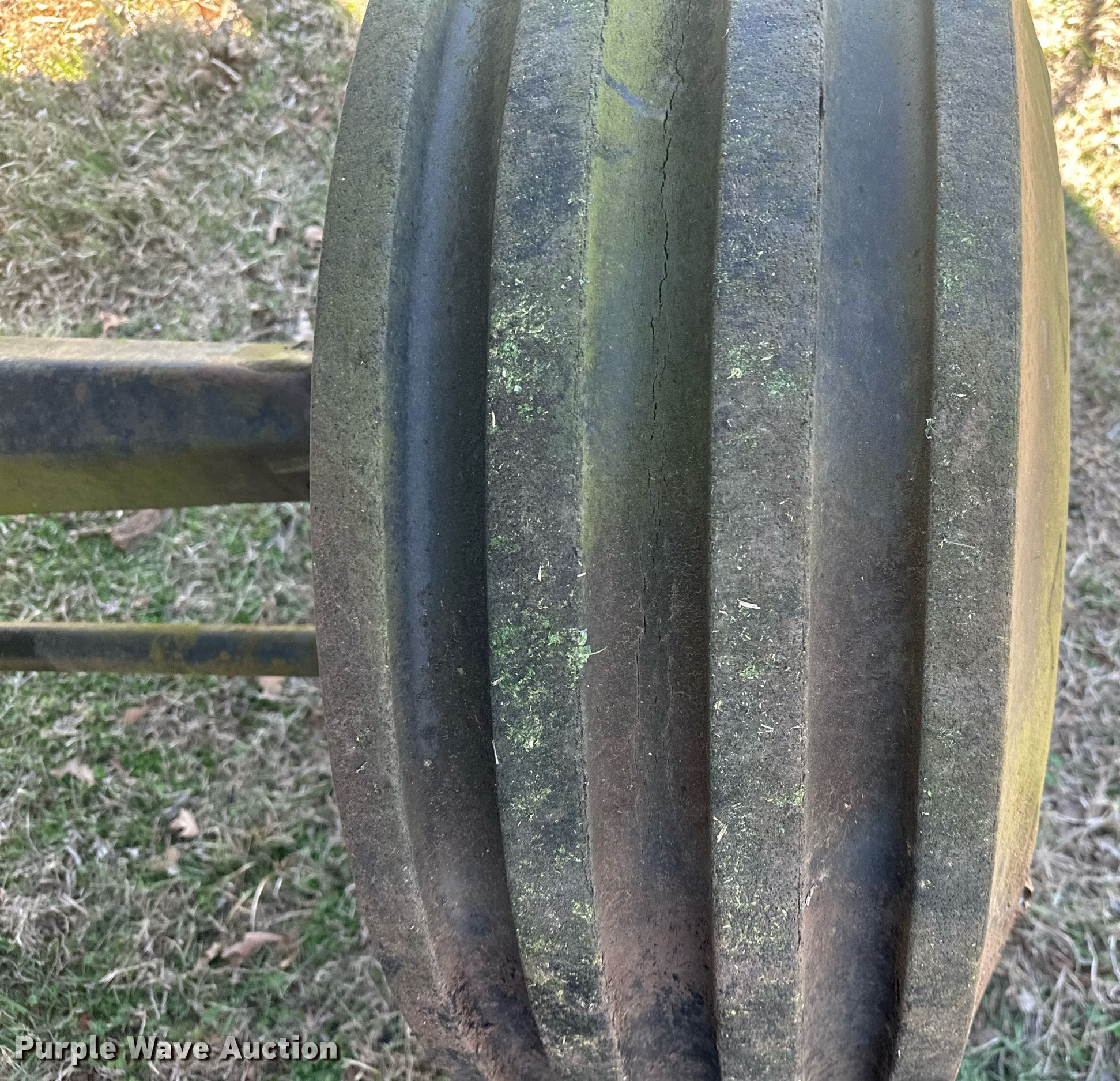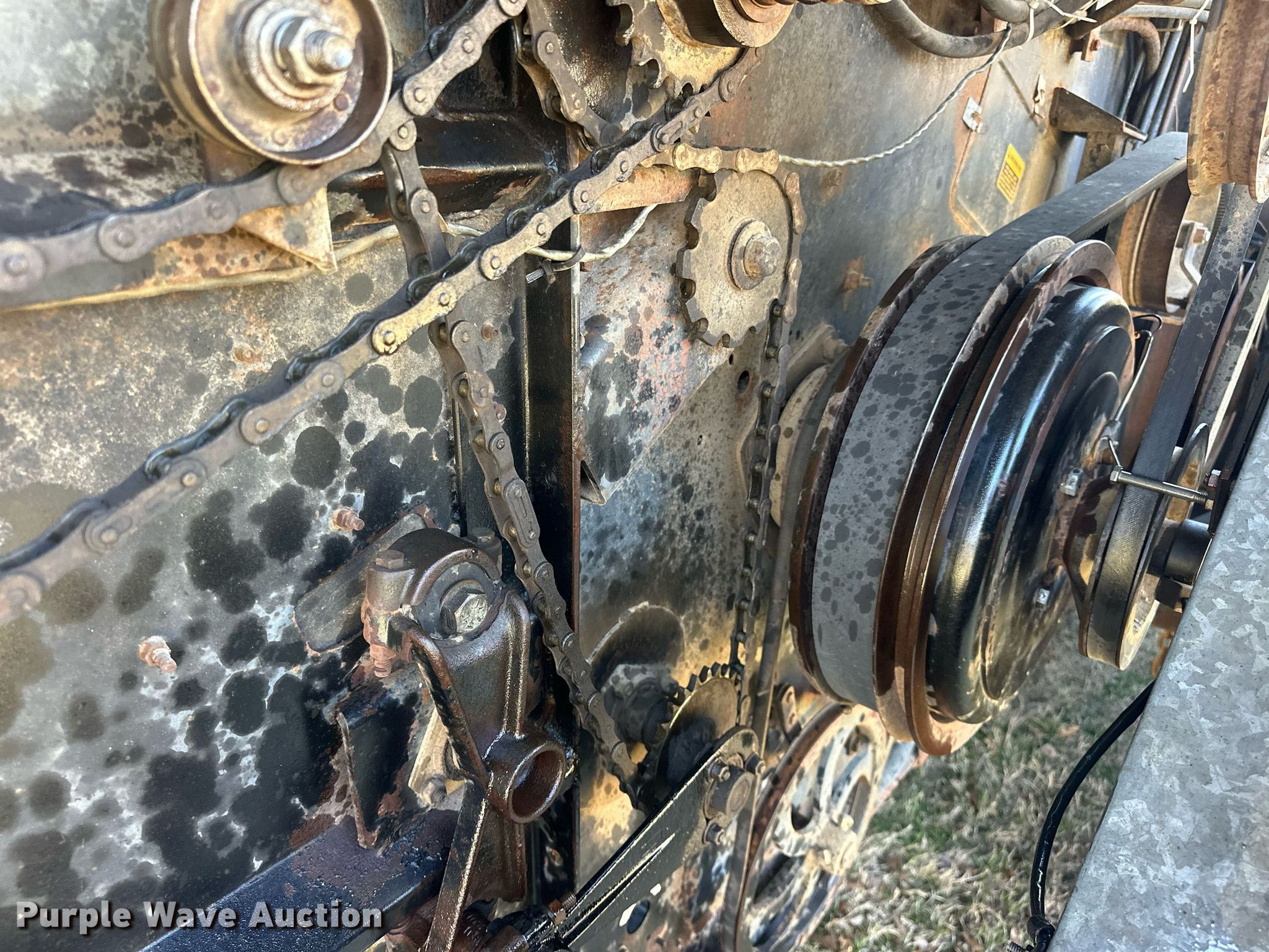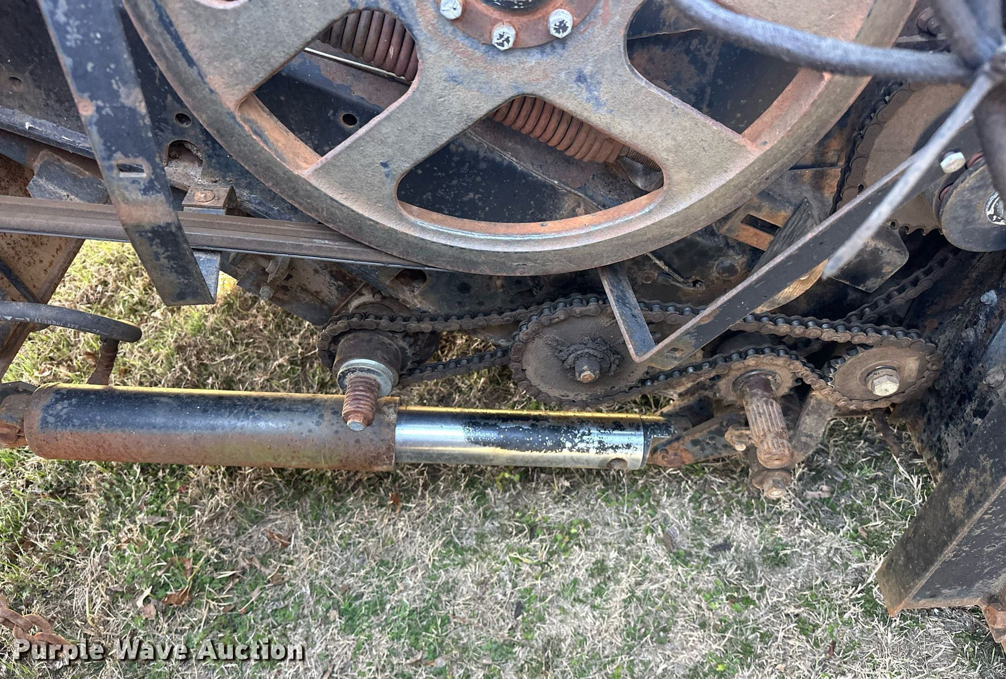 1982 Gleaner L2 combine. Engine hours: 1,885 on meter, Separator hours: 1,836 on meter, Serial: L-K24604H. Engine Cylinders: 6, Fuel type: Diesel. Transmission Hydrostatic, 4F - 4R. Operators station AC, Heat. Features Operator manual, Feederhouse: Lateral tilt, Variable speed, Concaves: Small wire, Chaff spreader, Bin: Extensions, Unloading auger length: 14', Header Deutz-Allis 320, Serial: LM2061731F8585, Platform head Rigid, Width: 20', Reel: Finger Hydraulic reel height control, Skid plates: Steel, Drivelines: Single. Tires Front: 23.1-34, Rear: 14L-16.1. Notes Unknown operating condition of AC. Stratford, OK 74872