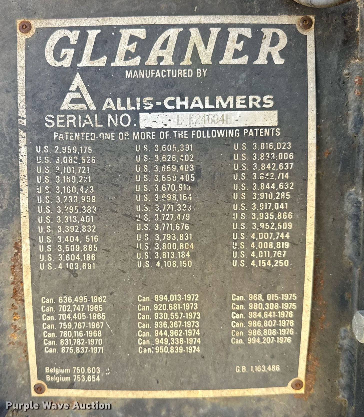 Purple Wave is selling a used Combine in Oklahoma. This item is a 1982 Gleaner L2 combine with the following: Engine hours: 1,885 on meter, Separator hours: 1,836 on meter, Serial: L-K24604H